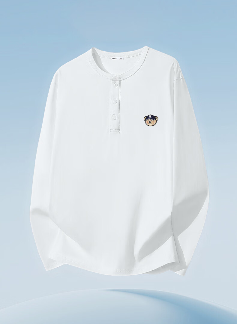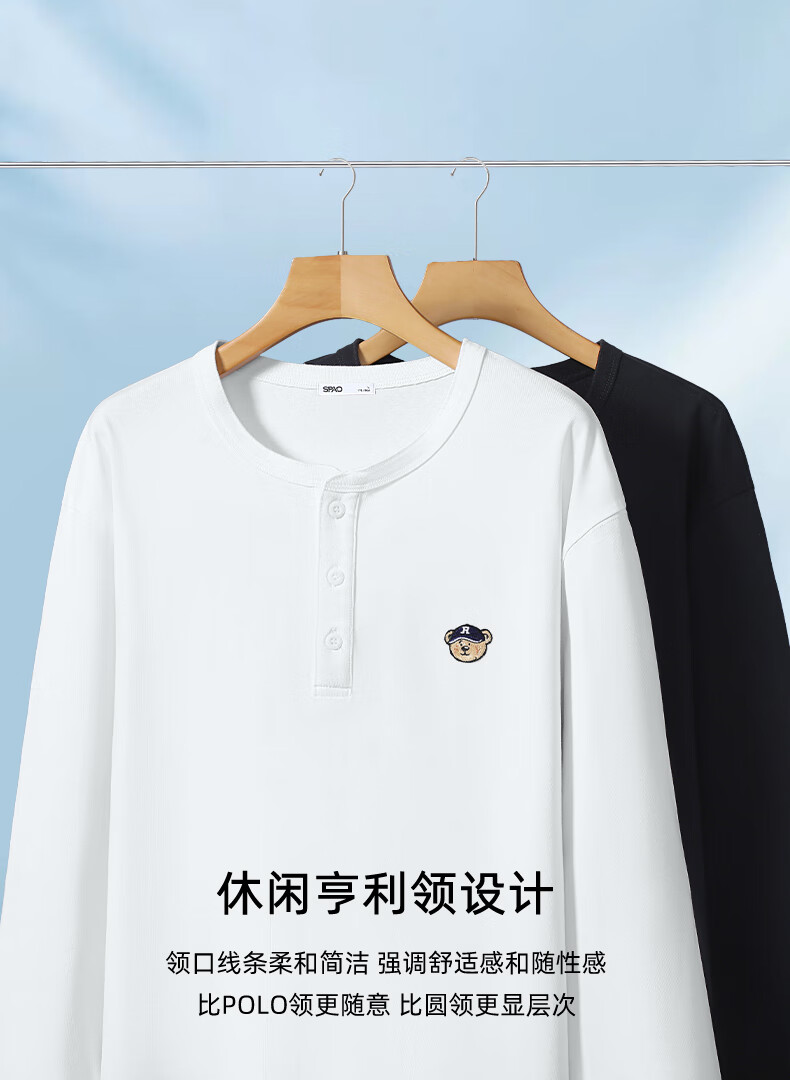 SPAO retro Henry collar long-sleeved T-shirt for men and women 2025 autumn bottoming shirt slightly wide off-shoulder top SPCX25ST05XY