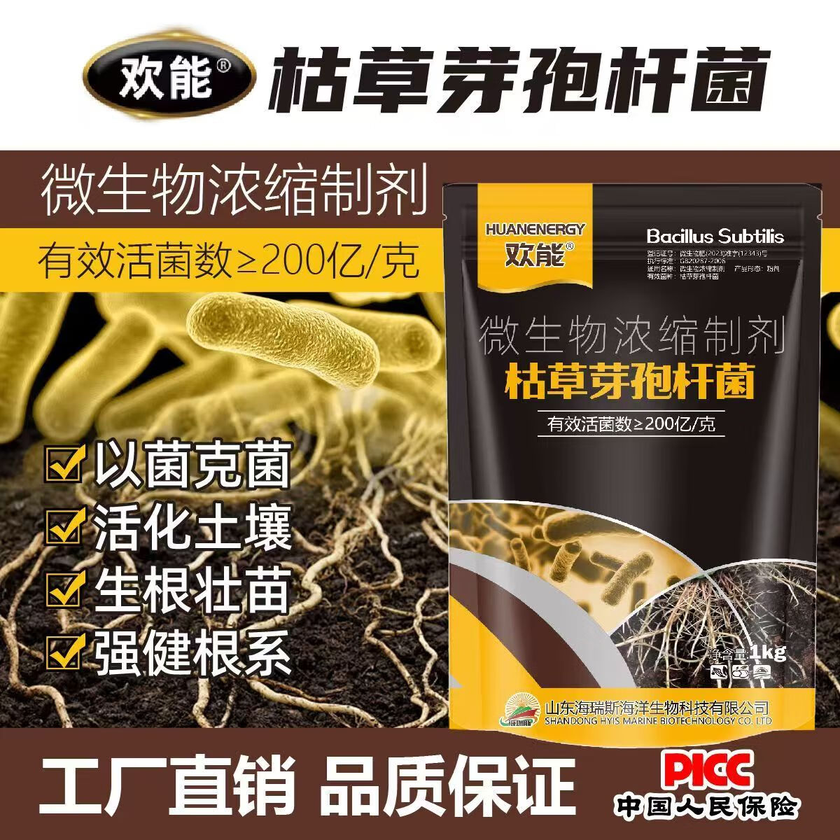 Huaneng Bacillus subtilis agricultural microbial bacterial fertilizer anti-root rot water-soluble fertilizer bacterial fertilizer to improve soil