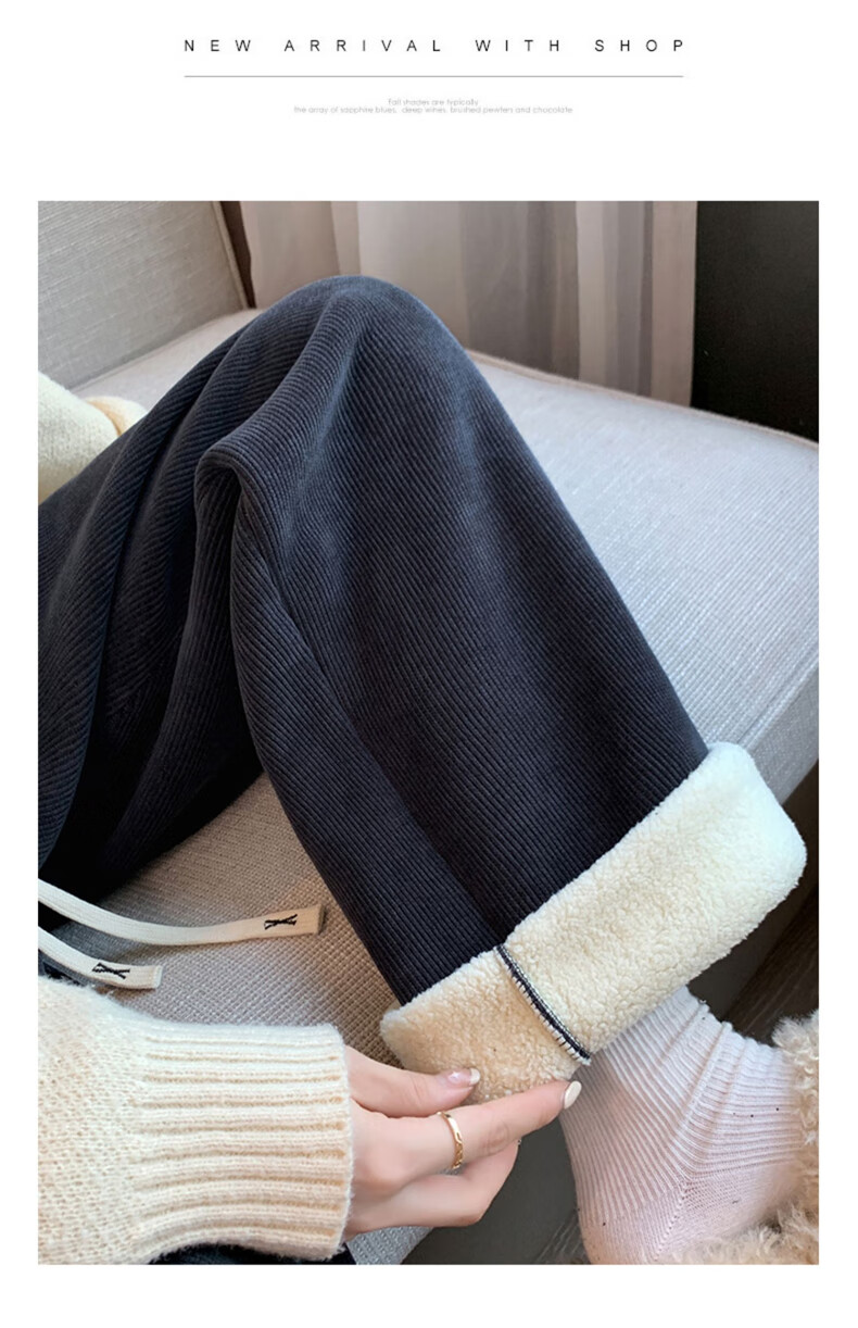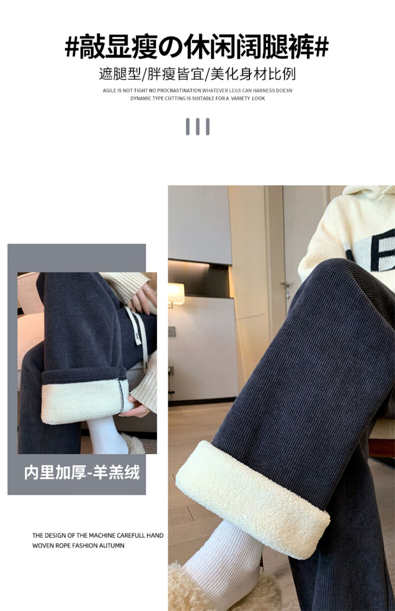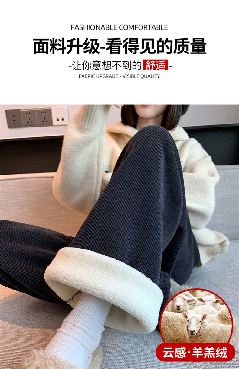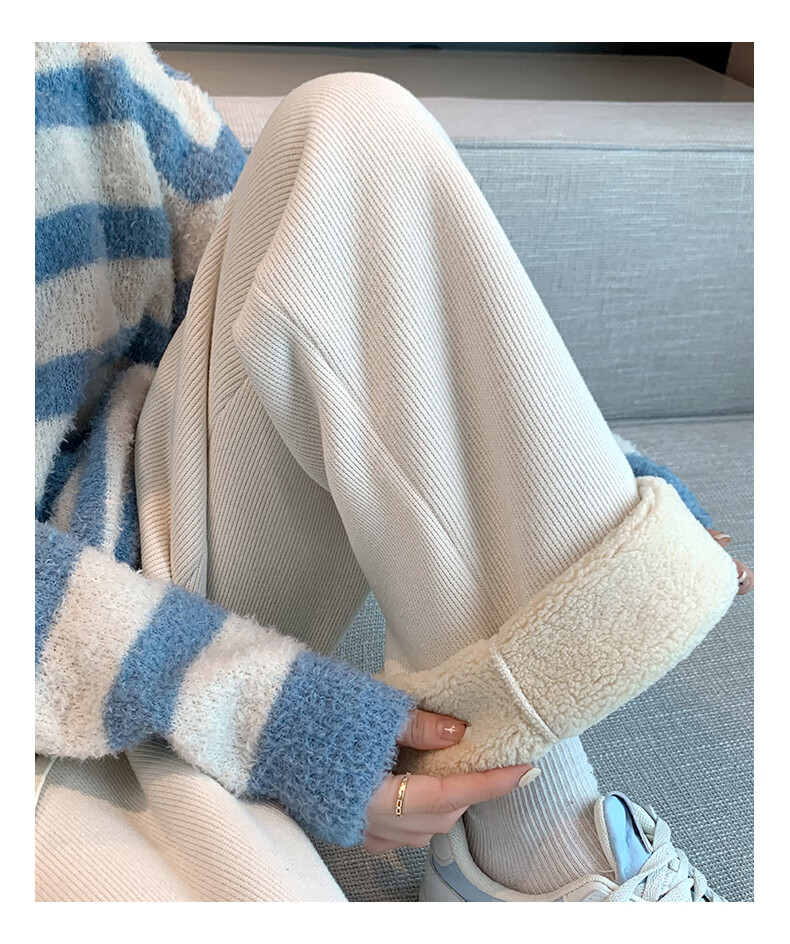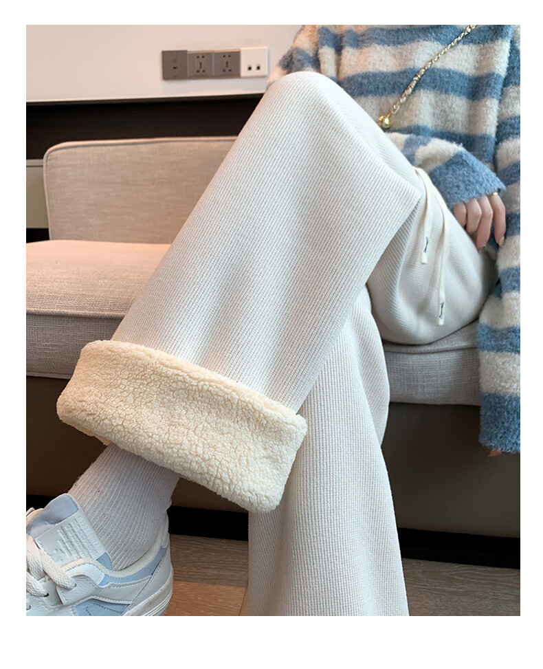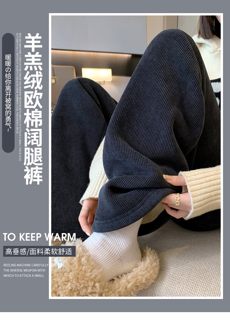 Langsha lambswool wide-leg pants for women winter 2025 new high-waisted straight casual pants loose warm plus velvet thickened pants