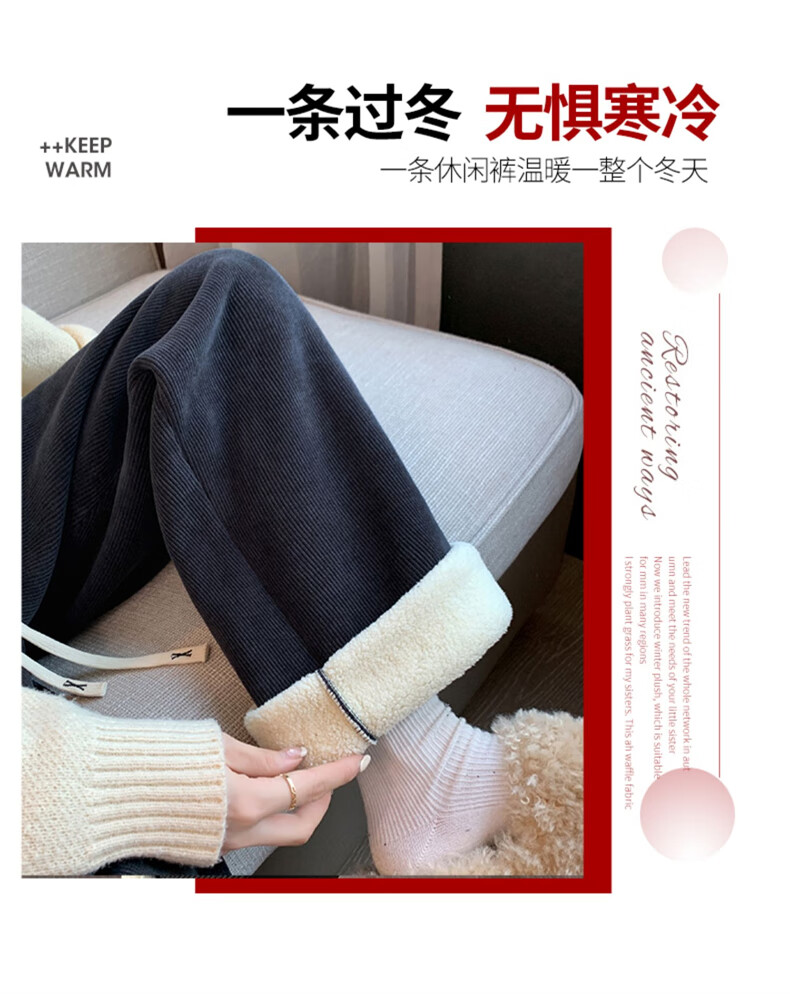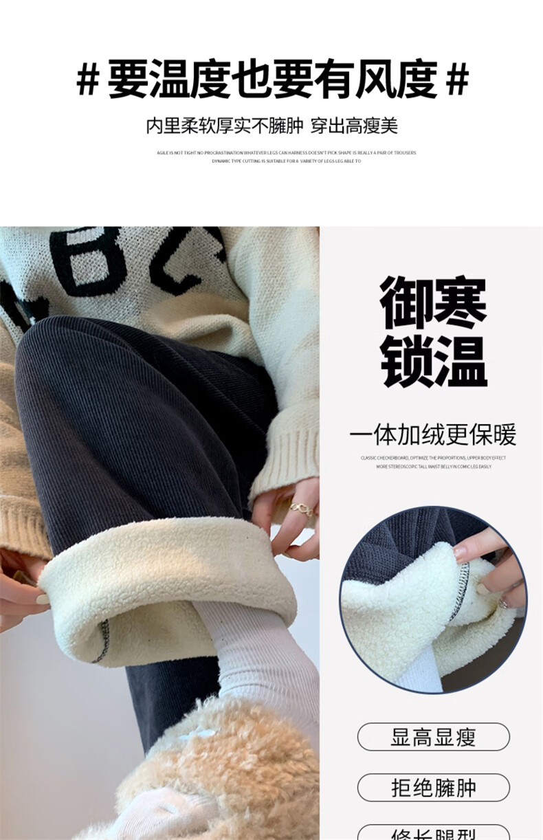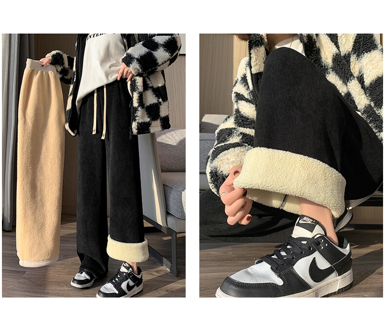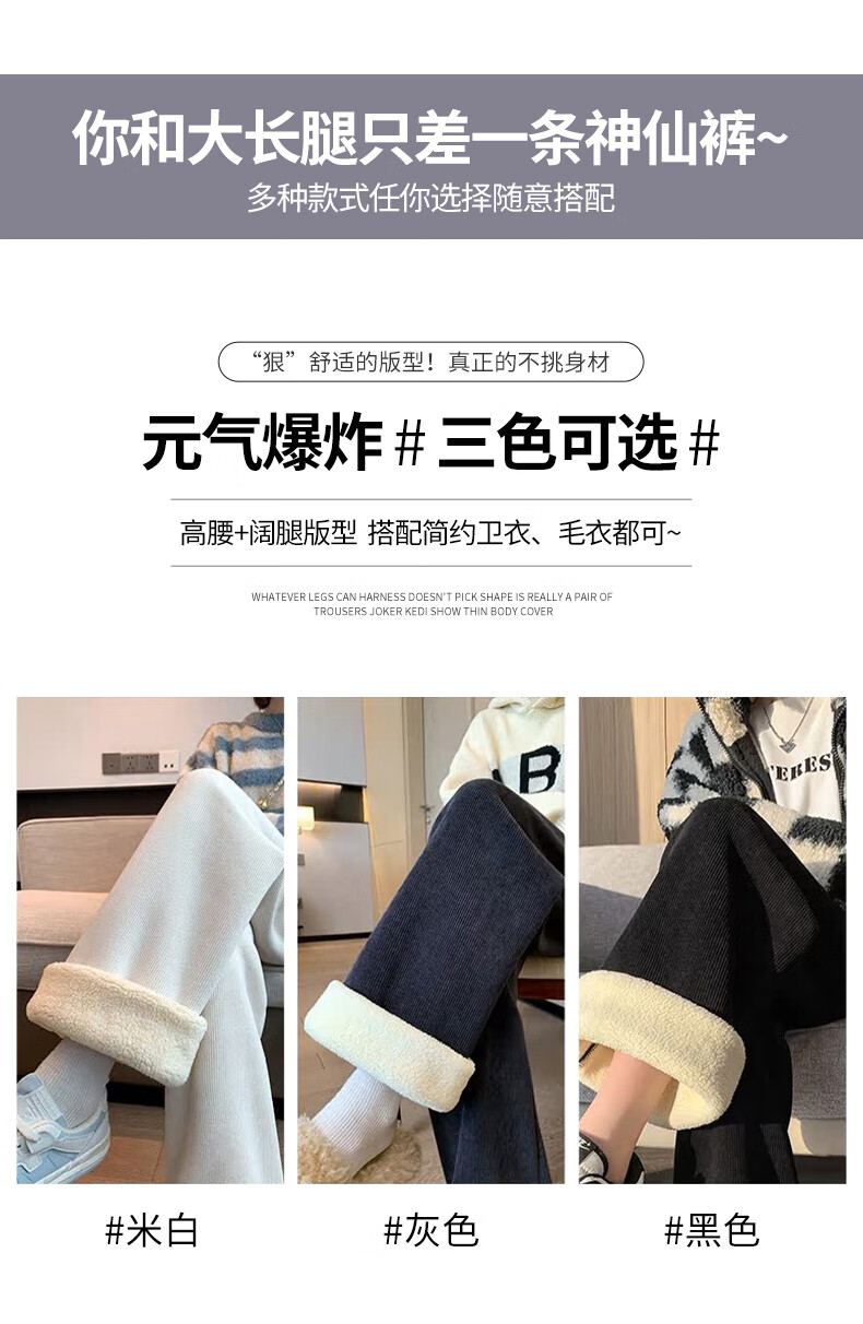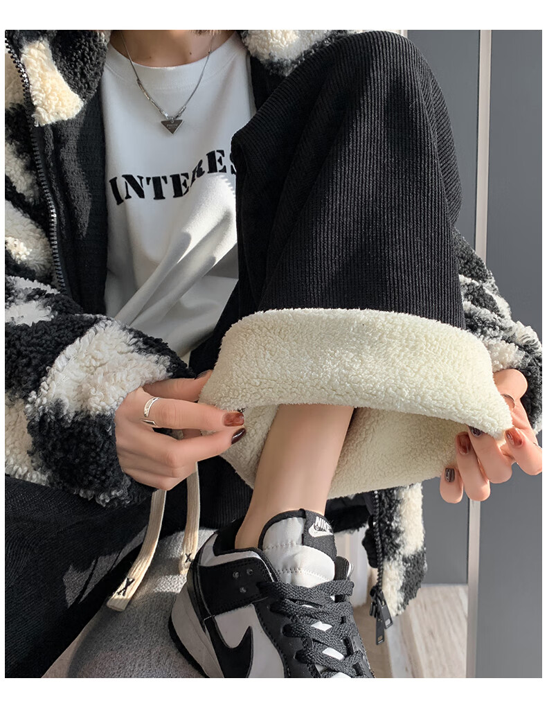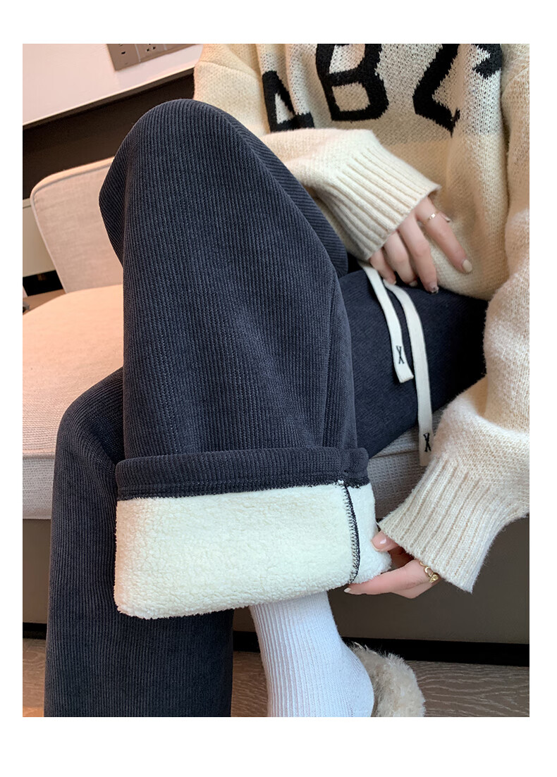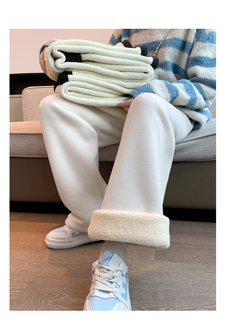 Langsha lambswool wide-leg pants for women winter 2025 new high-waisted straight casual pants loose warm plus velvet thickened pants