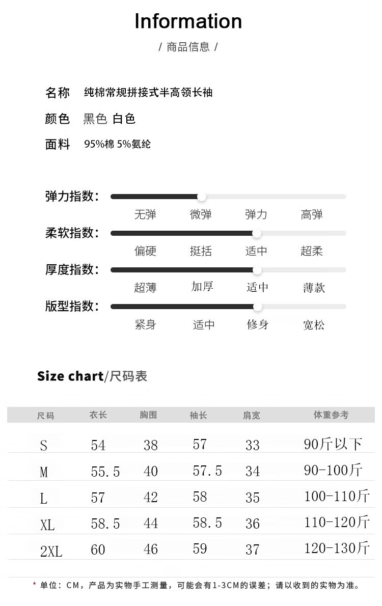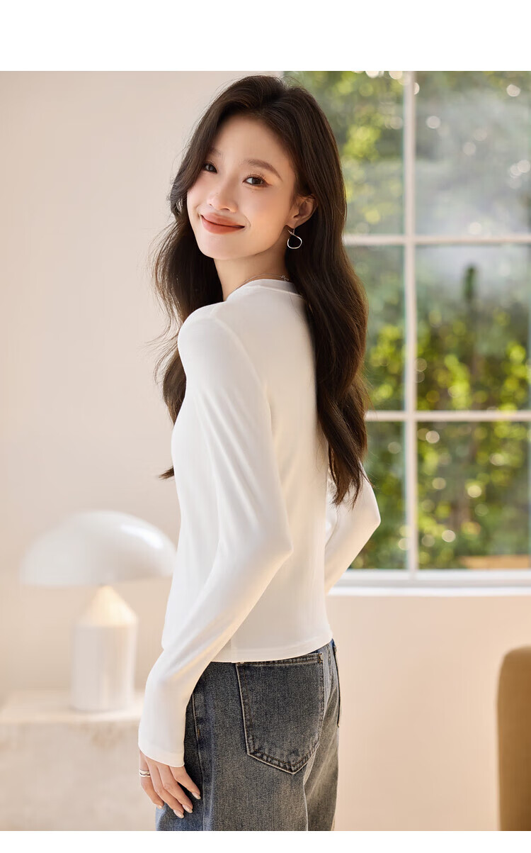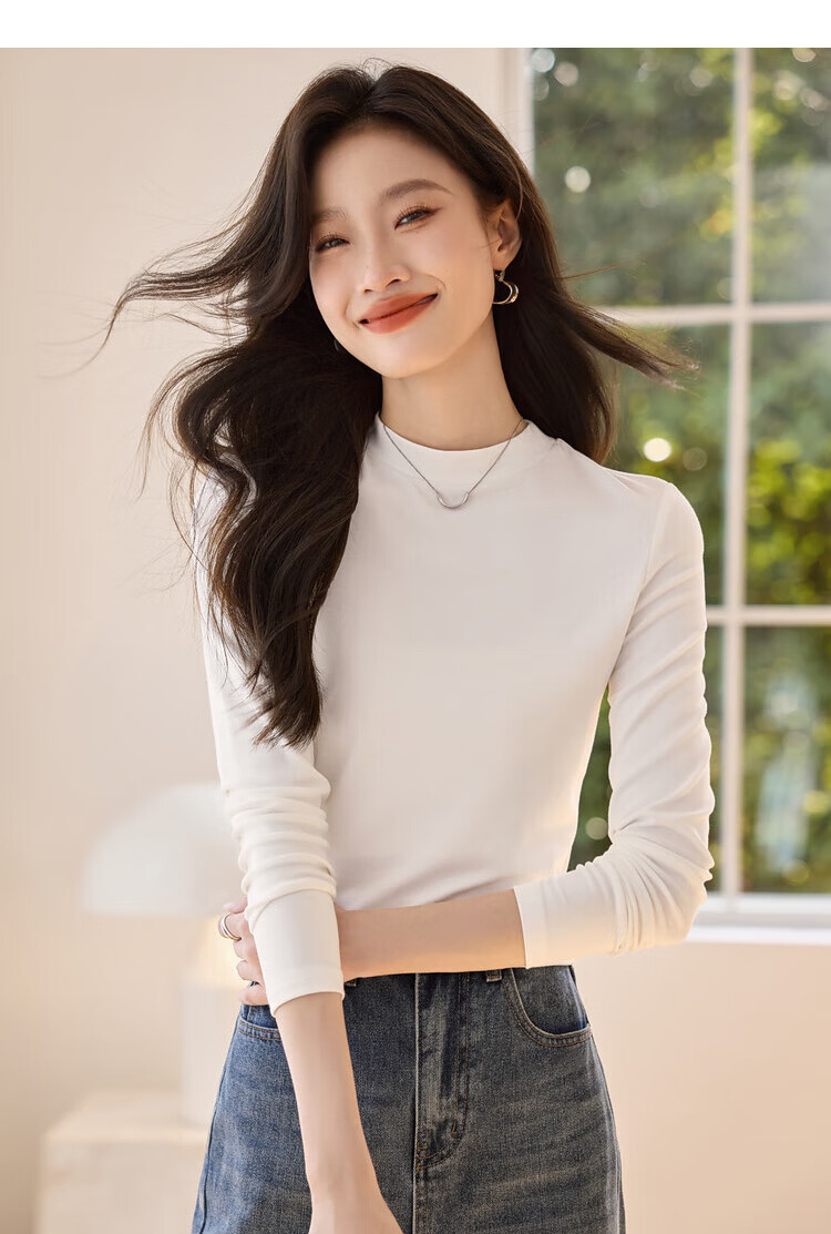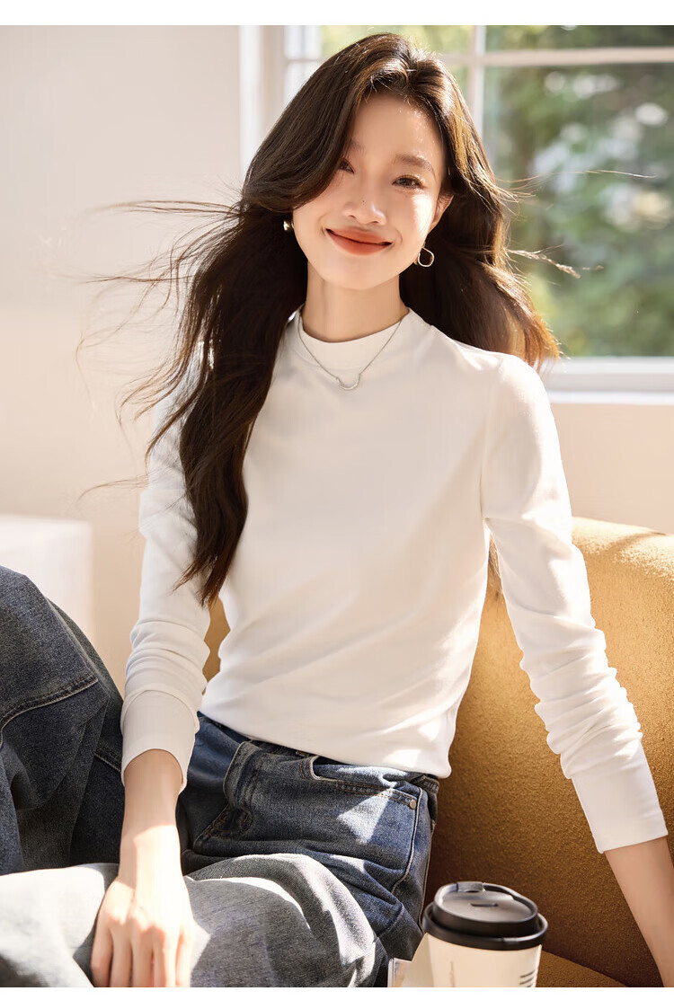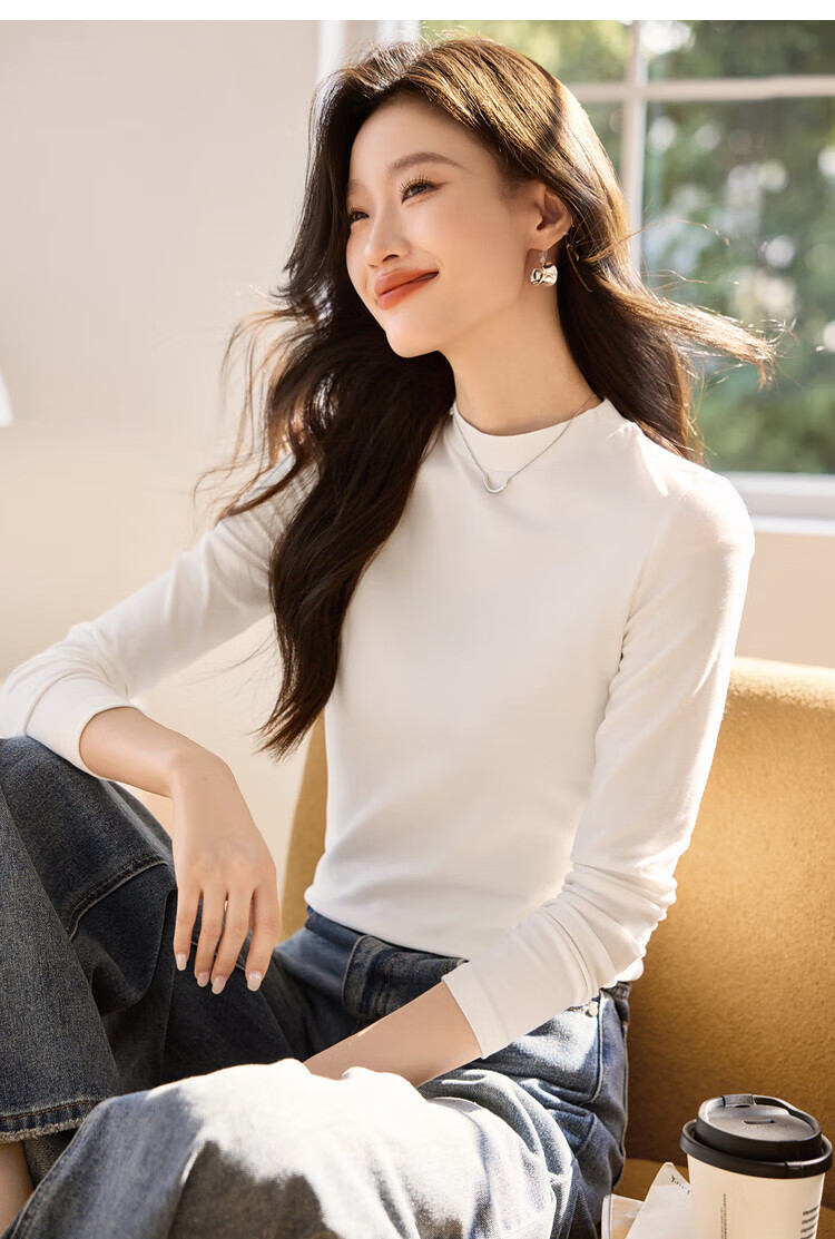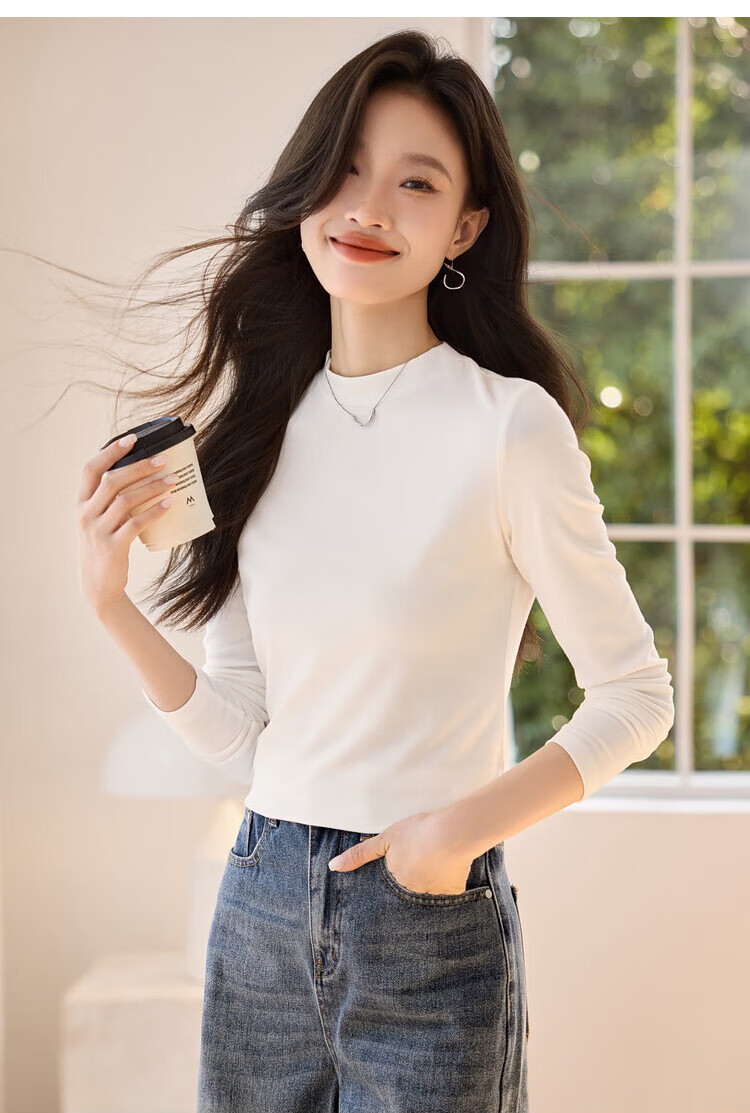 Woodpecker long-sleeved T-shirt for women in autumn pure cotton right shoulder slim fit versatile half turtleneck bottoming shirt top black XL