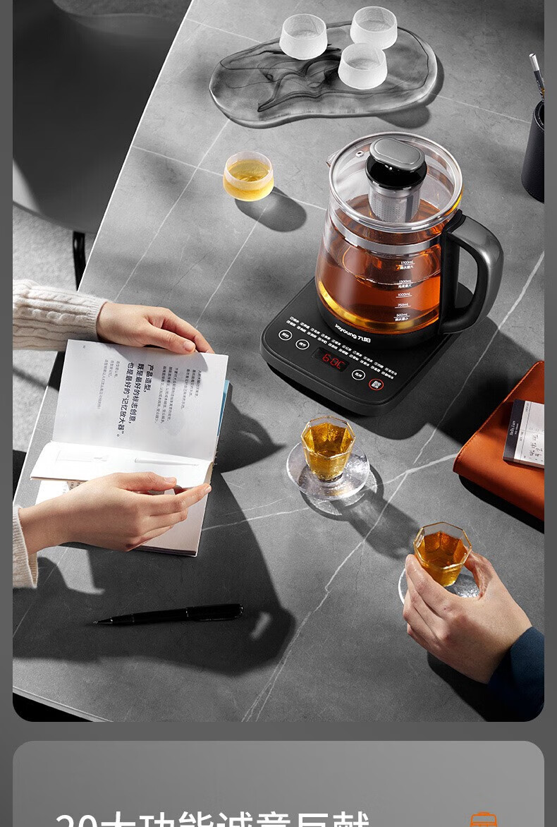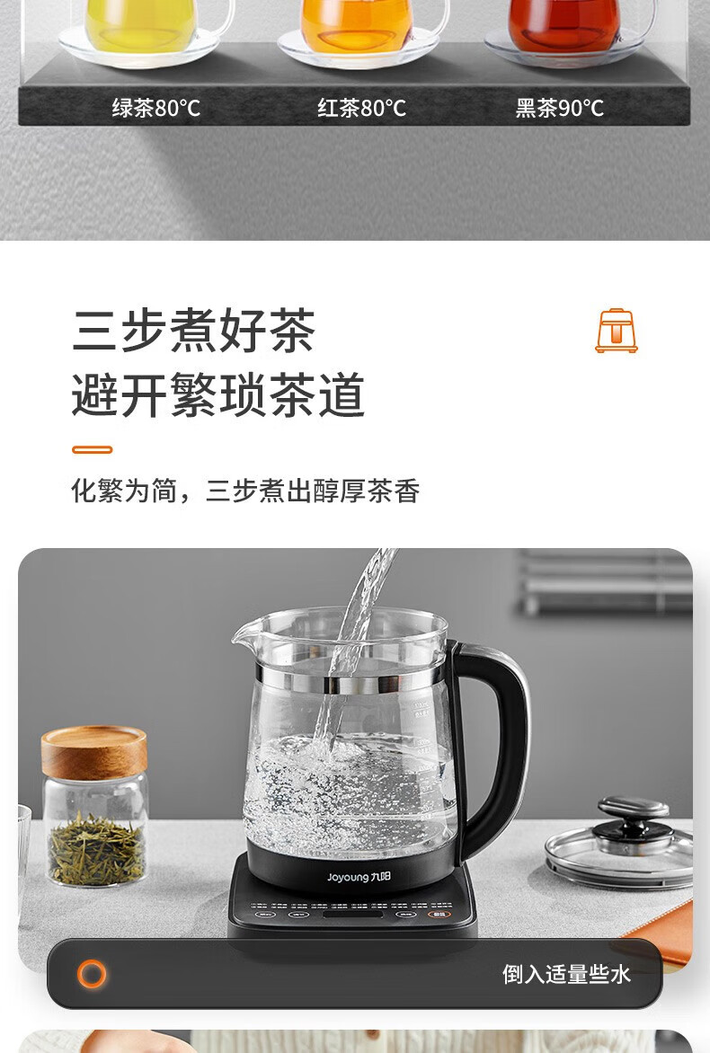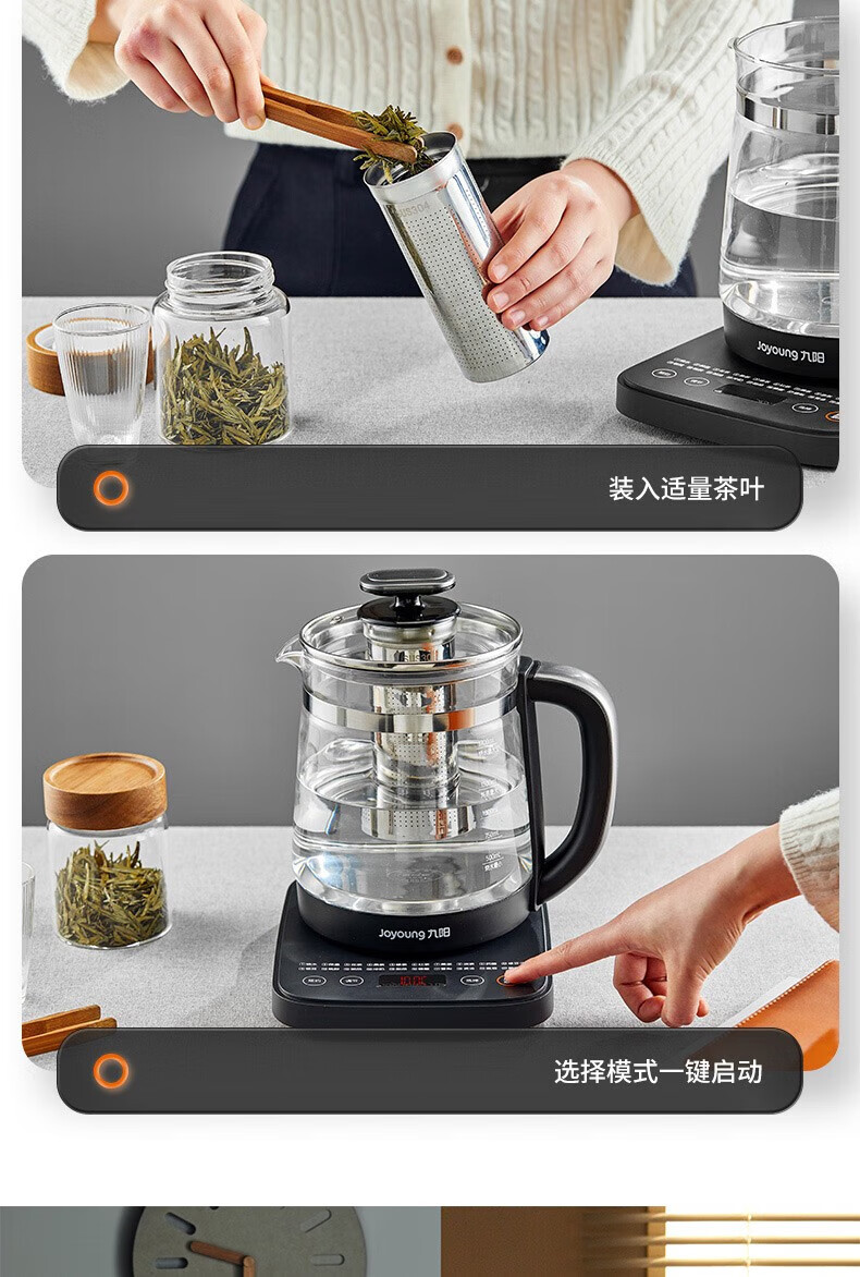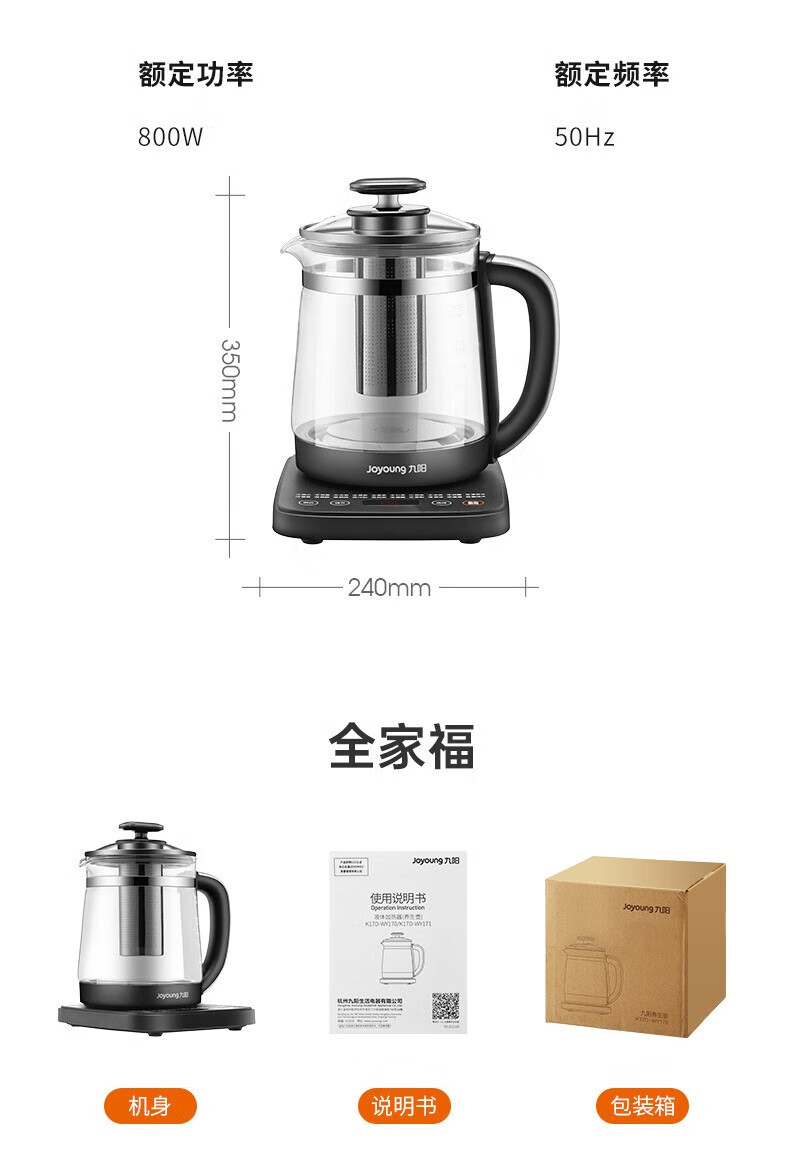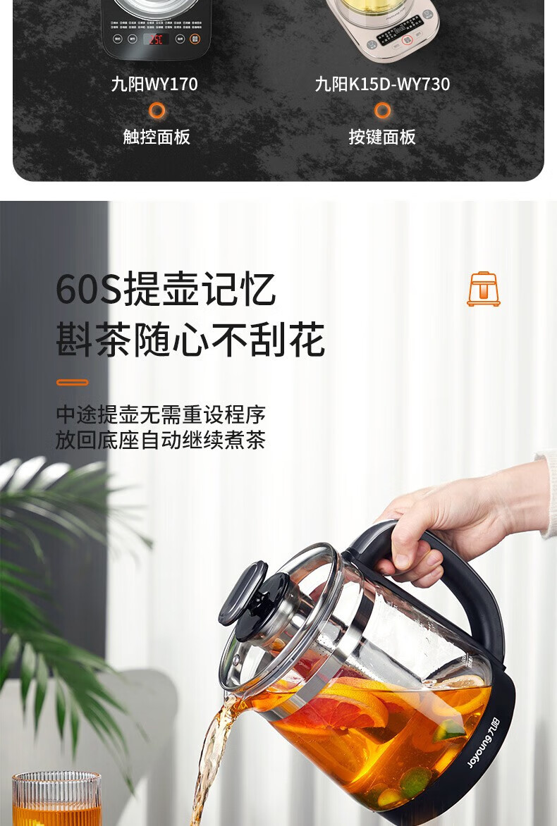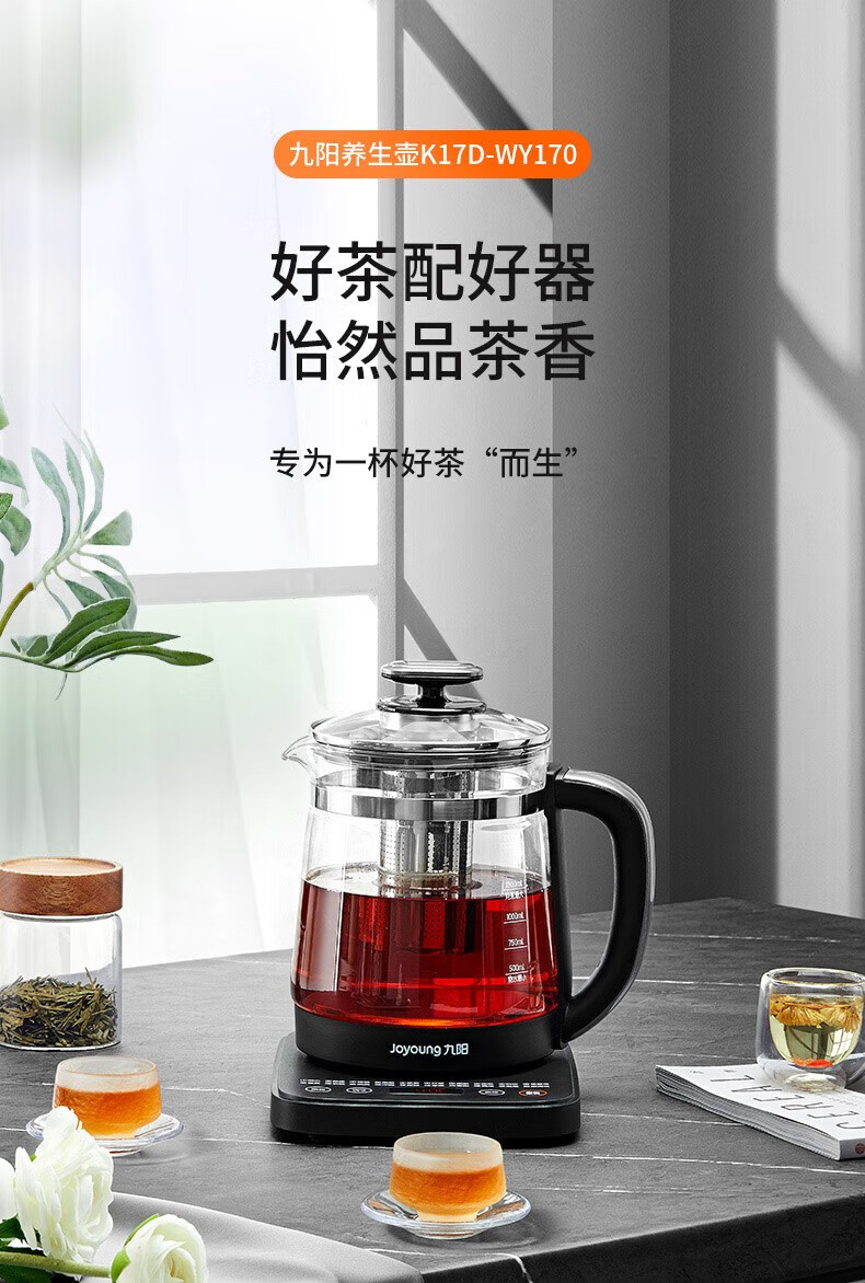 Joyoung health kettle 1.7L large capacity tea making electric kettle boiling water kettle hot water kettle tea maker glass flower teapot K17D-WY170 black with tea blue 1.7L