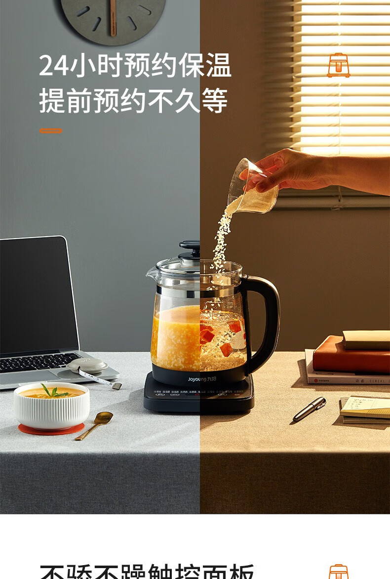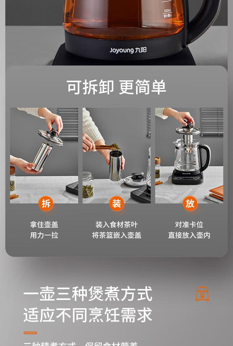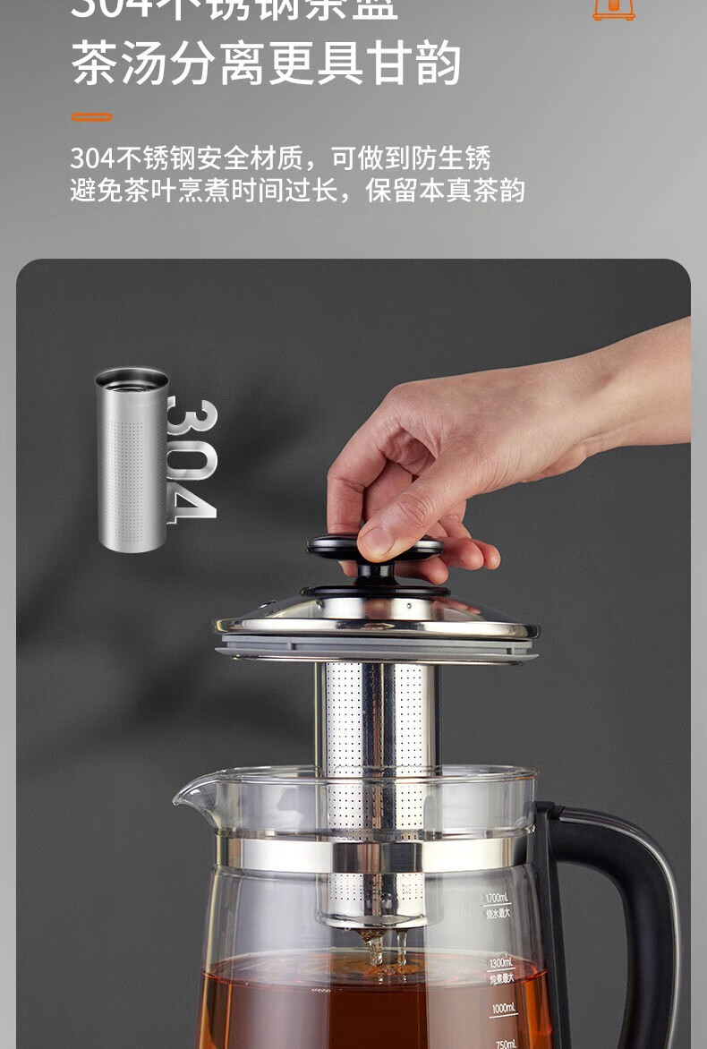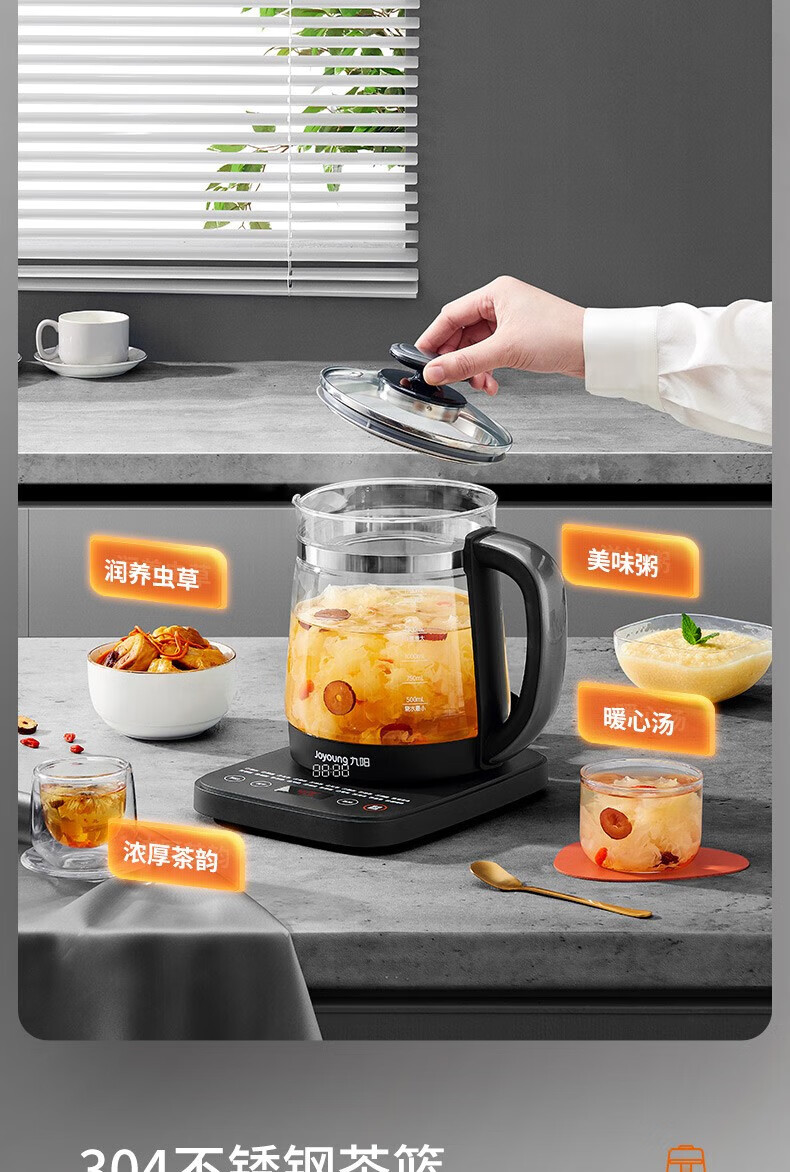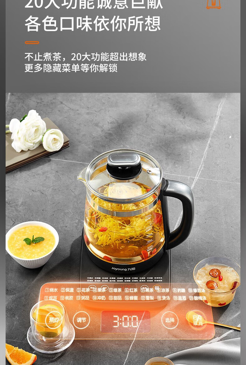 Joyoung health kettle 1.7L large capacity tea making electric kettle boiling water kettle hot water kettle tea maker glass flower teapot K17D-WY170 black with tea blue 1.7L