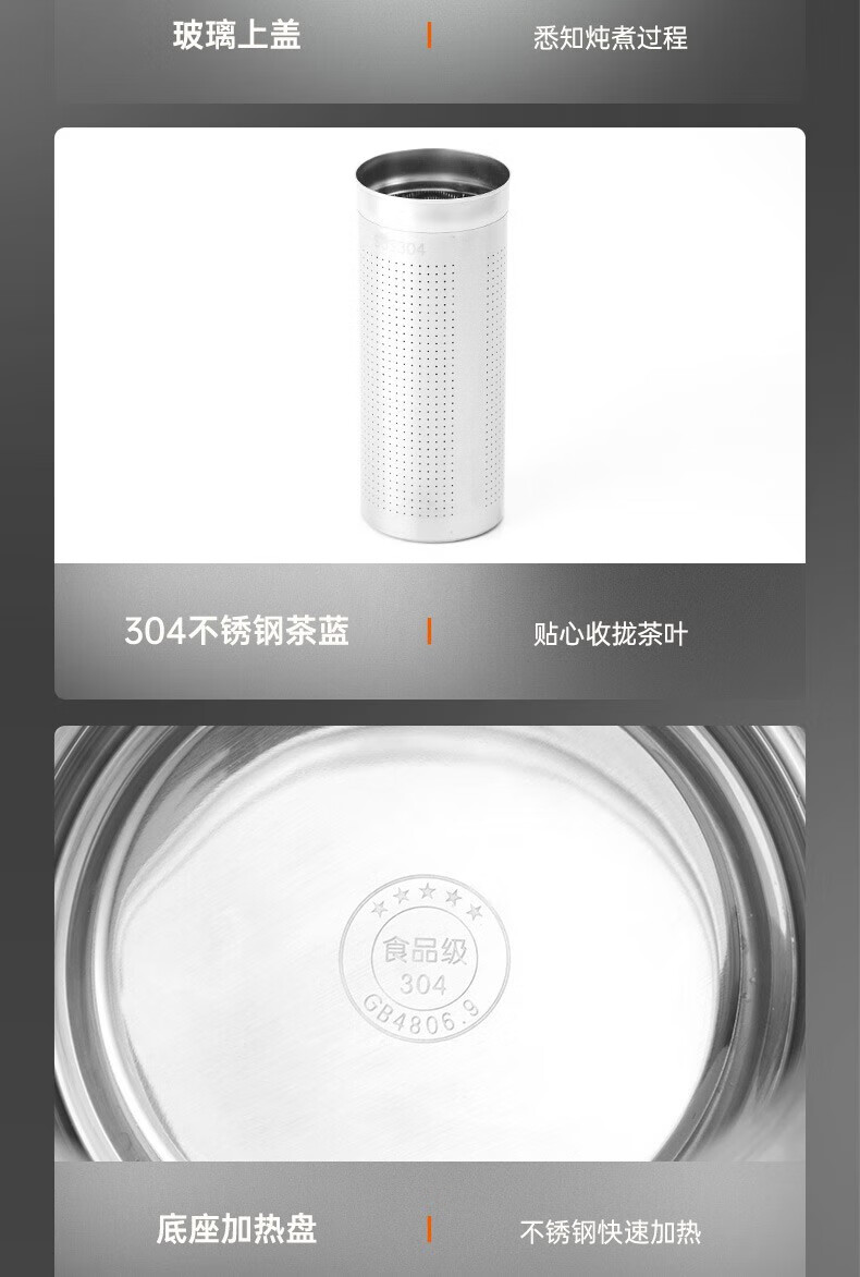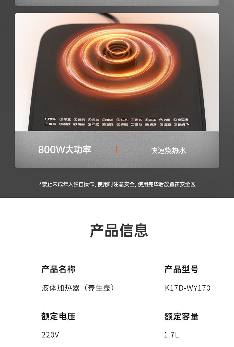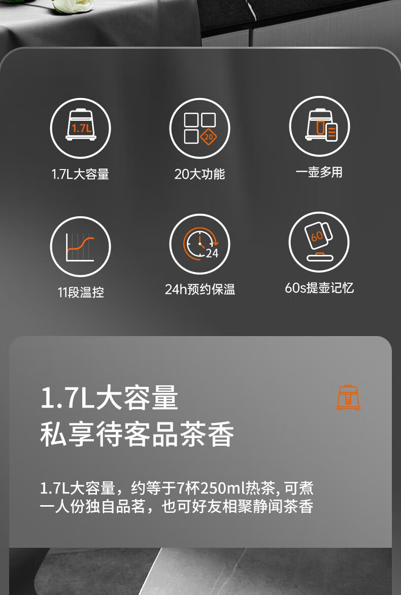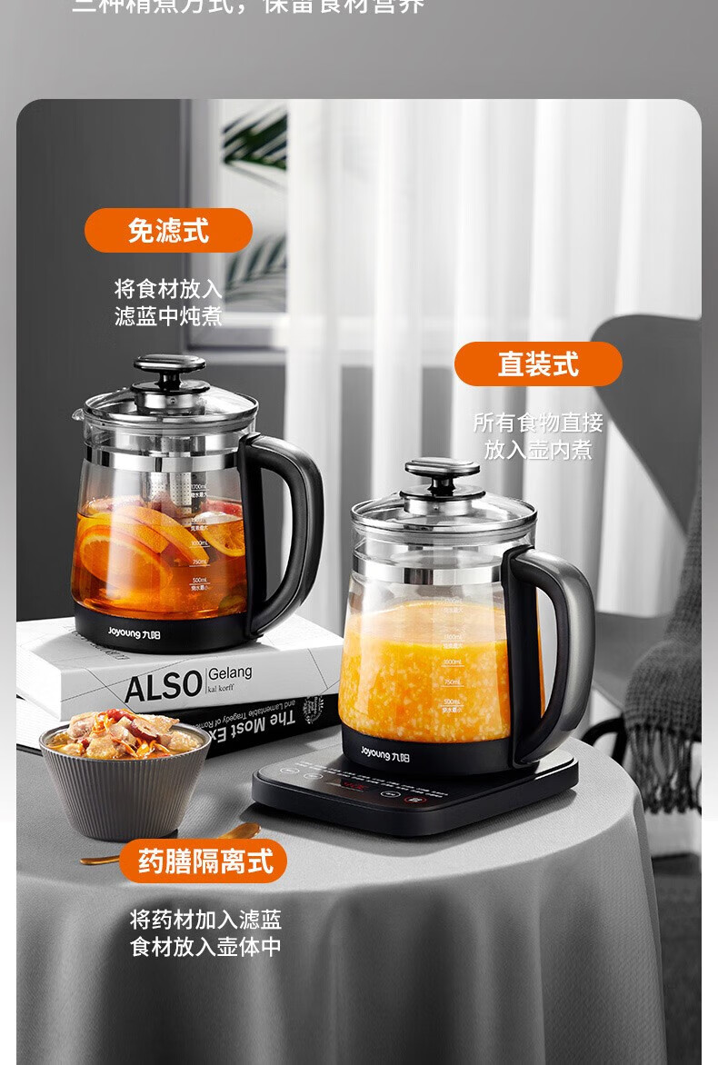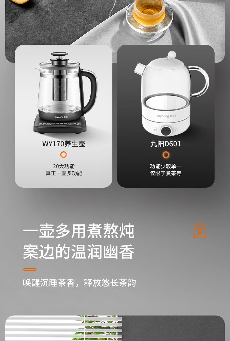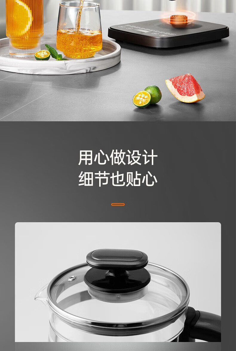 Joyoung health kettle 1.7L large capacity tea making electric kettle boiling water kettle hot water kettle tea maker glass flower teapot K17D-WY170 black with tea blue 1.7L