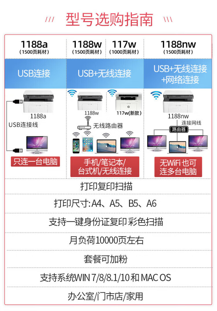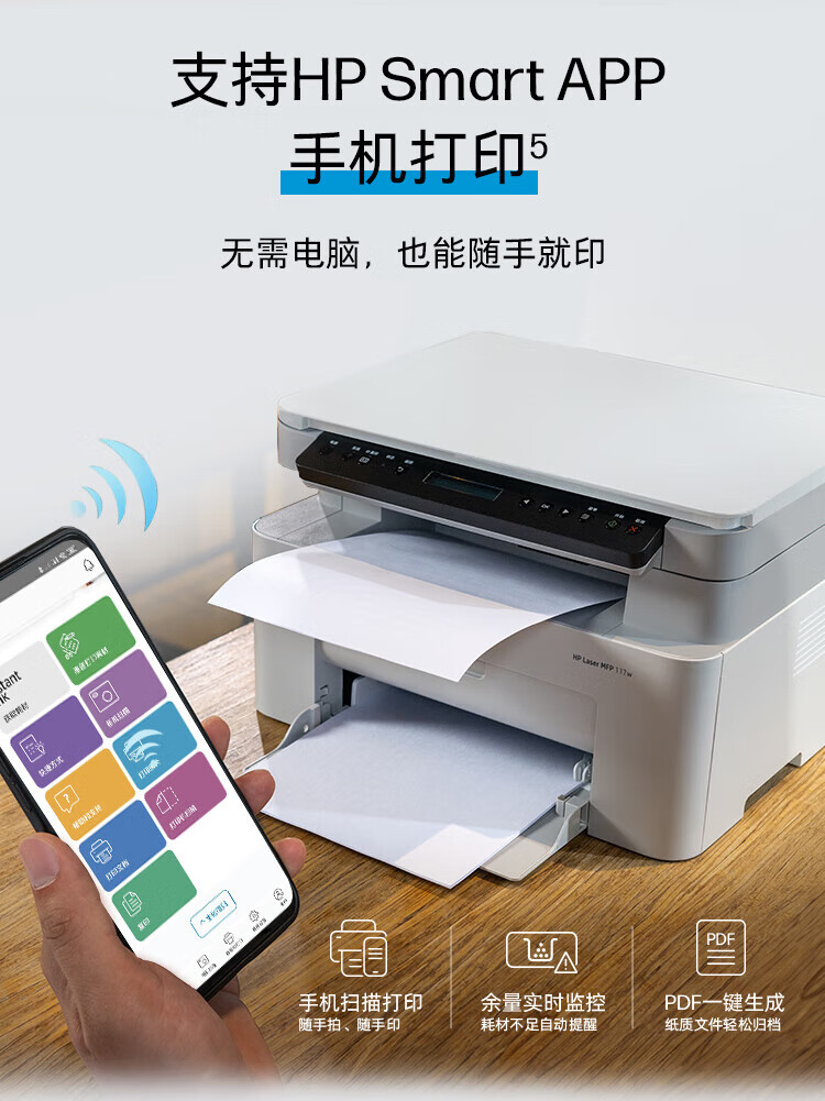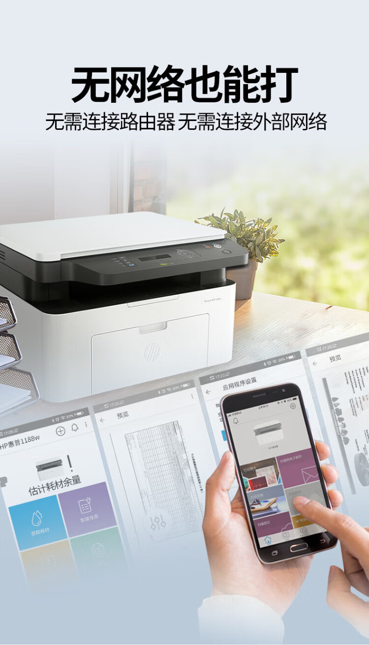 HP (HP) 117w/1188w/1188nw wireless laser printer, home study and office, printing, copying and scanning all-in-one machine multi-function test paper homework is the same as 116w/1136w 1188a+ large capacity refillable toner cartridge package