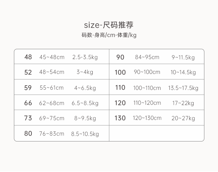 China (cm) 160-165/84-86 165-170 / 88-90 167-172 / 92-96 168-173 / 98-102 170-176 / 106-110