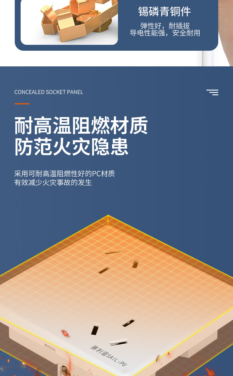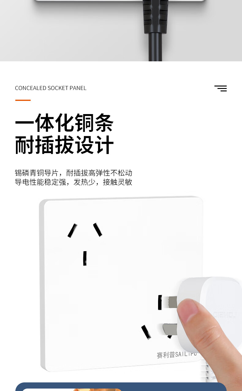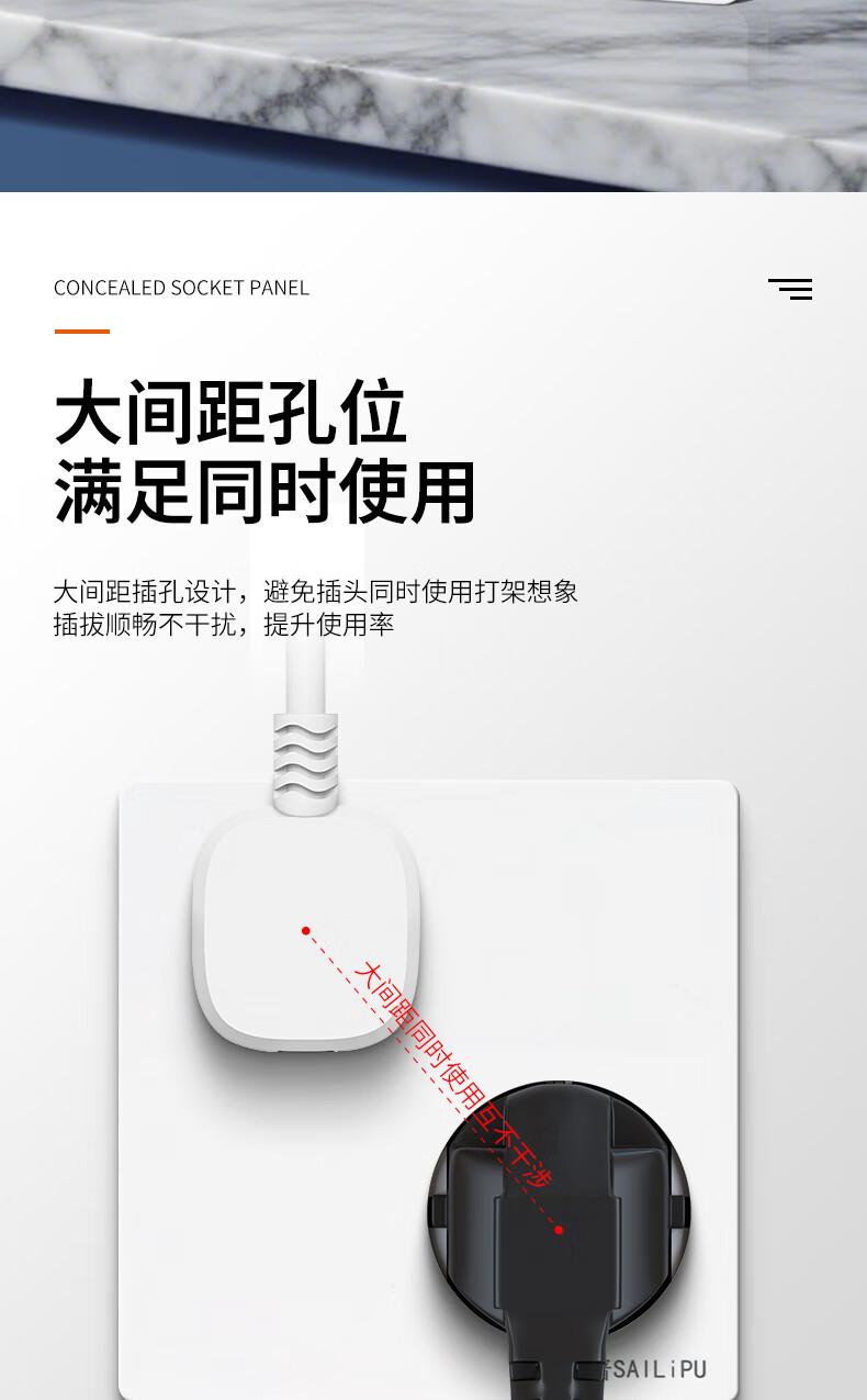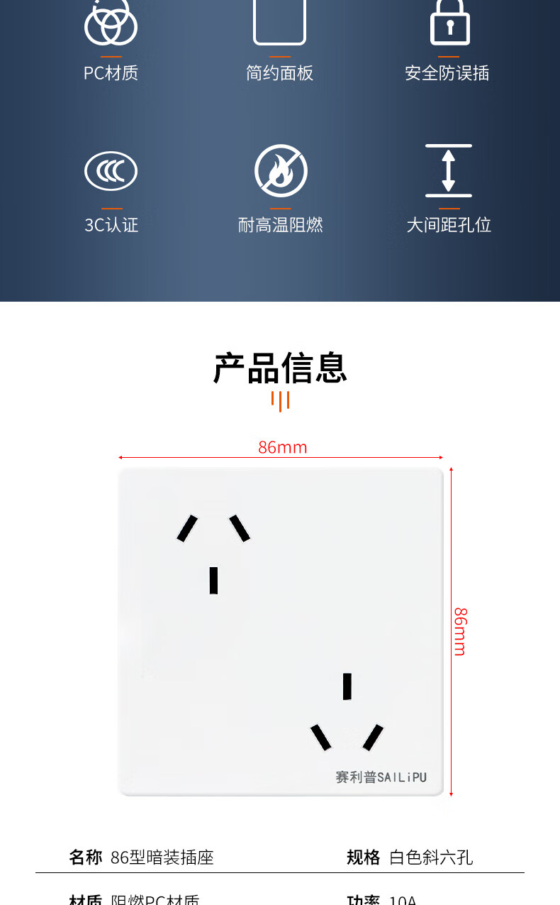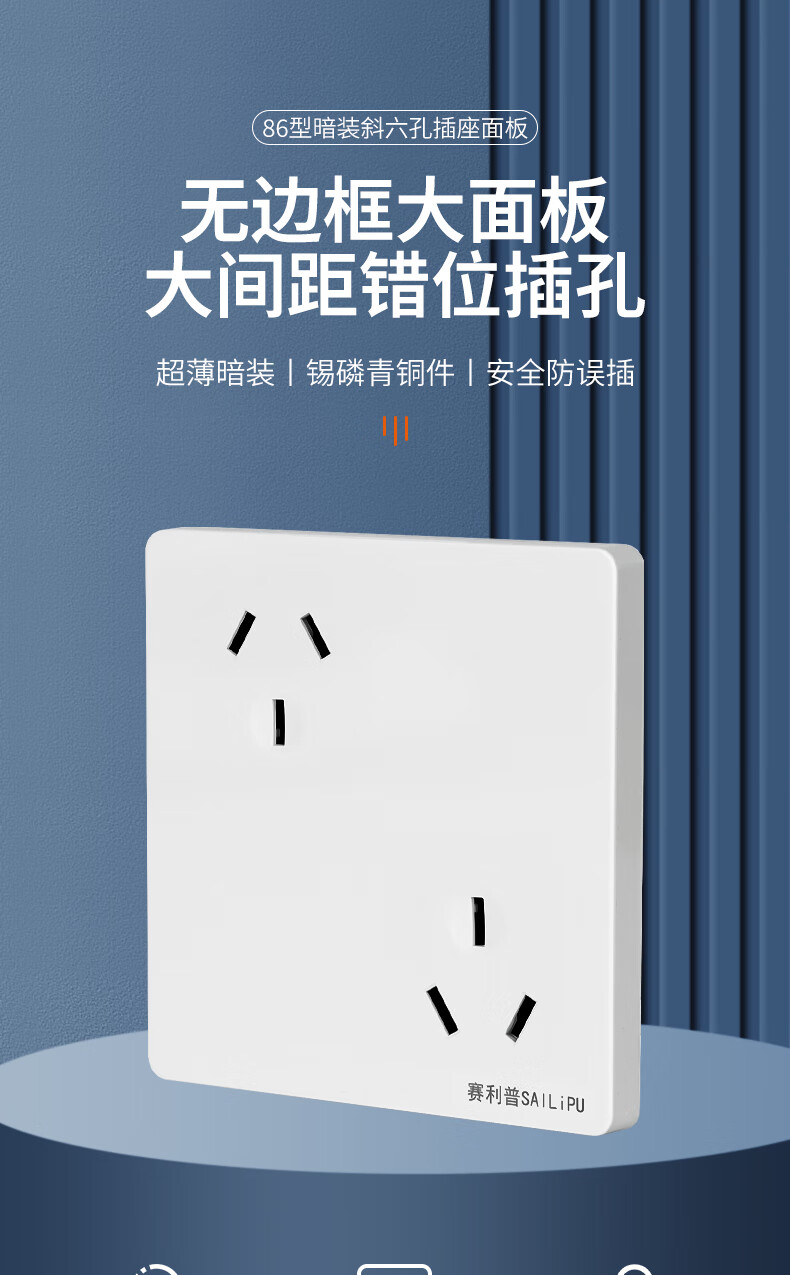 SAILiPU 86 type misaligned six-hole socket porous wall concealed 6-hole three-pin double-three-hole oblique six-hole power socket panel 10A inverted six-hole socket