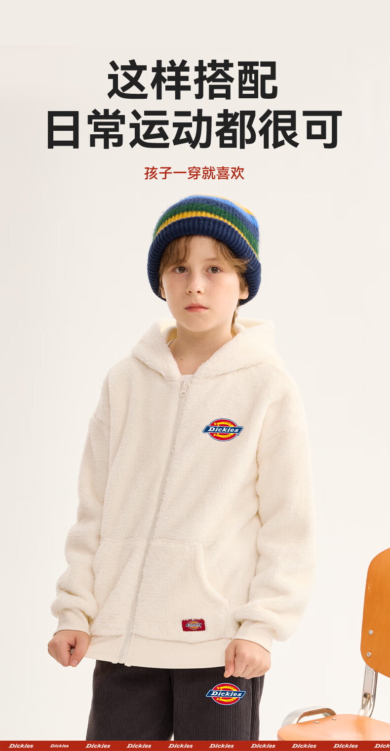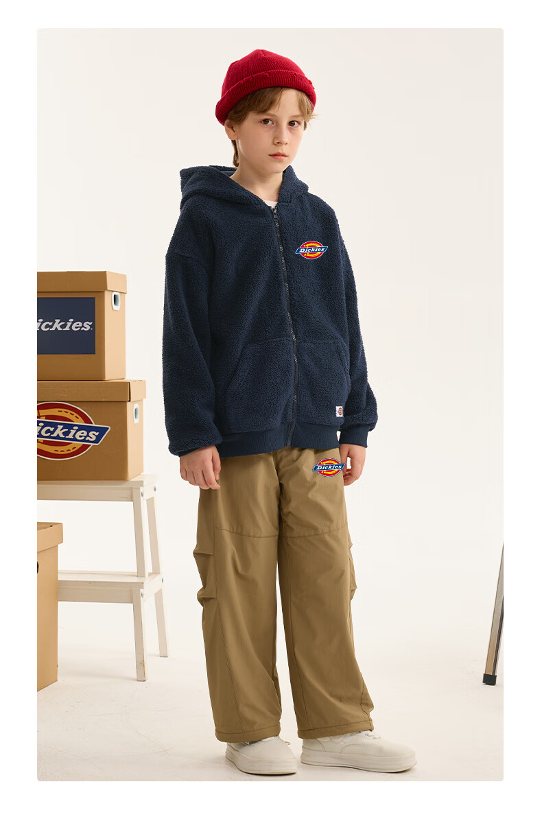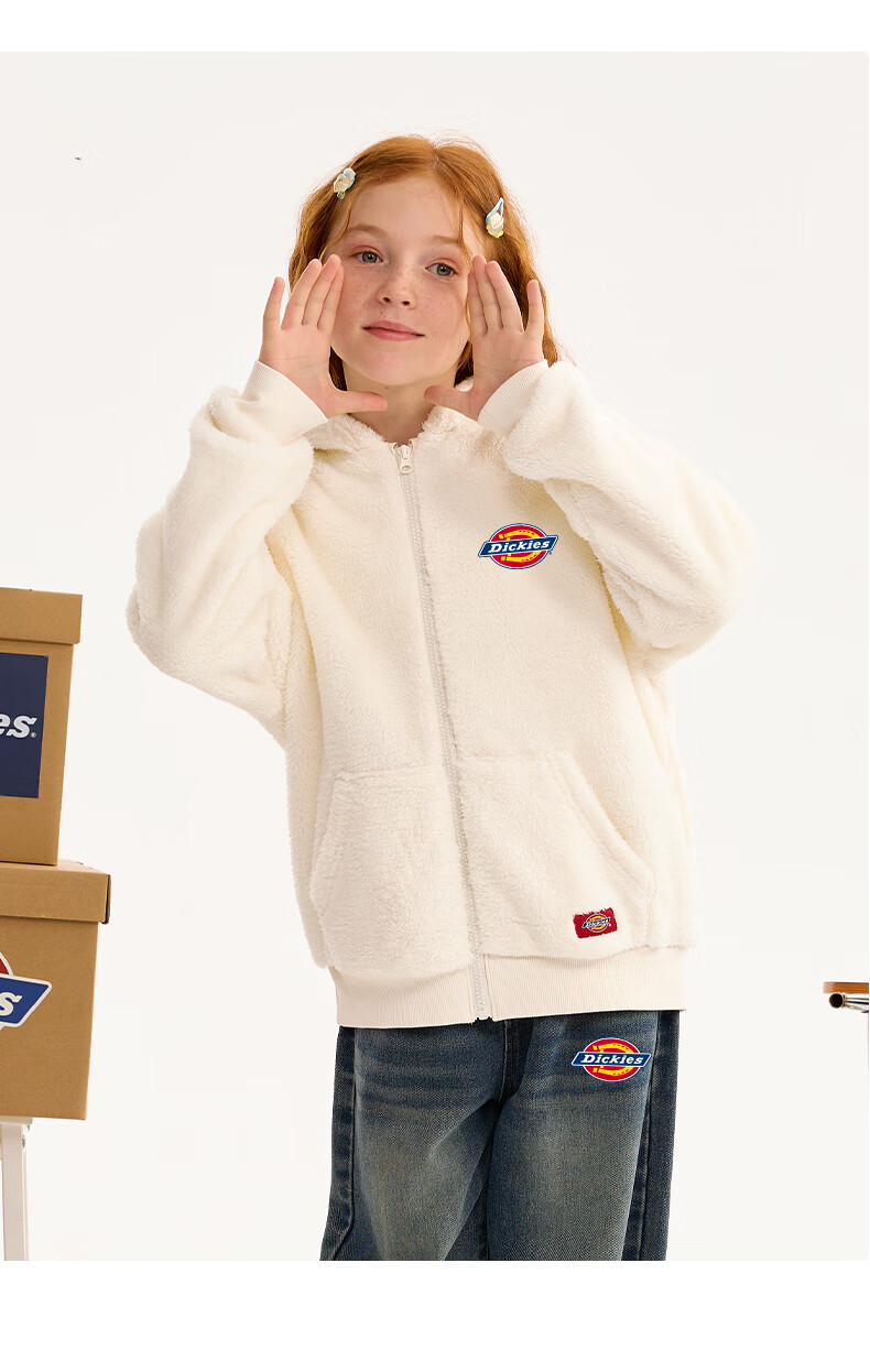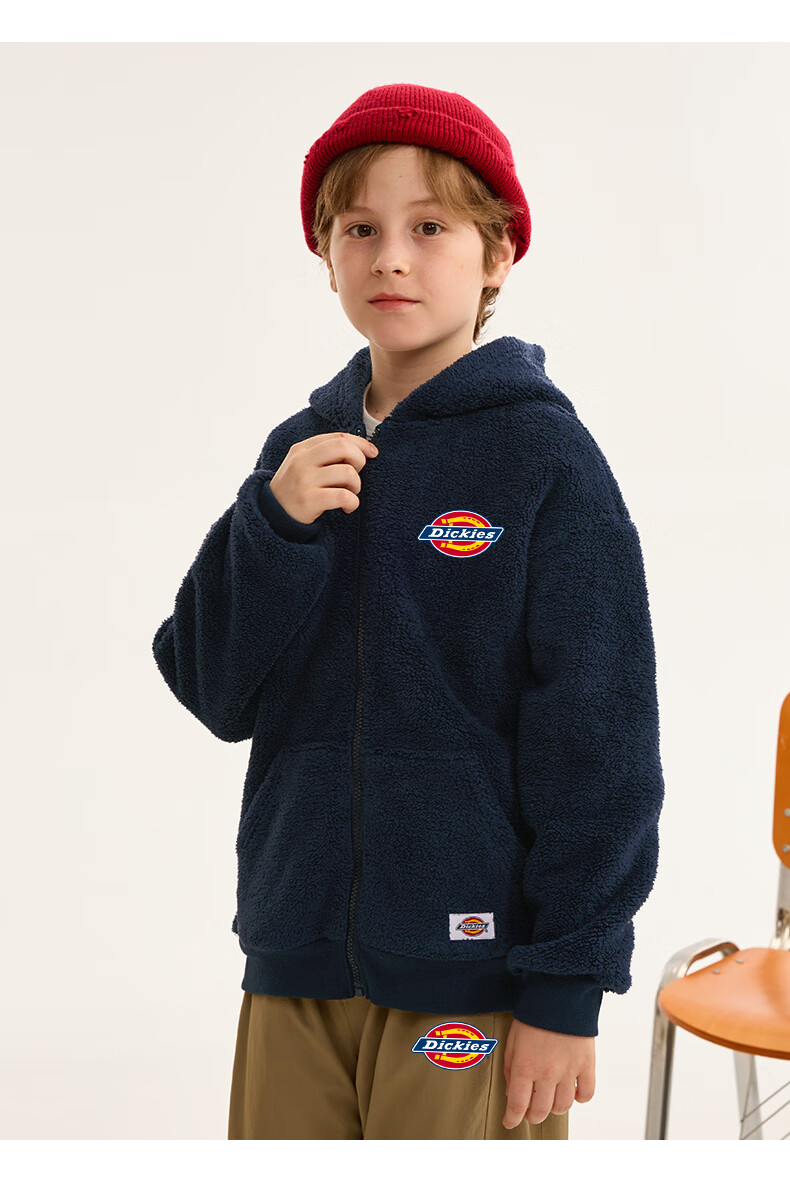 Dickies children's clothing boys' coats autumn and winter children's lamb velvet zipper shirt solid color girls winter thickened trendy clothes