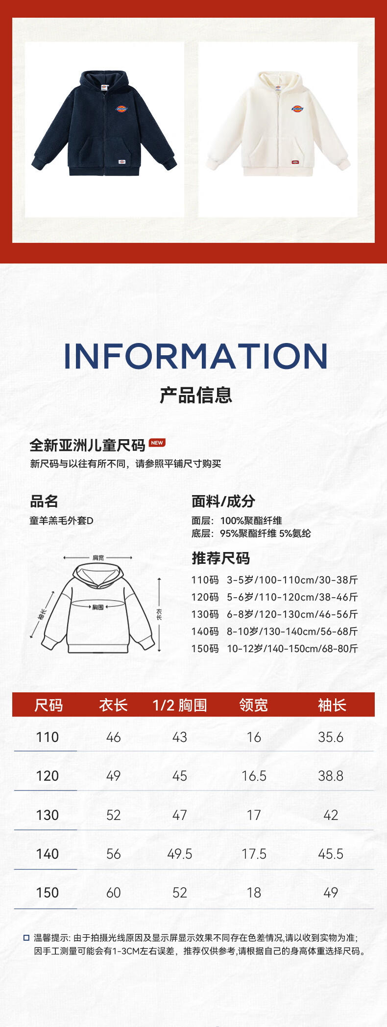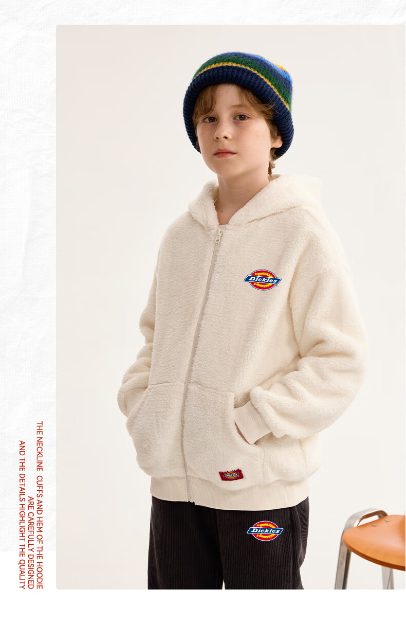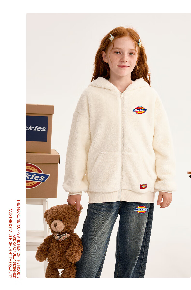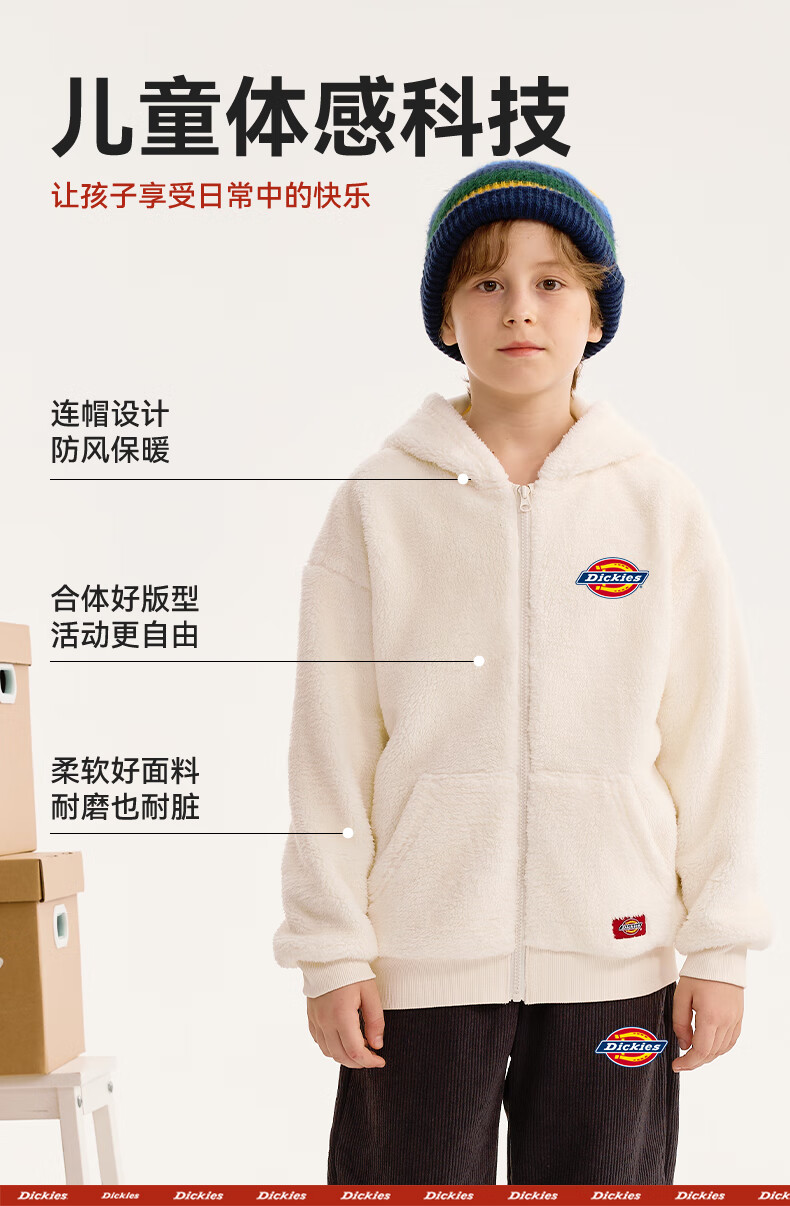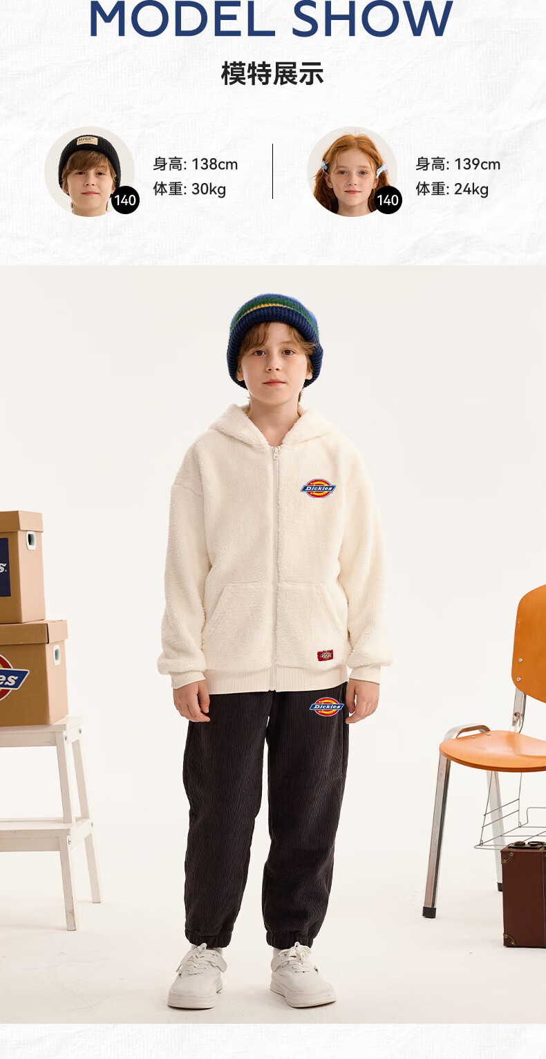 Dickies children's clothing boys' coats autumn and winter children's lamb velvet zipper shirt solid color girls winter thickened trendy clothes