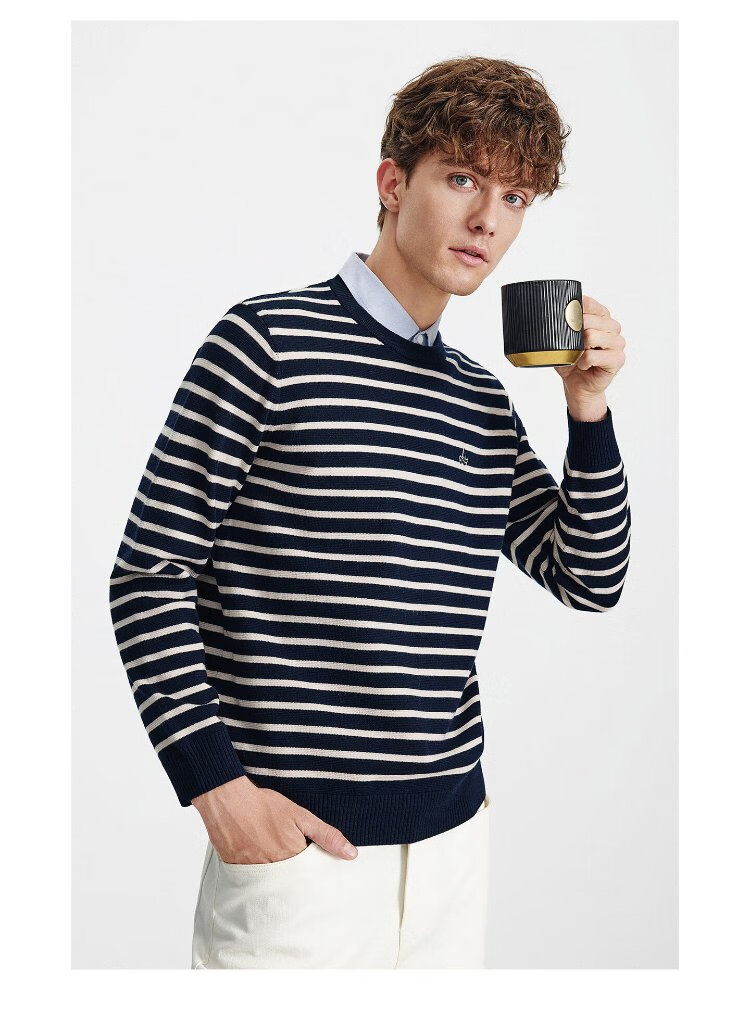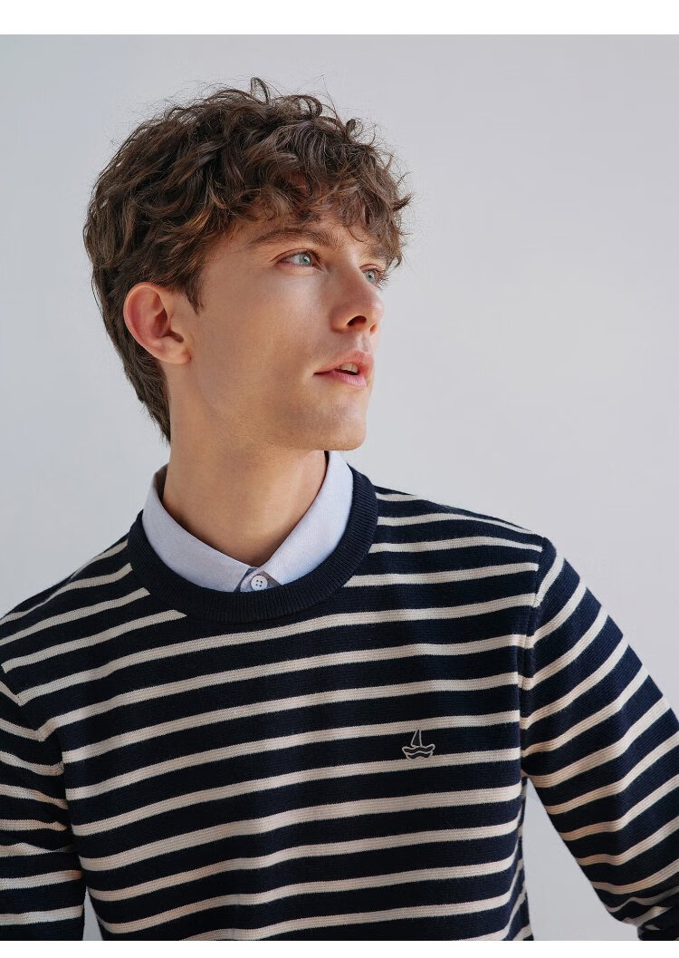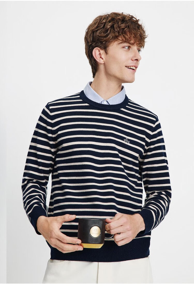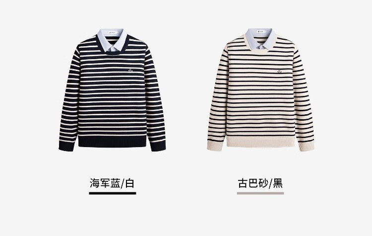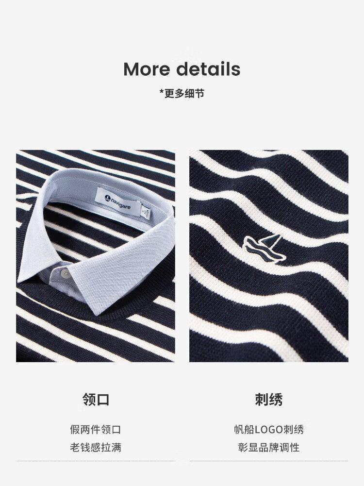 Navikel Italian dinghy 25 autumn and winter new men's fake two-piece striped sweater shirt collar sweater 1144015314