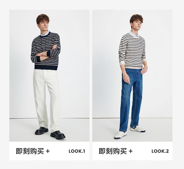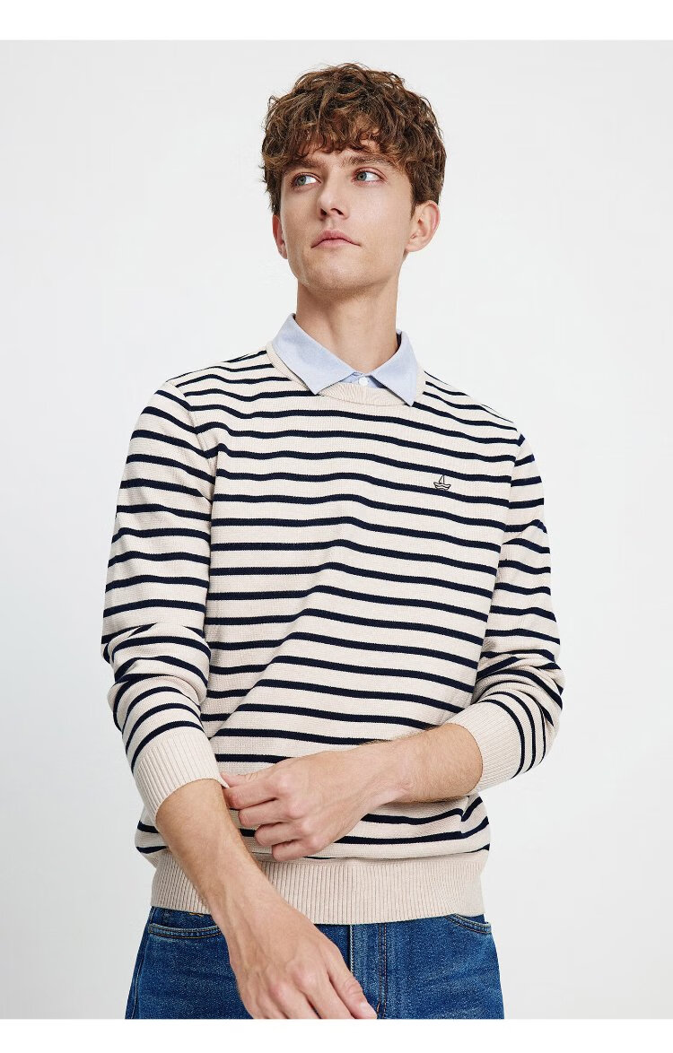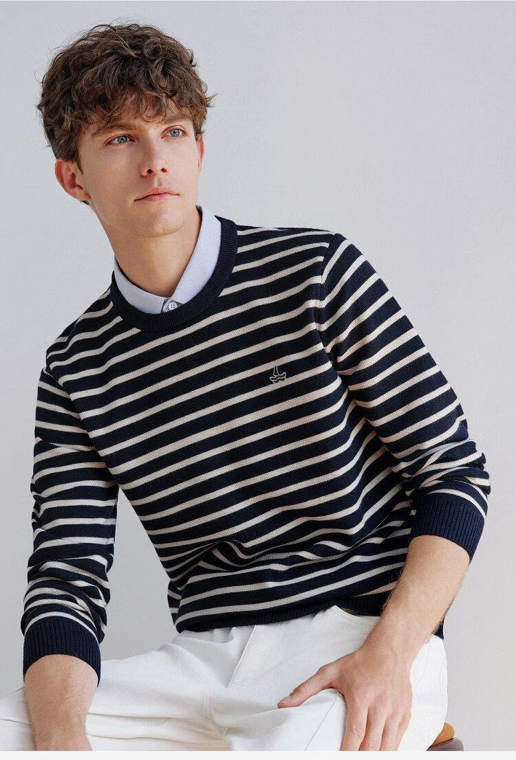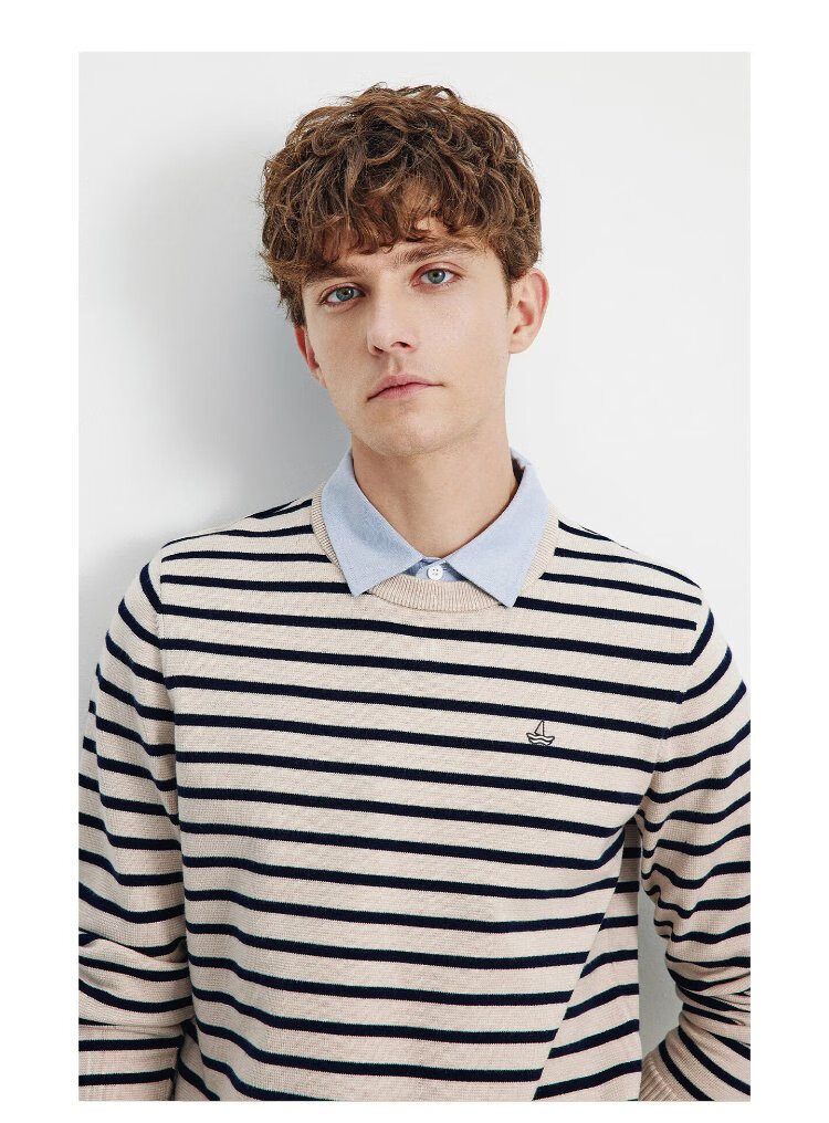 Navikel Italian dinghy 25 autumn and winter new men's fake two-piece striped sweater shirt collar sweater 1144015314