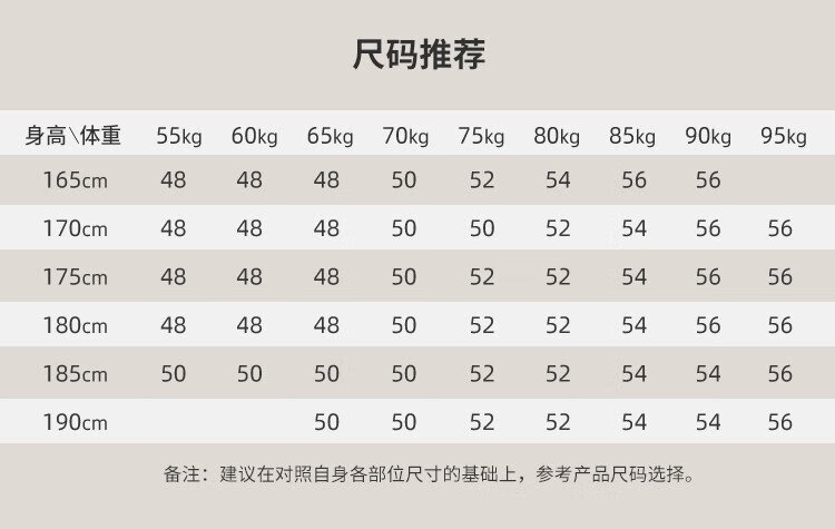 China (cm) 165 / 88-90 170 / 96-98 175 / 108-110 180 / 118-122 185 / 126-130