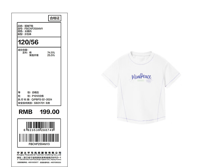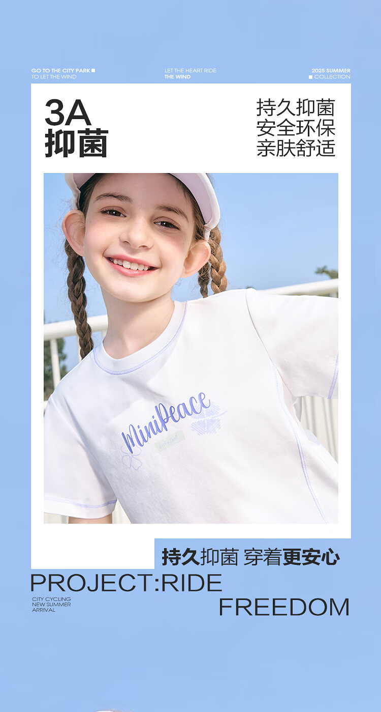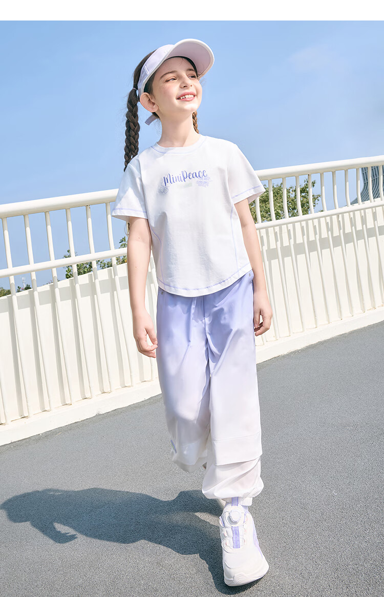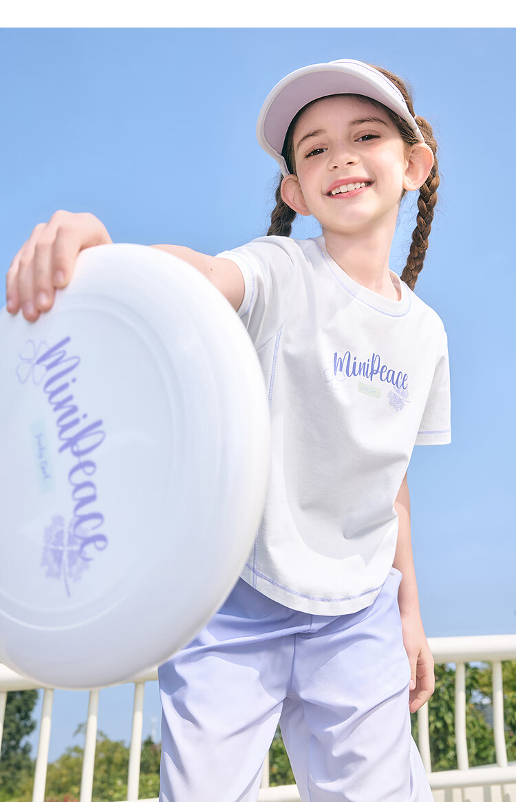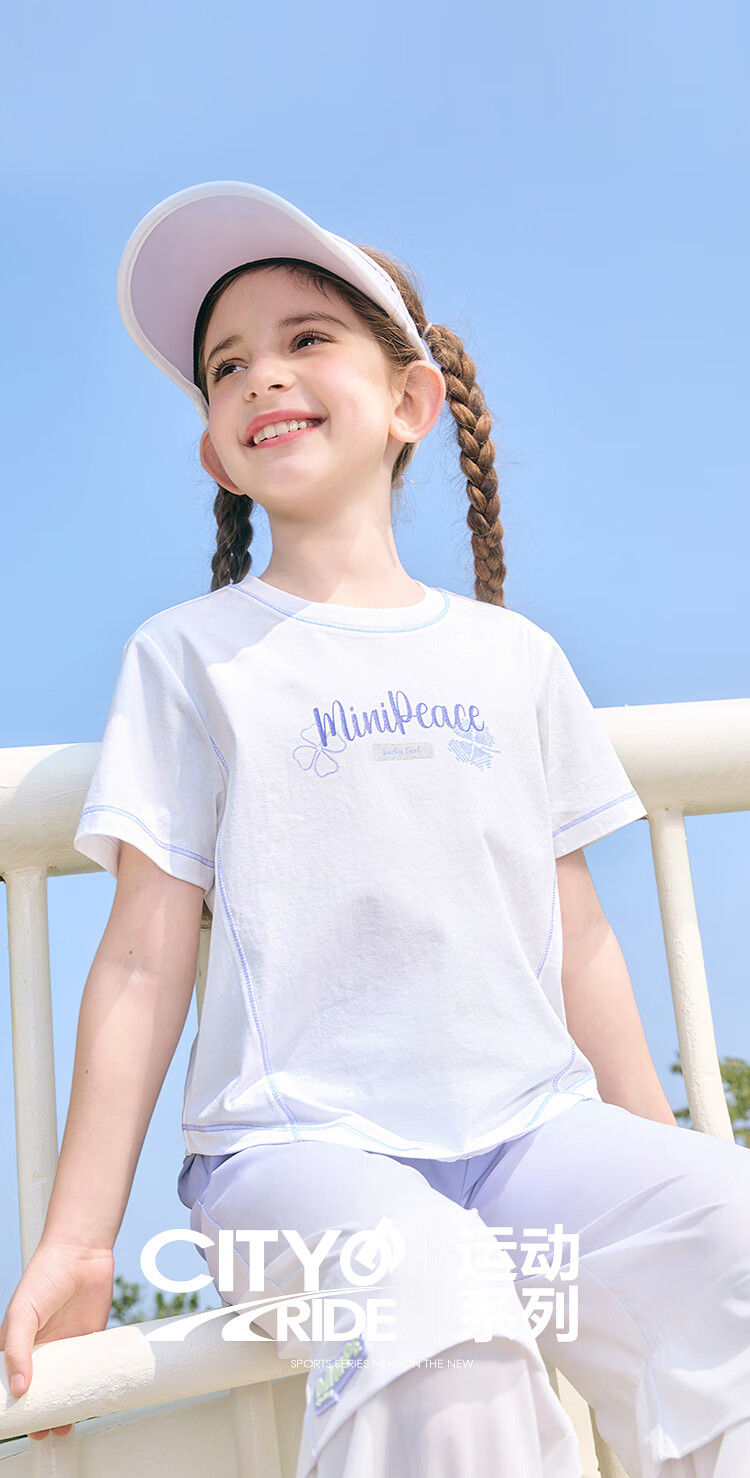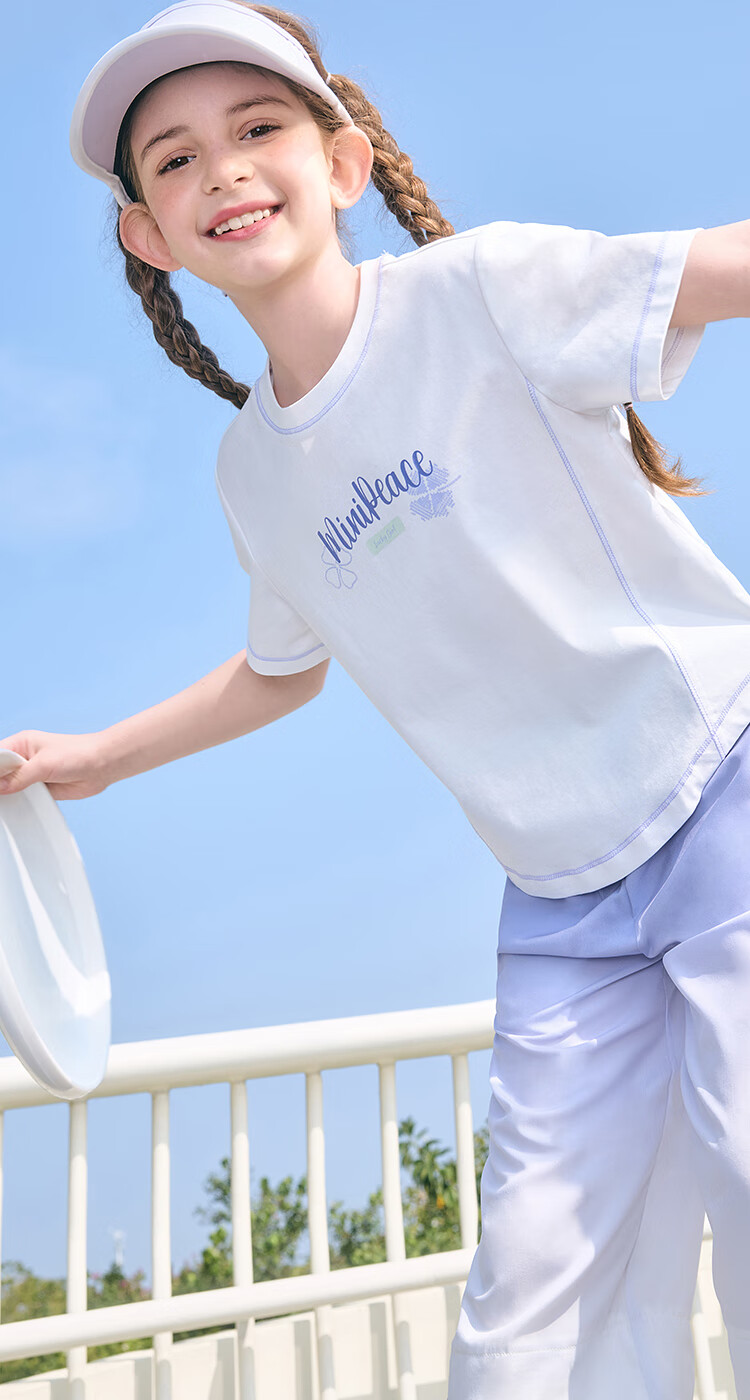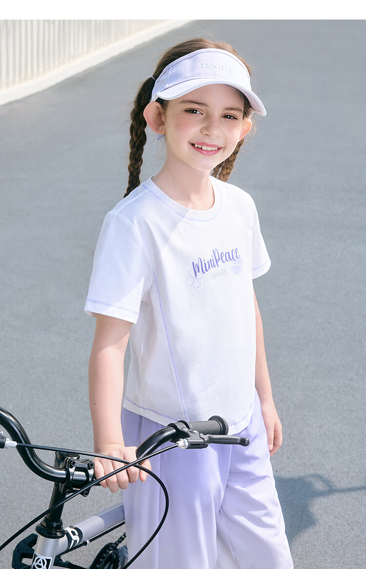MiniPeace Children's Clothes Xia Xin Girls Short Sleeve T-Shirt FBCNF2504 Cloud White 160cm