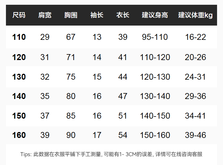 China (cm) 160-165/84-86 165-170 / 88-90 167-172 / 92-96 168-173 / 98-102 170-176 / 106-110