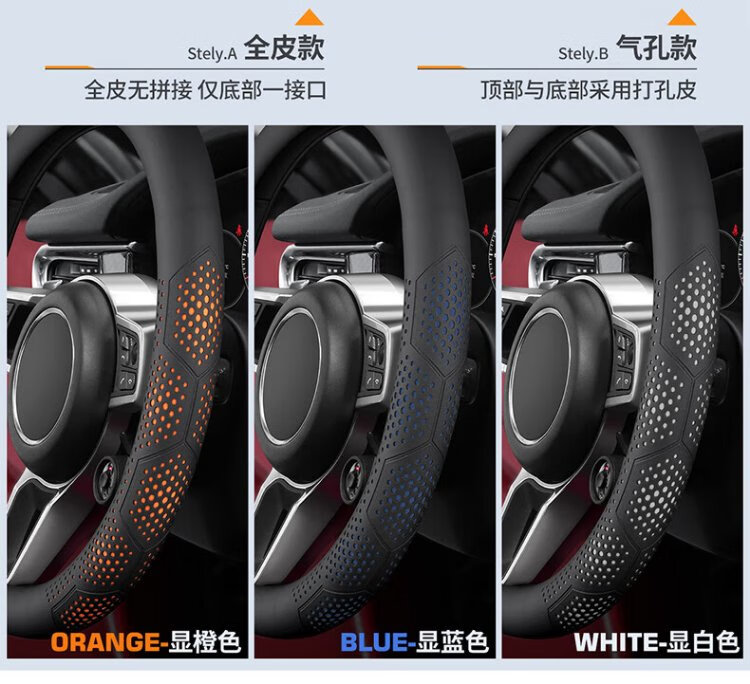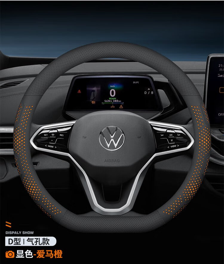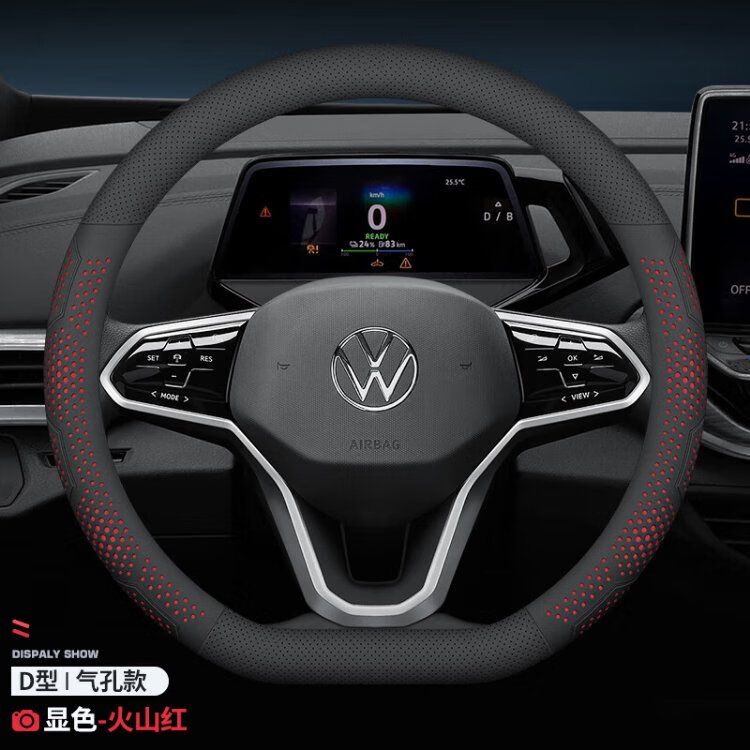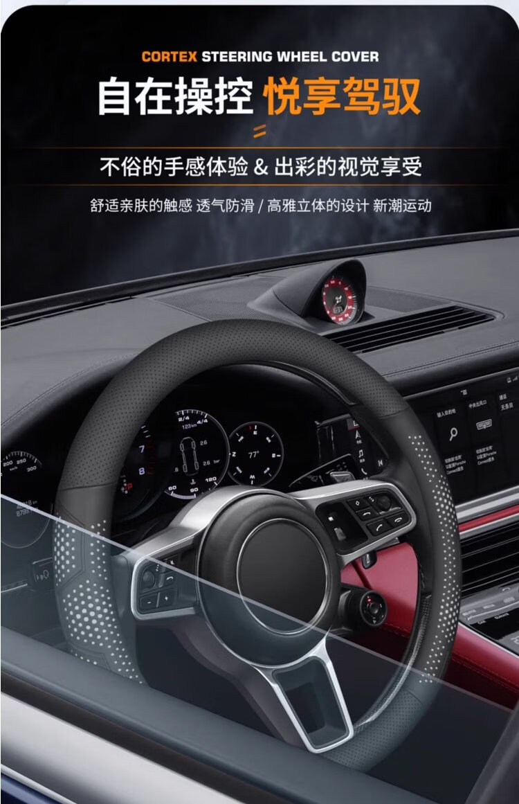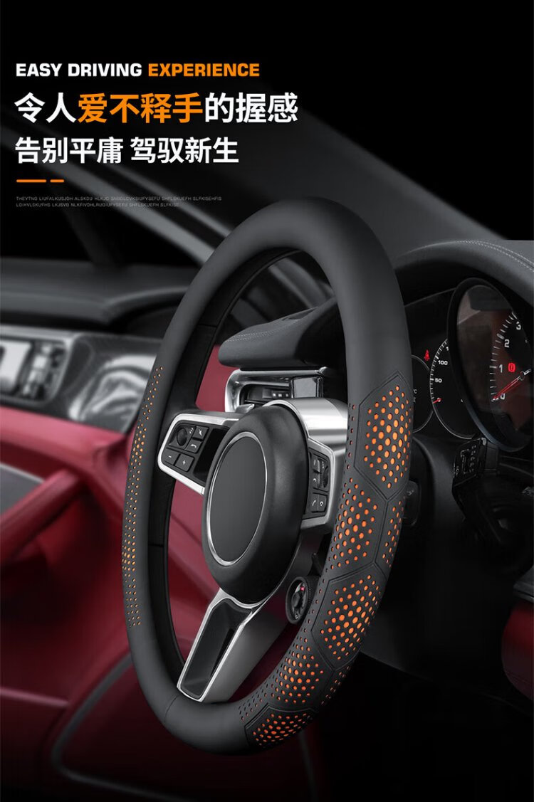 FHAO2025 car steering wheel cover, non-slip, sweat-absorbent, ultra-thin round D-type handle cover, perforated and breathable, suitable for all seasons