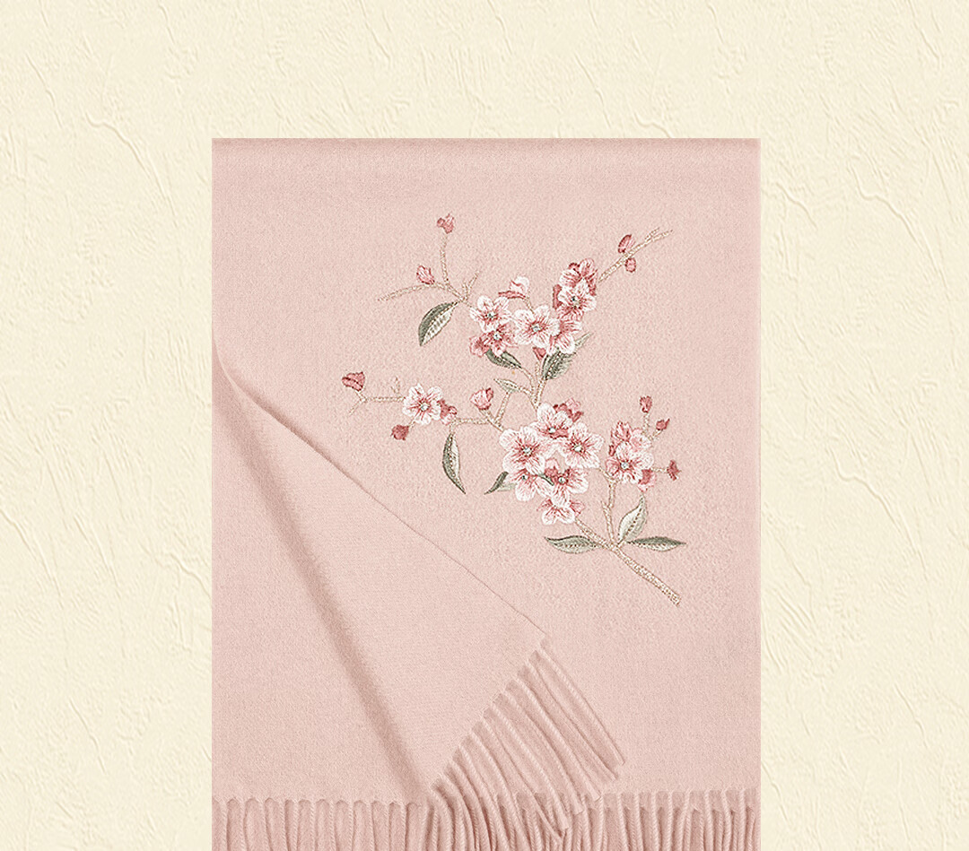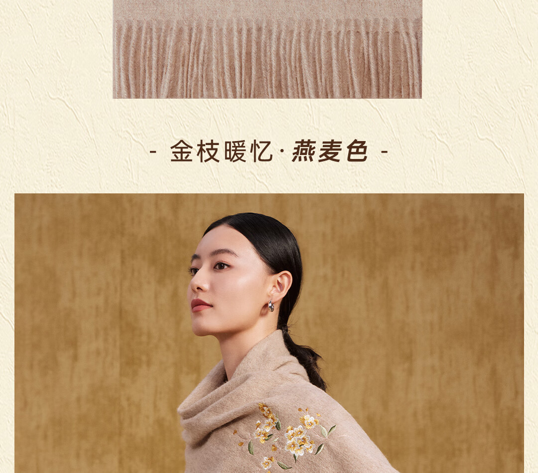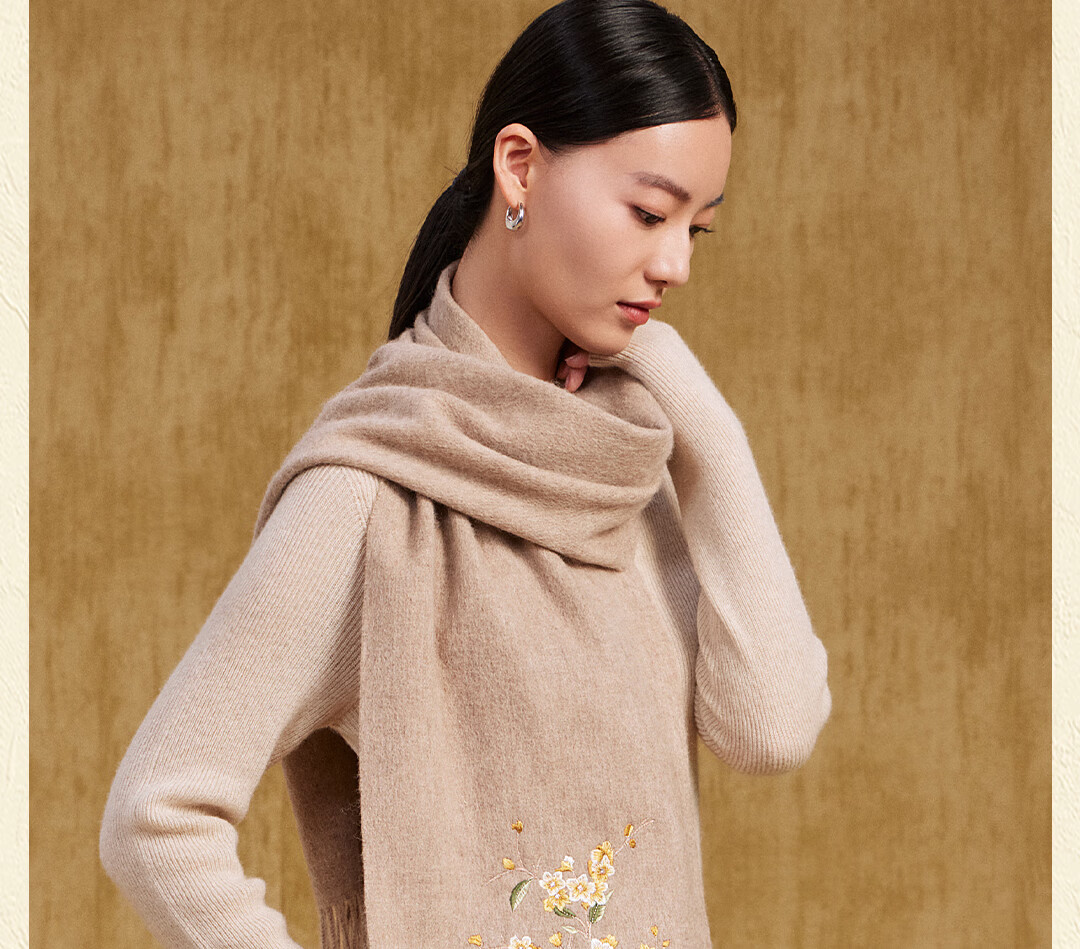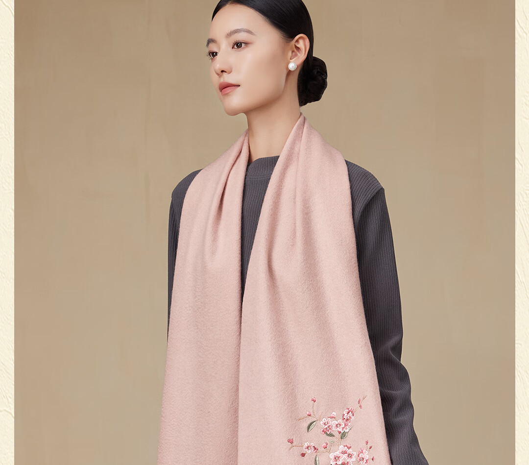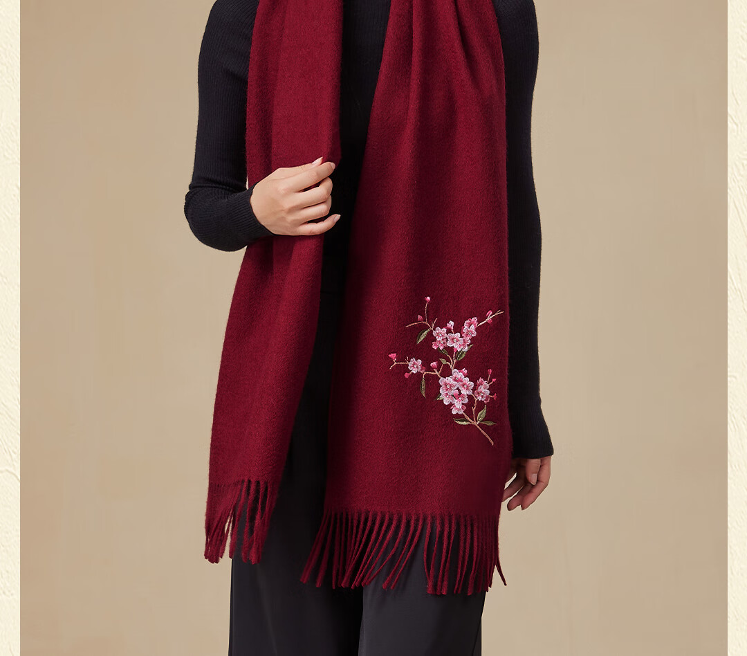 Shanghai Story Golden Branch Warm Embroidery 100% Wool Scarf as Birthday Gift for Elder Mothers Women’s Autumn and Winter New Shawl and Scarf