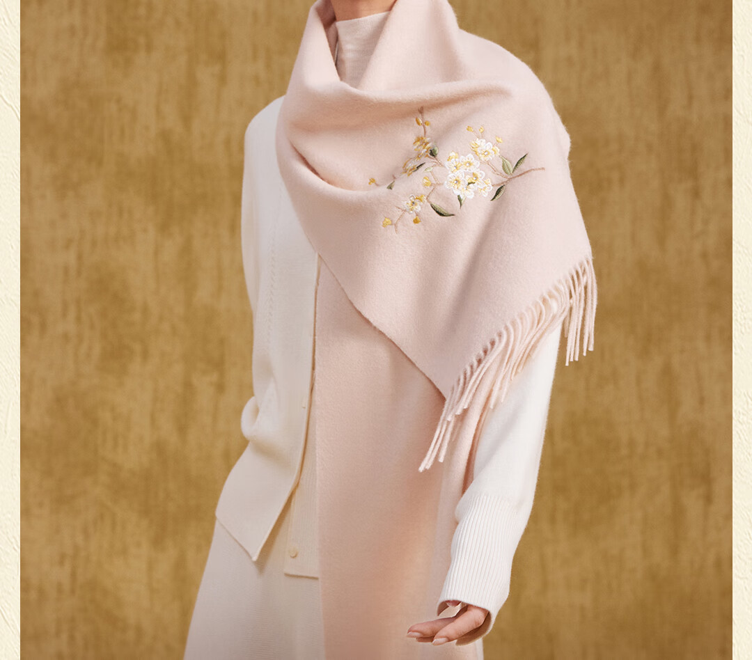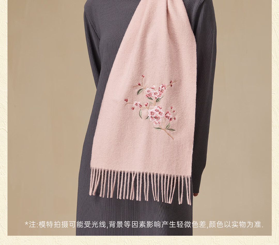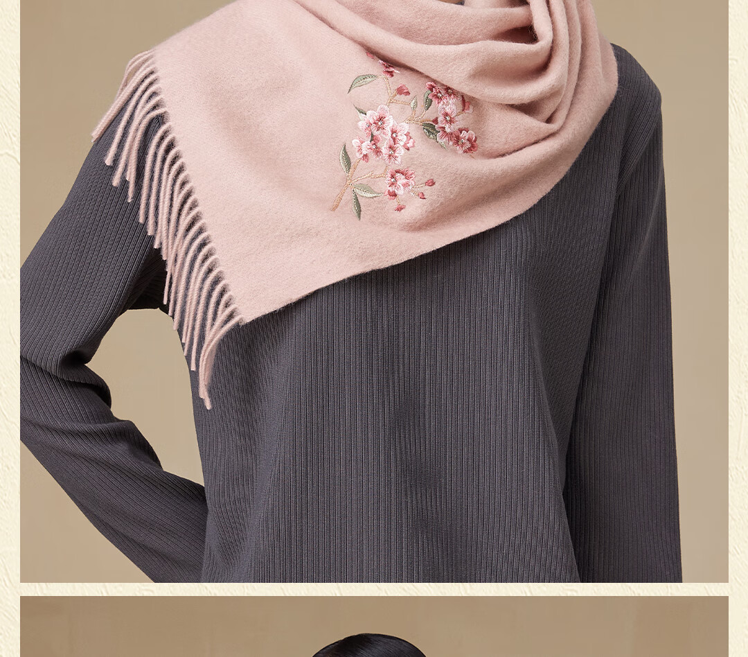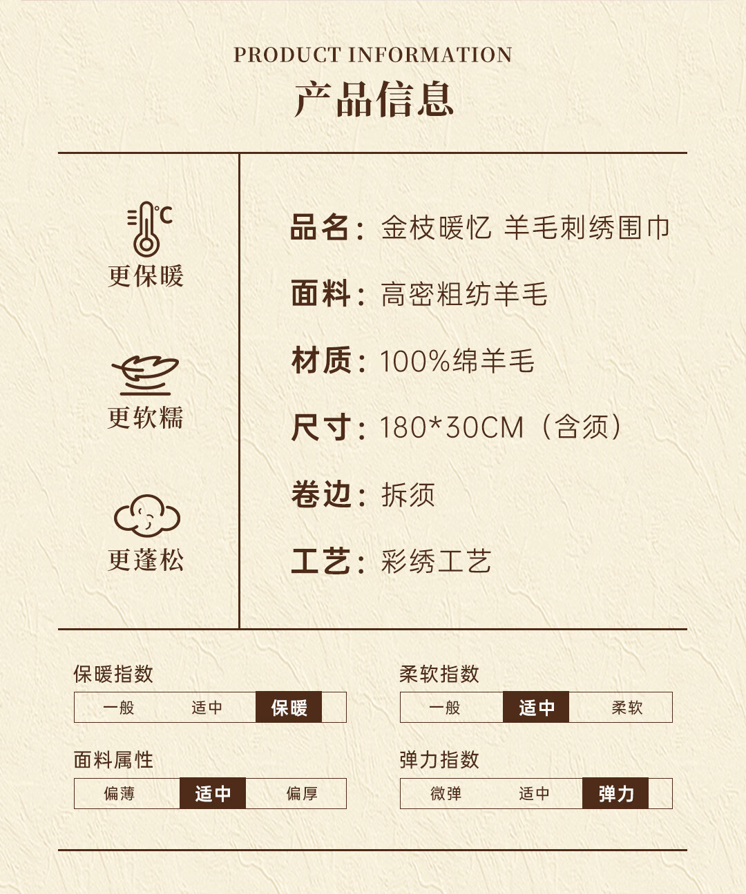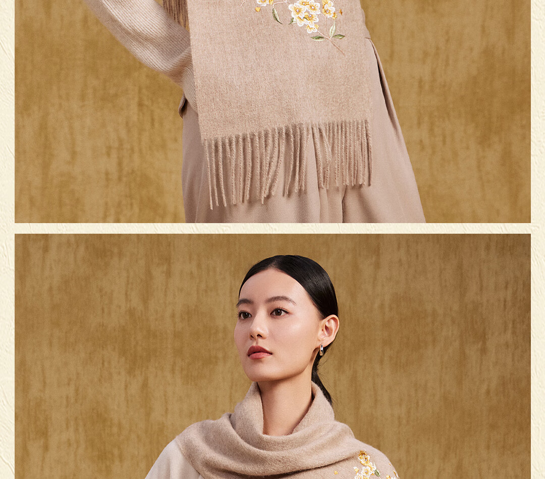 Shanghai Story Golden Branch Warm Embroidery 100% Wool Scarf as Birthday Gift for Elder Mothers Women’s Autumn and Winter New Shawl and Scarf