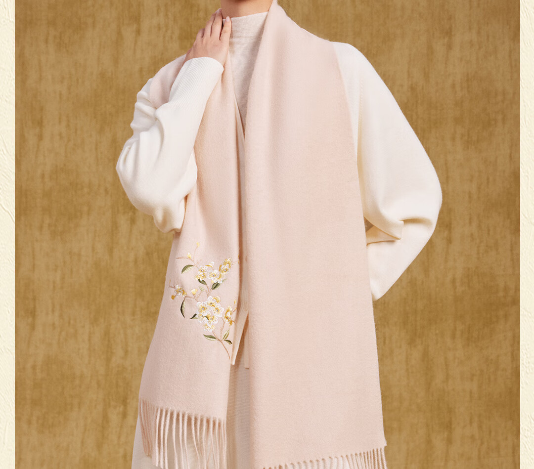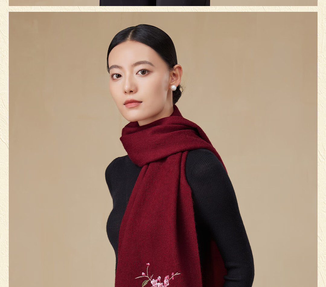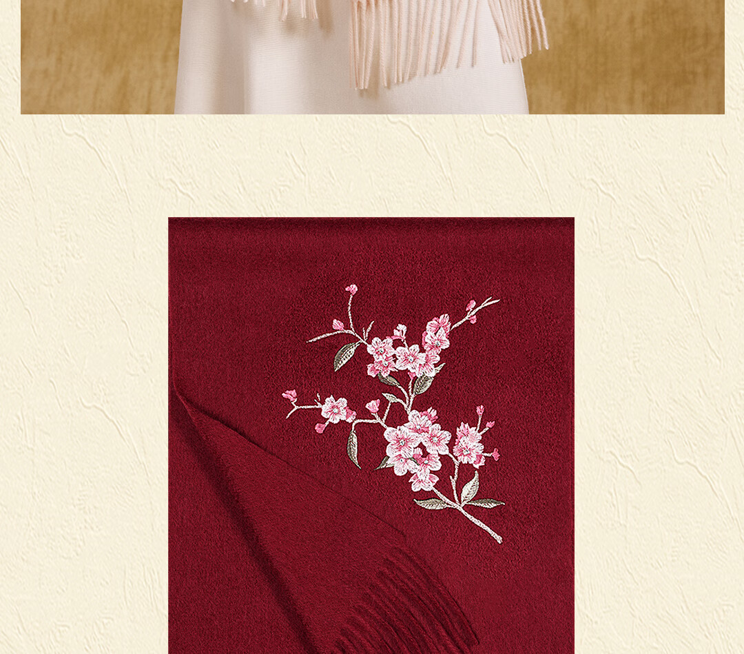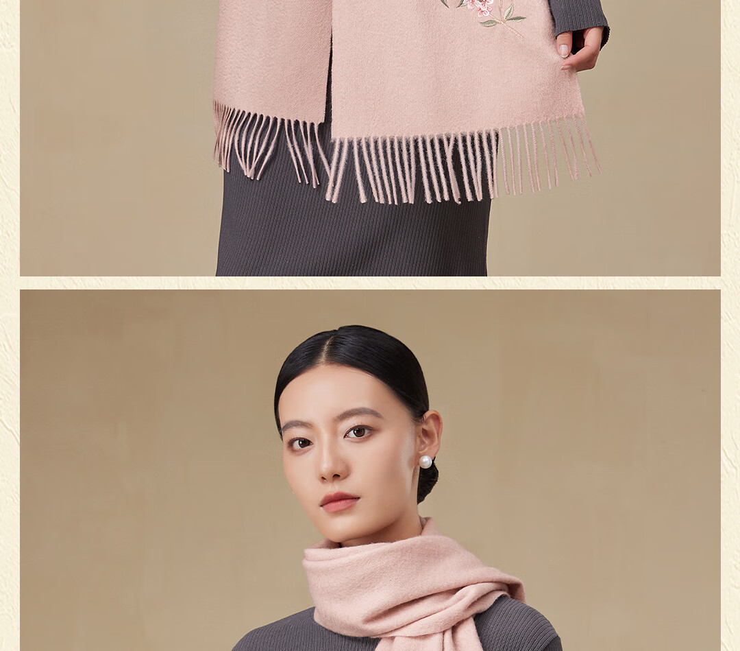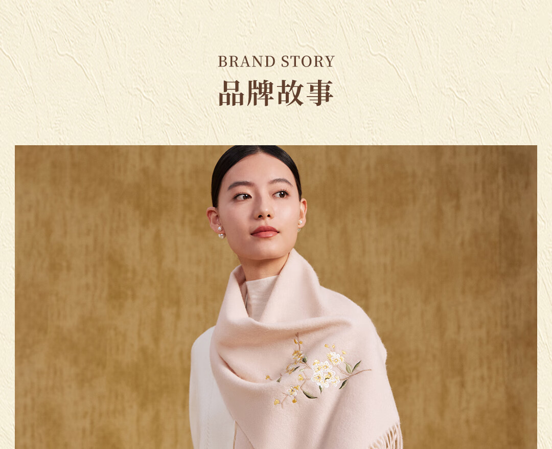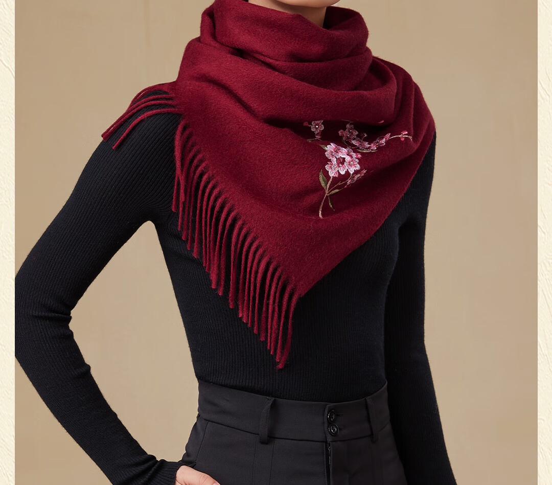 Shanghai Story Golden Branch Warm Embroidery 100% Wool Scarf as Birthday Gift for Elder Mothers Women’s Autumn and Winter New Shawl and Scarf