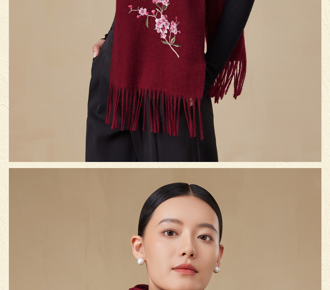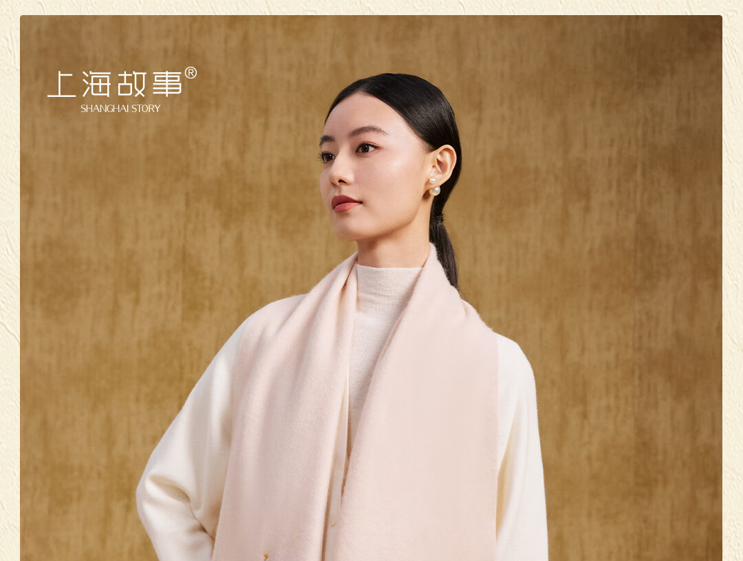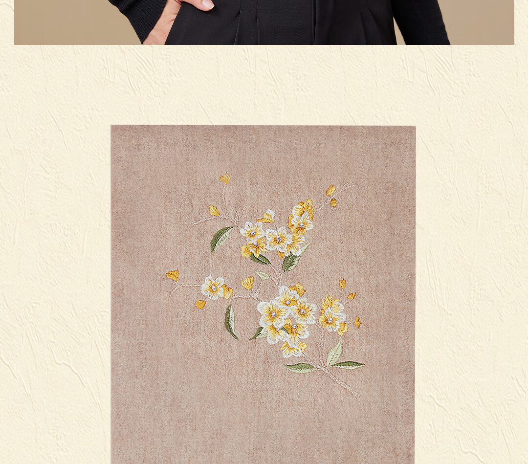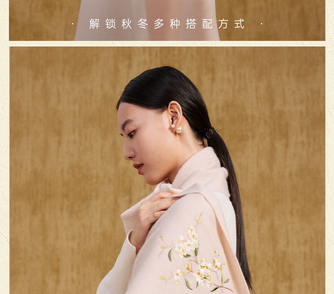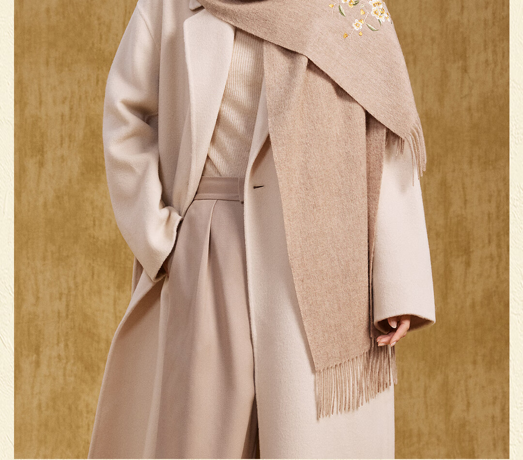Shanghai Story Golden Branch Warm Embroidery 100% Wool Scarf as Birthday Gift for Elder Mothers Women’s Autumn and Winter New Shawl and Scarf
