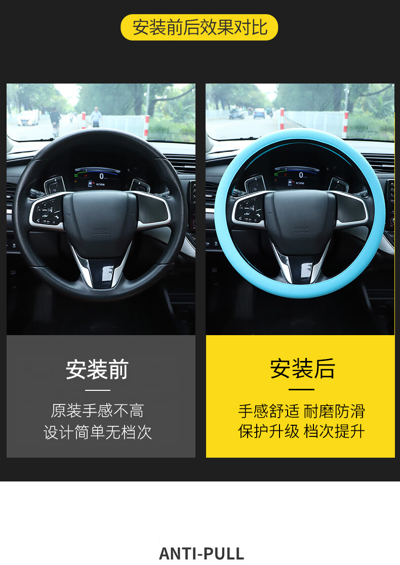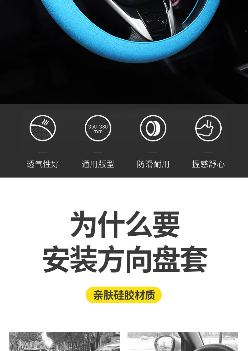 Leledi Automotive Ultra-Thin Steering Wheel Cover Anti-Slip Silicone Universal Handlebar Cover Men's and Women's Soft Sun Protection Cover Black