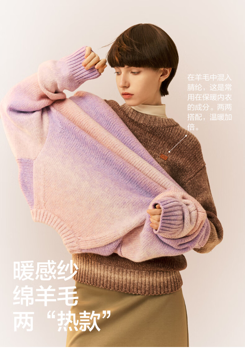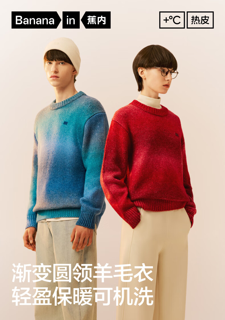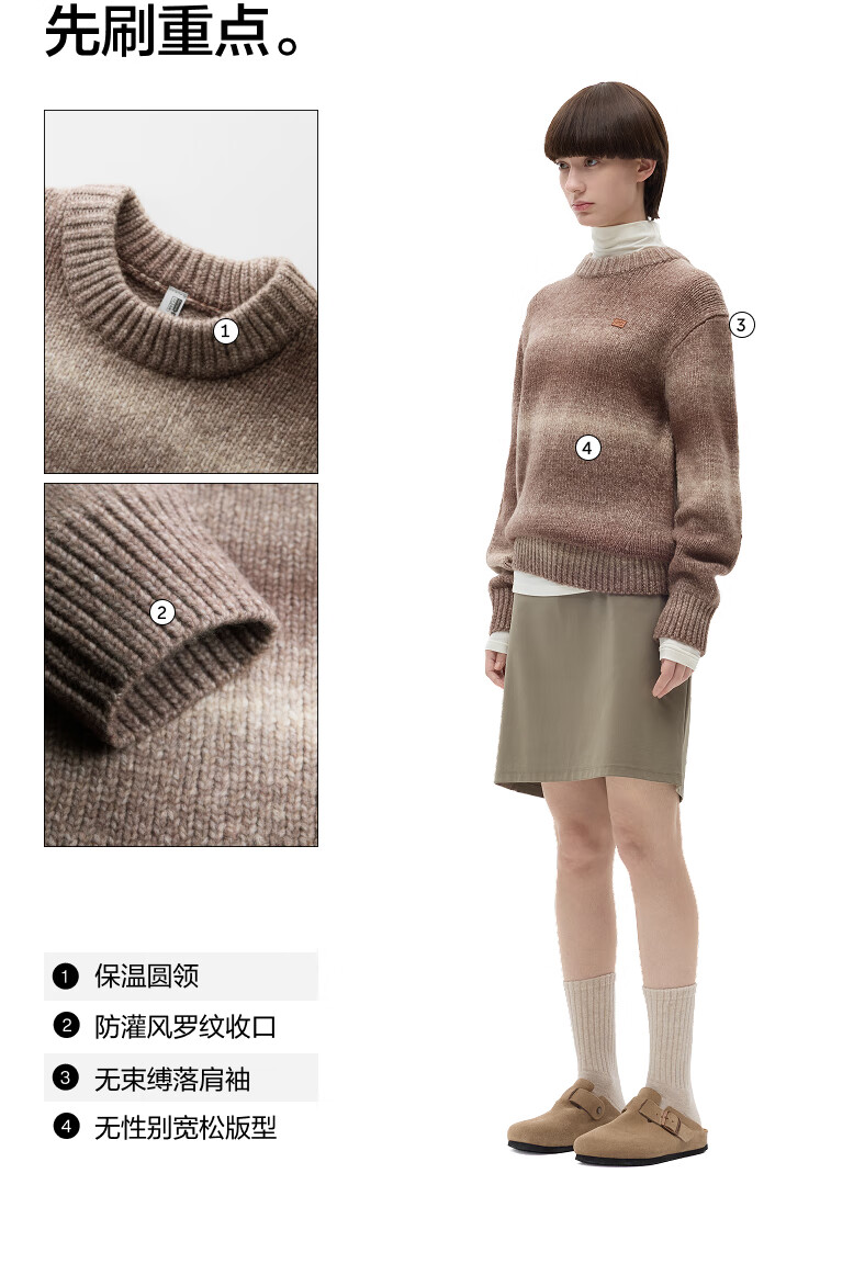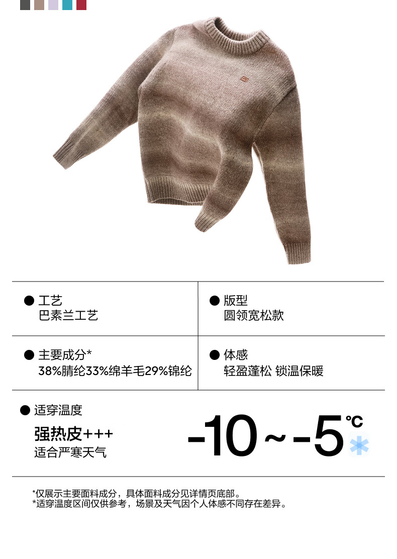 Jiao Nei Repi 503+++ same style temperature-locking gradient round neck pullover sweater for men and women, warm base autumn and winter long-sleeved pullover