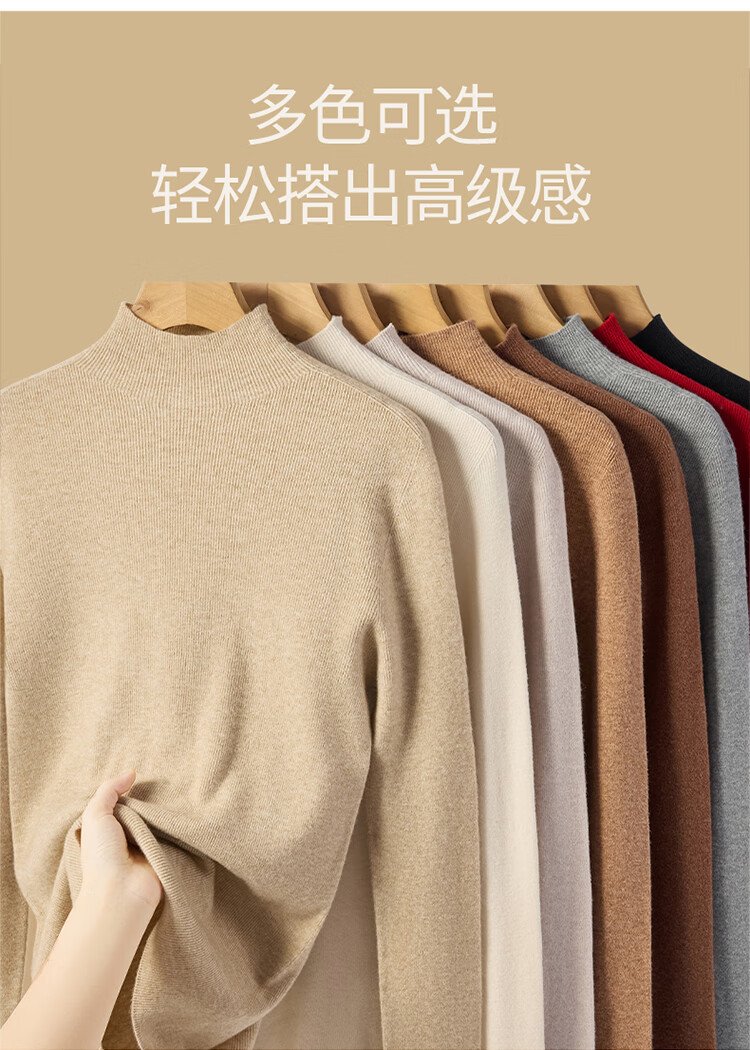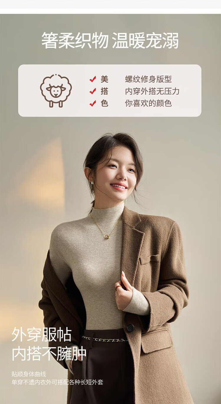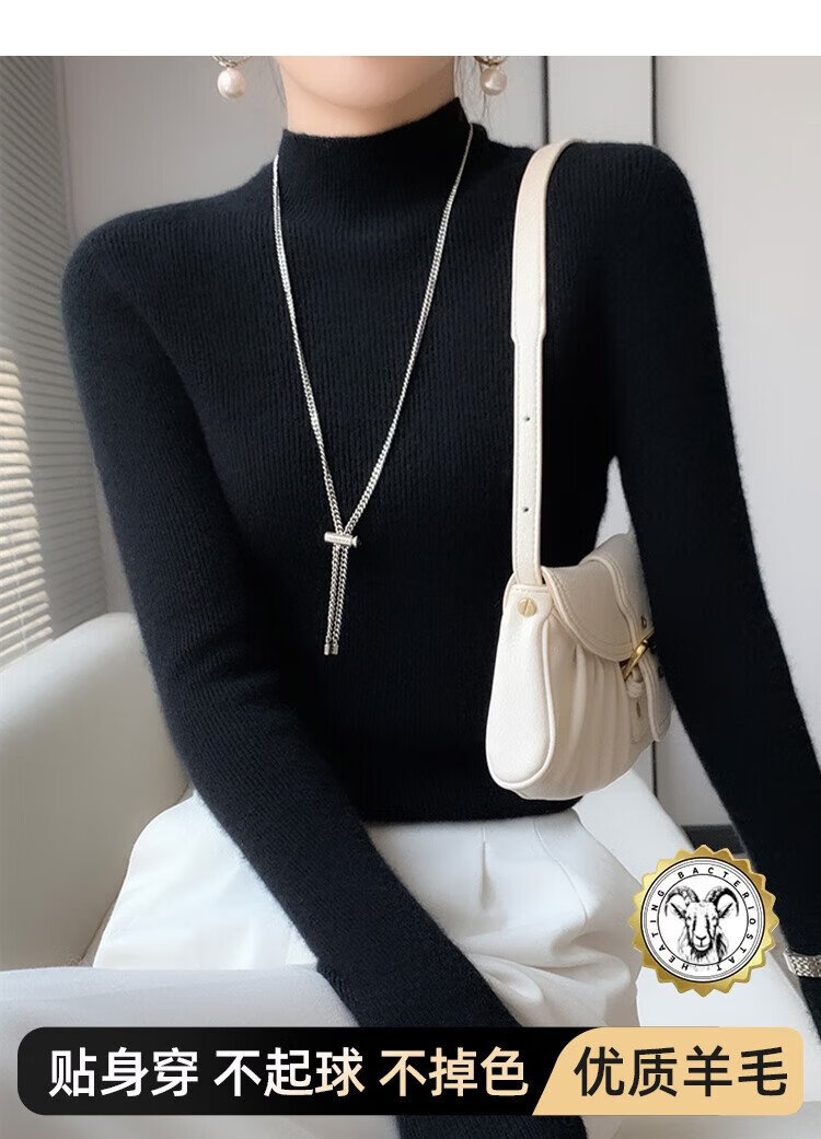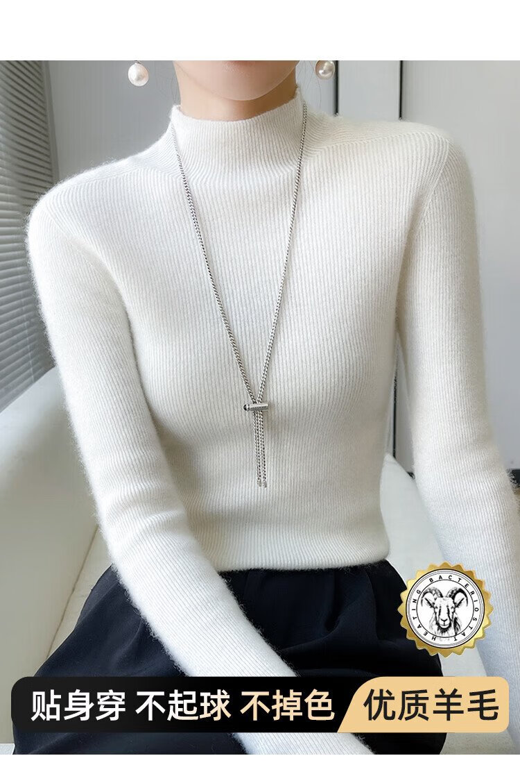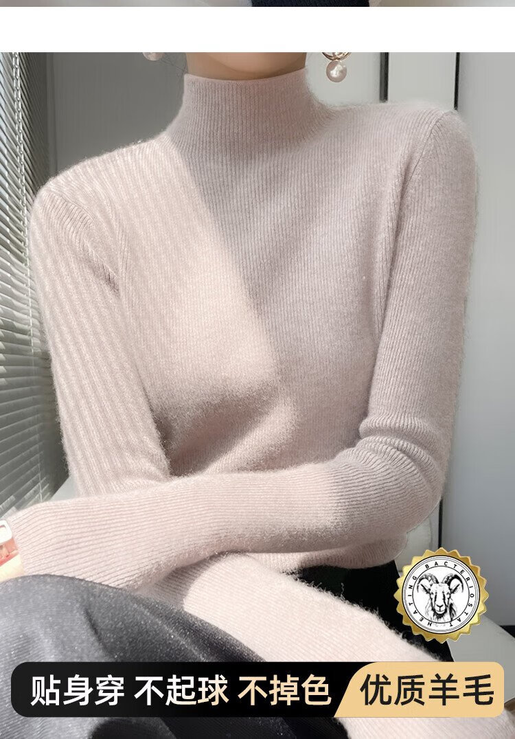 Urban Beauty Yunrou Wool Sweater Women's Half Turtle Collar Bottoming Shirt 2025 Autumn and Winter New Style Slim Wool Top