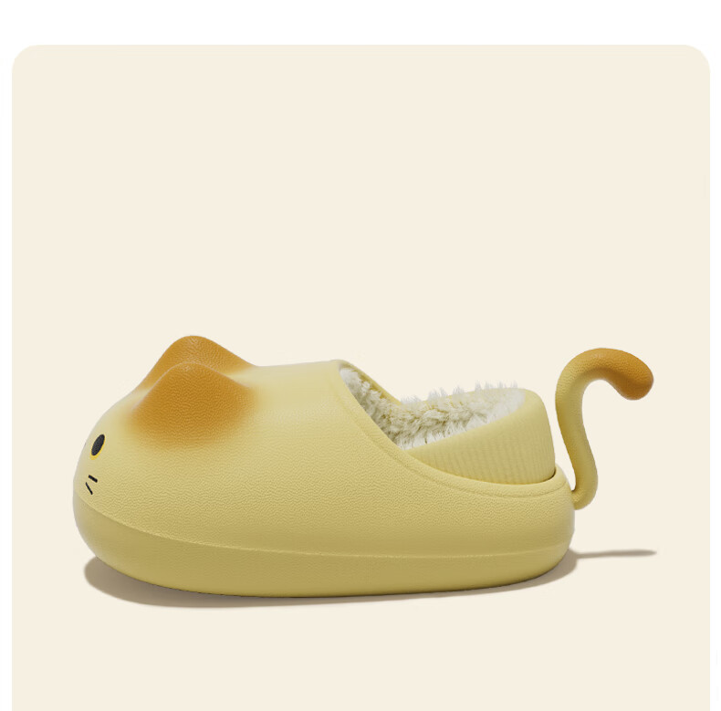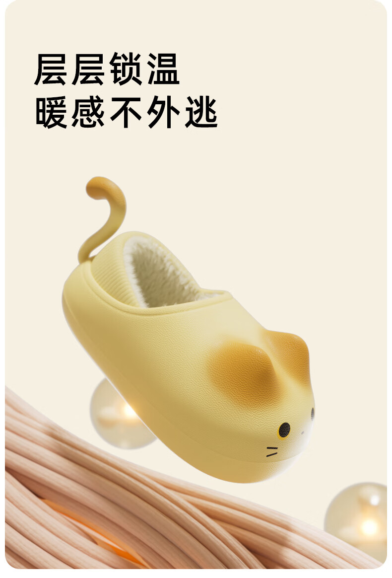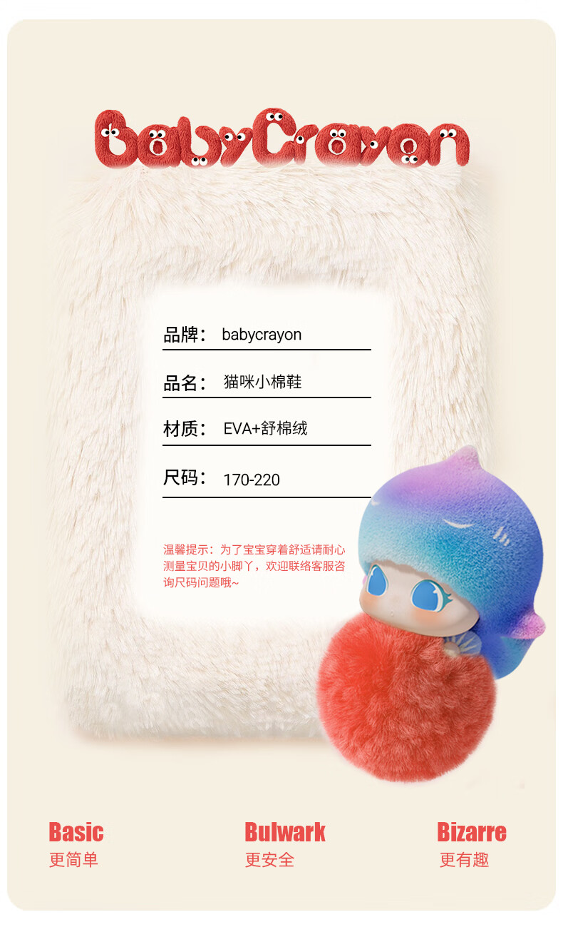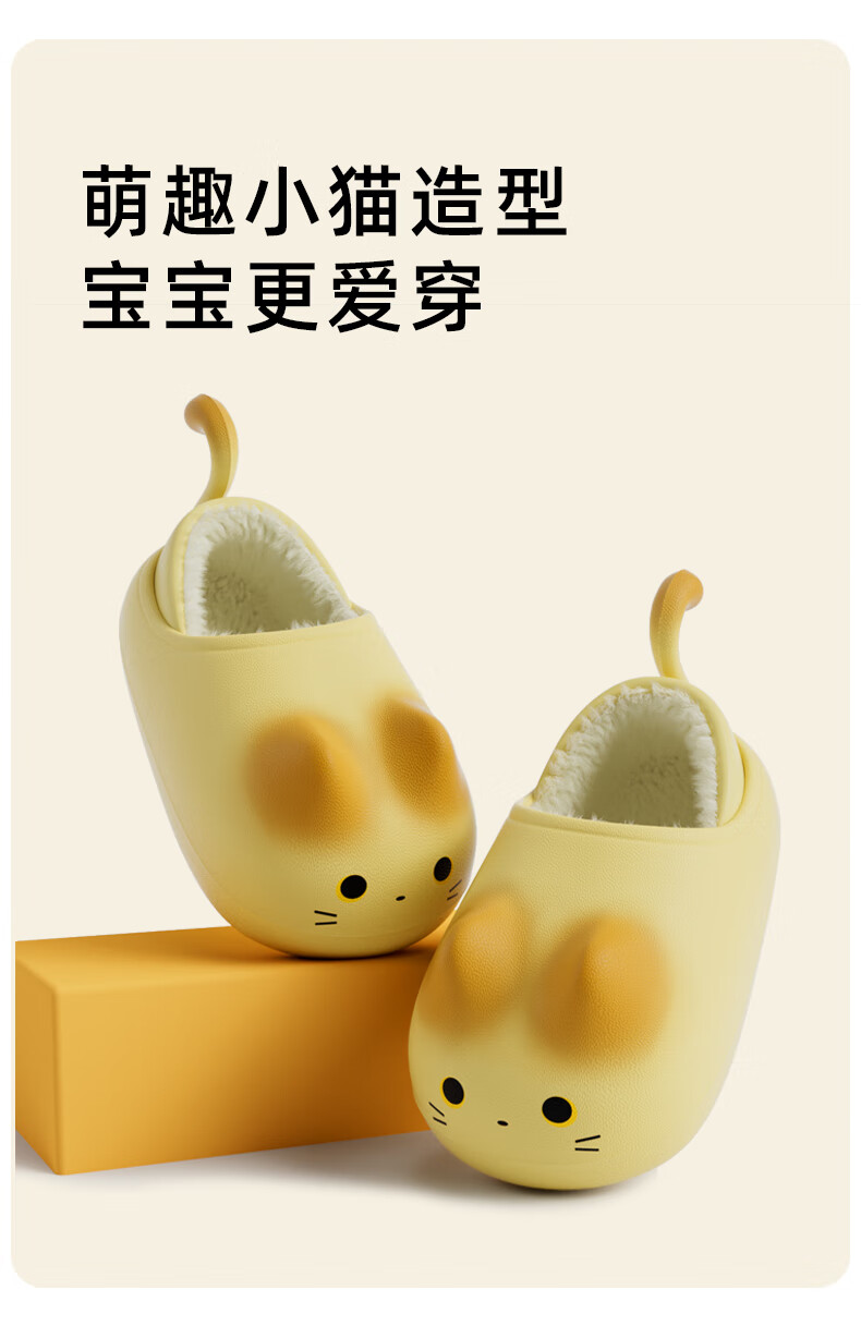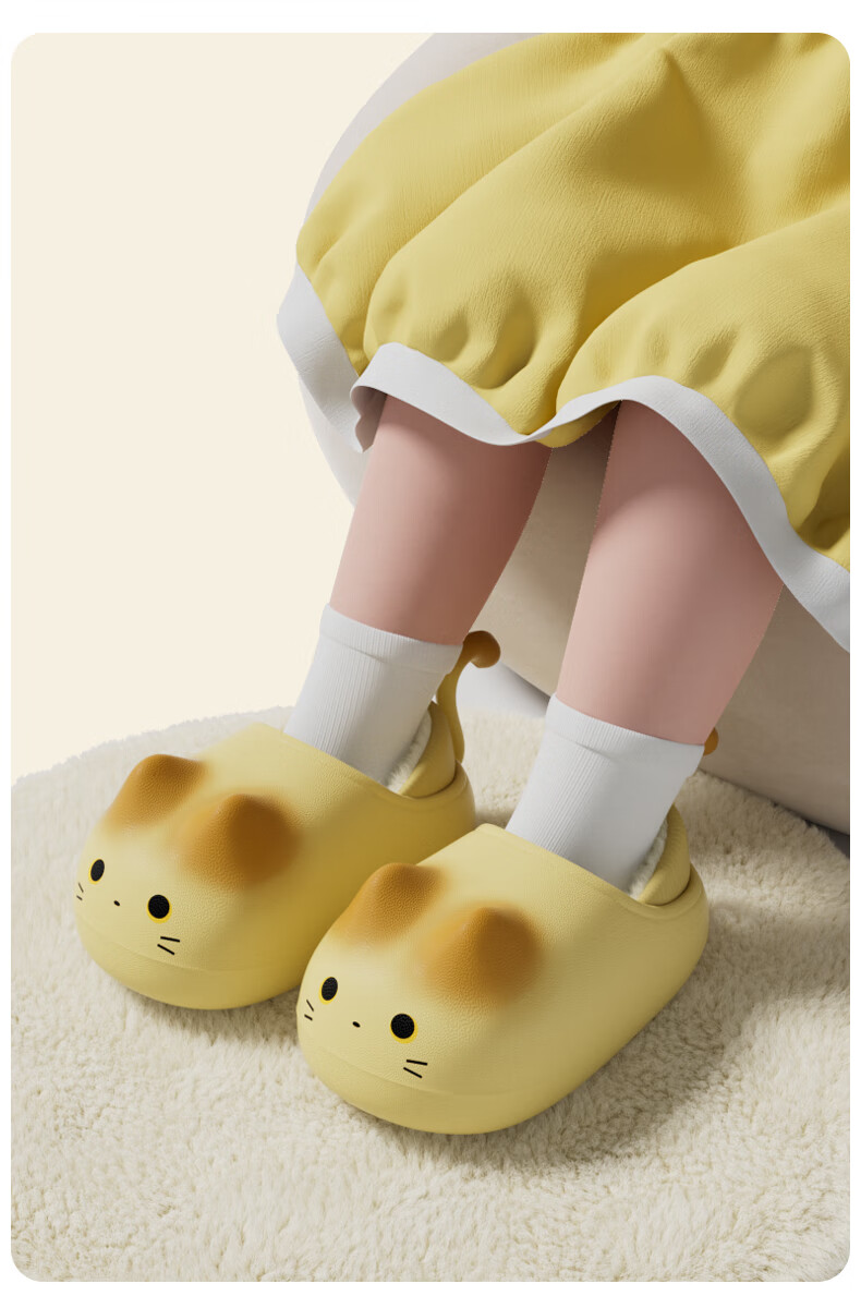 Babycrayon cute cat children's cotton slippers autumn and winter all-inclusive plus velvet cotton shoes for boys and girls warm cotton slippers for outer wear