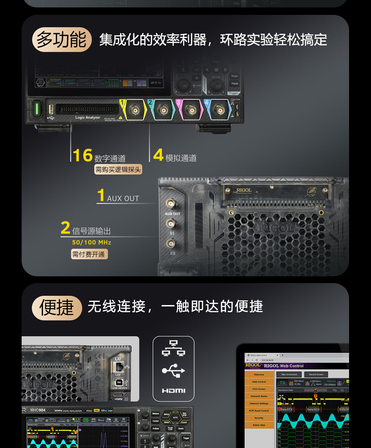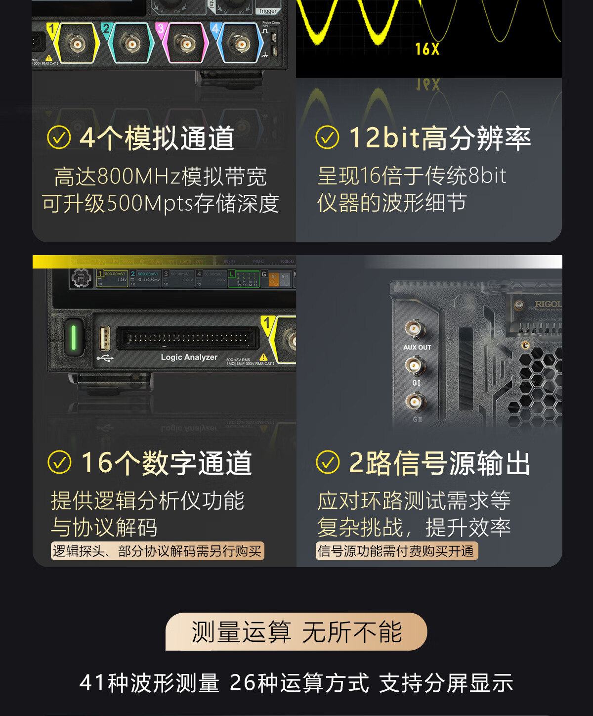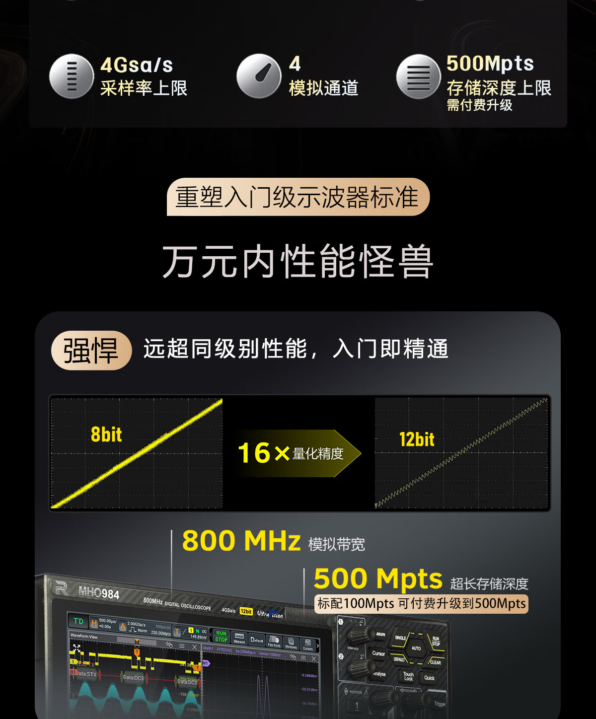 RIGOL Puyuan digital oscilloscope MHO984 bandwidth 800MHz 12bit resolution (new product launch)