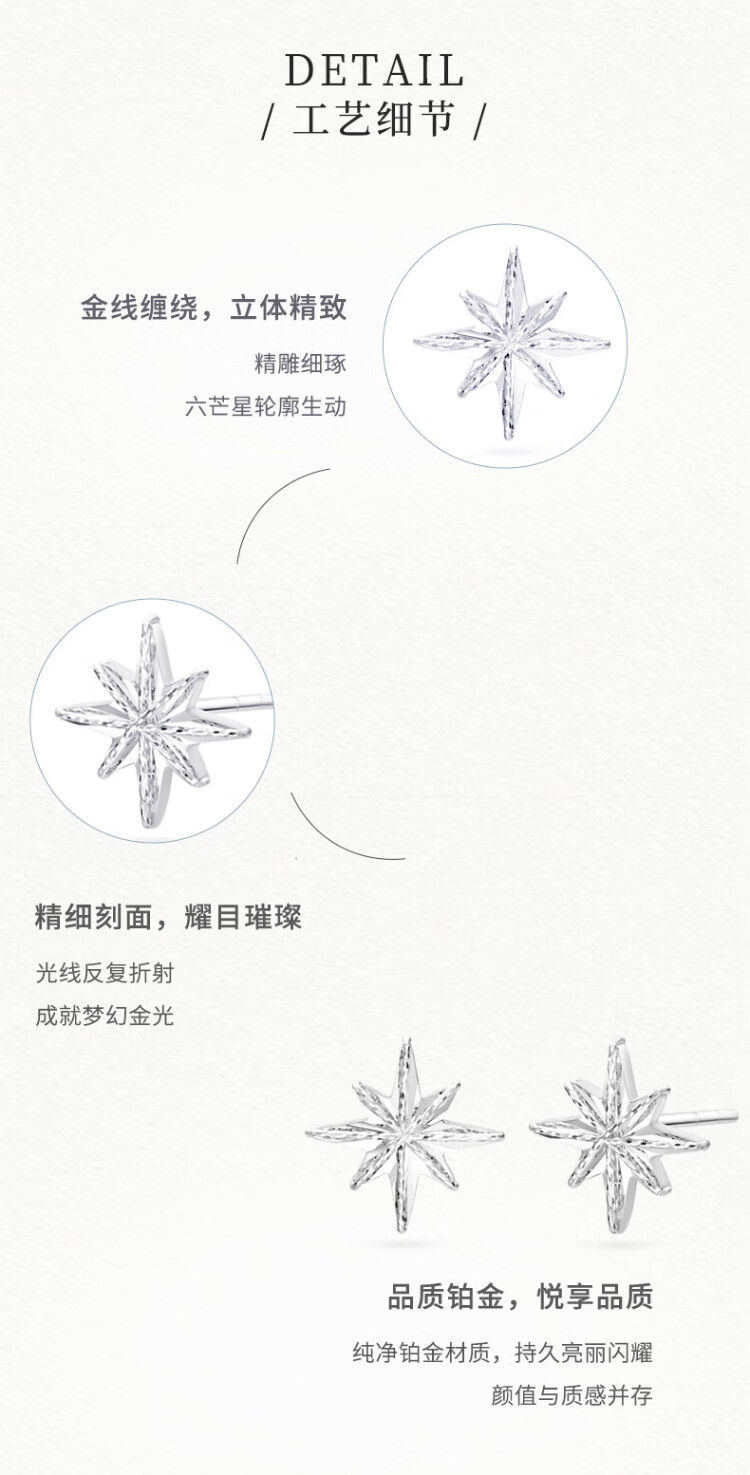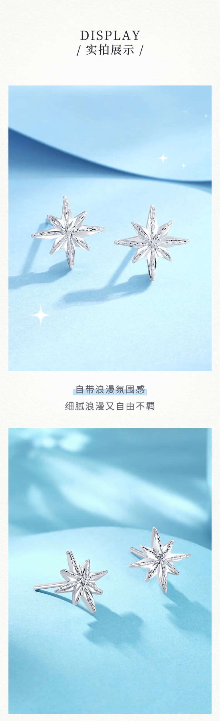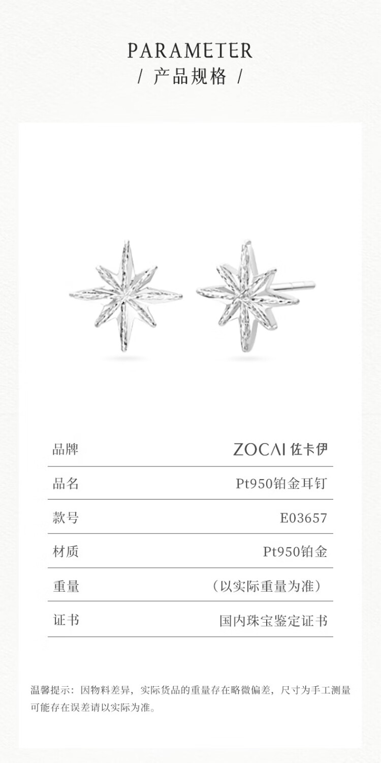 Zokai platinum earrings PT950 eight-pointed star earrings simple and versatile romantic birthday gift about 1.6g E03657