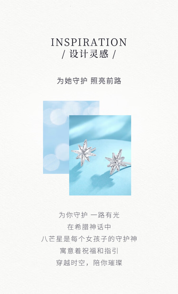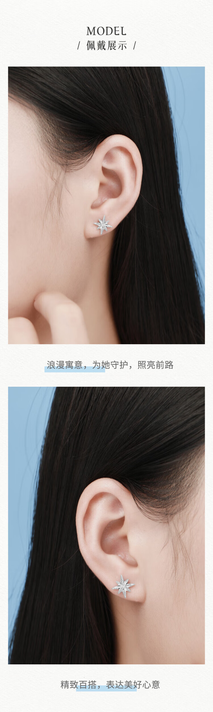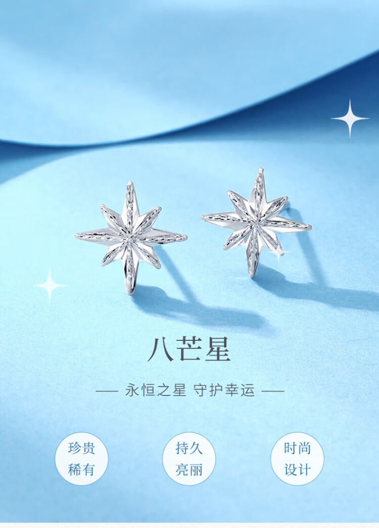 Zokai platinum earrings PT950 eight-pointed star earrings simple and versatile romantic birthday gift about 1.6g E03657