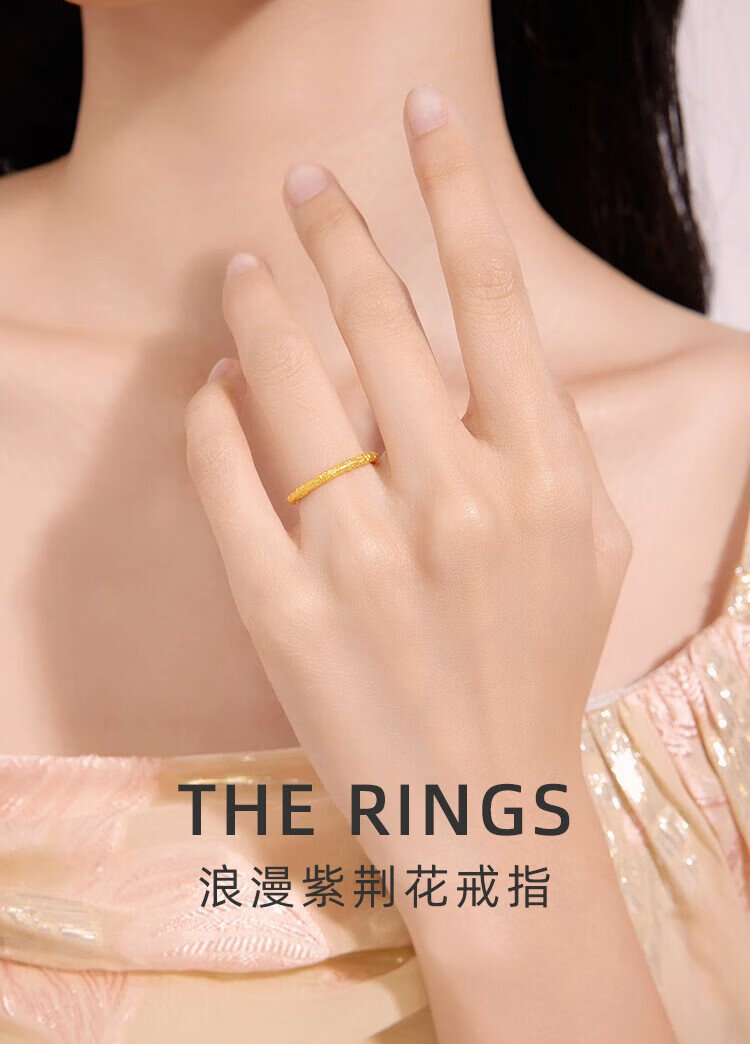 Century Yuan Romantic Bauhinia Gold Ring for Girlfriend’s Birthday Gift Ring 16# Gold Weight Approximately 0.49g