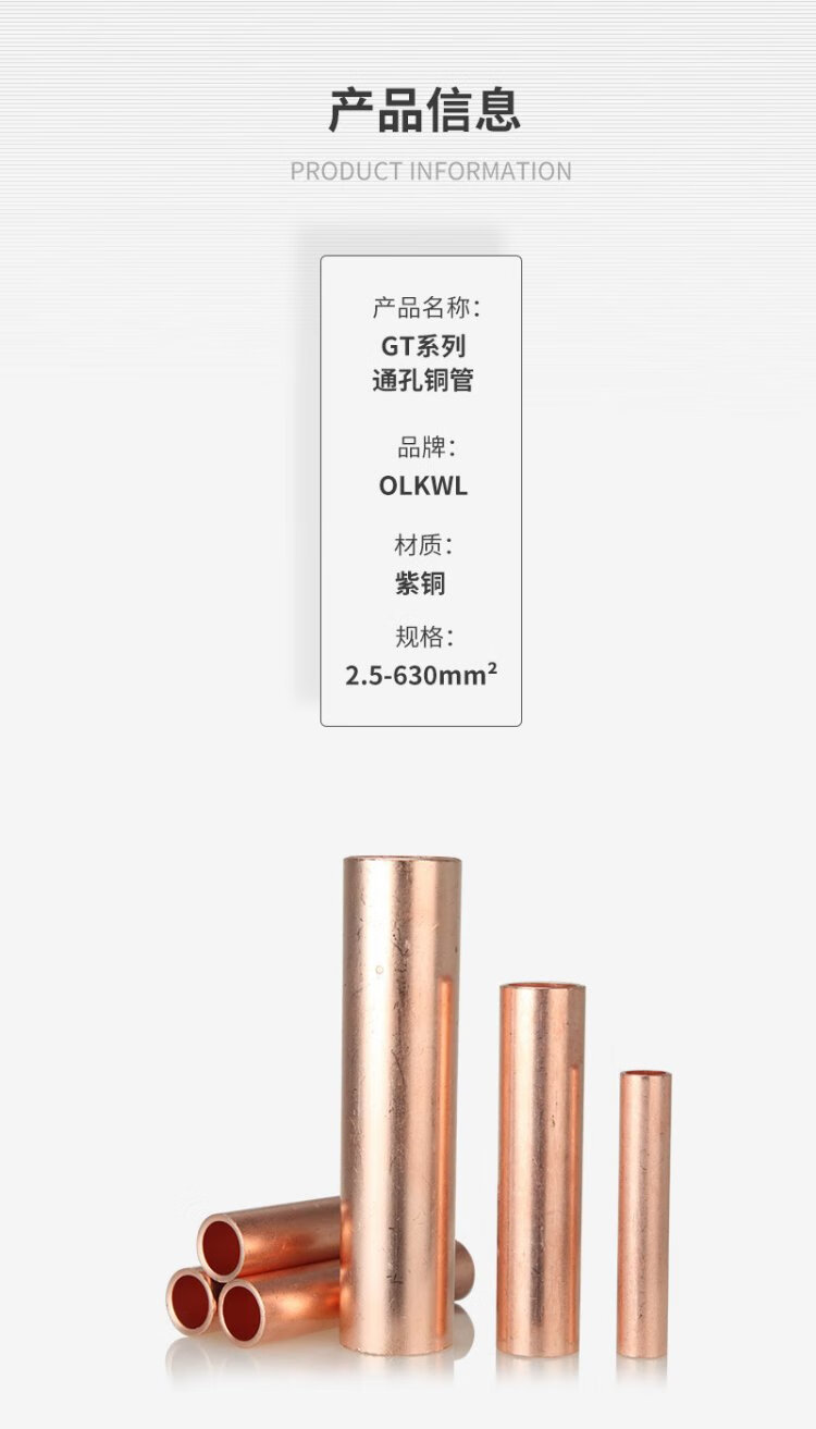 OLKWL(瓦力)铜连接管电线对接管铜直接25平方电缆中间接头并线延长紫铜管铜本色 GT-25(10只)
