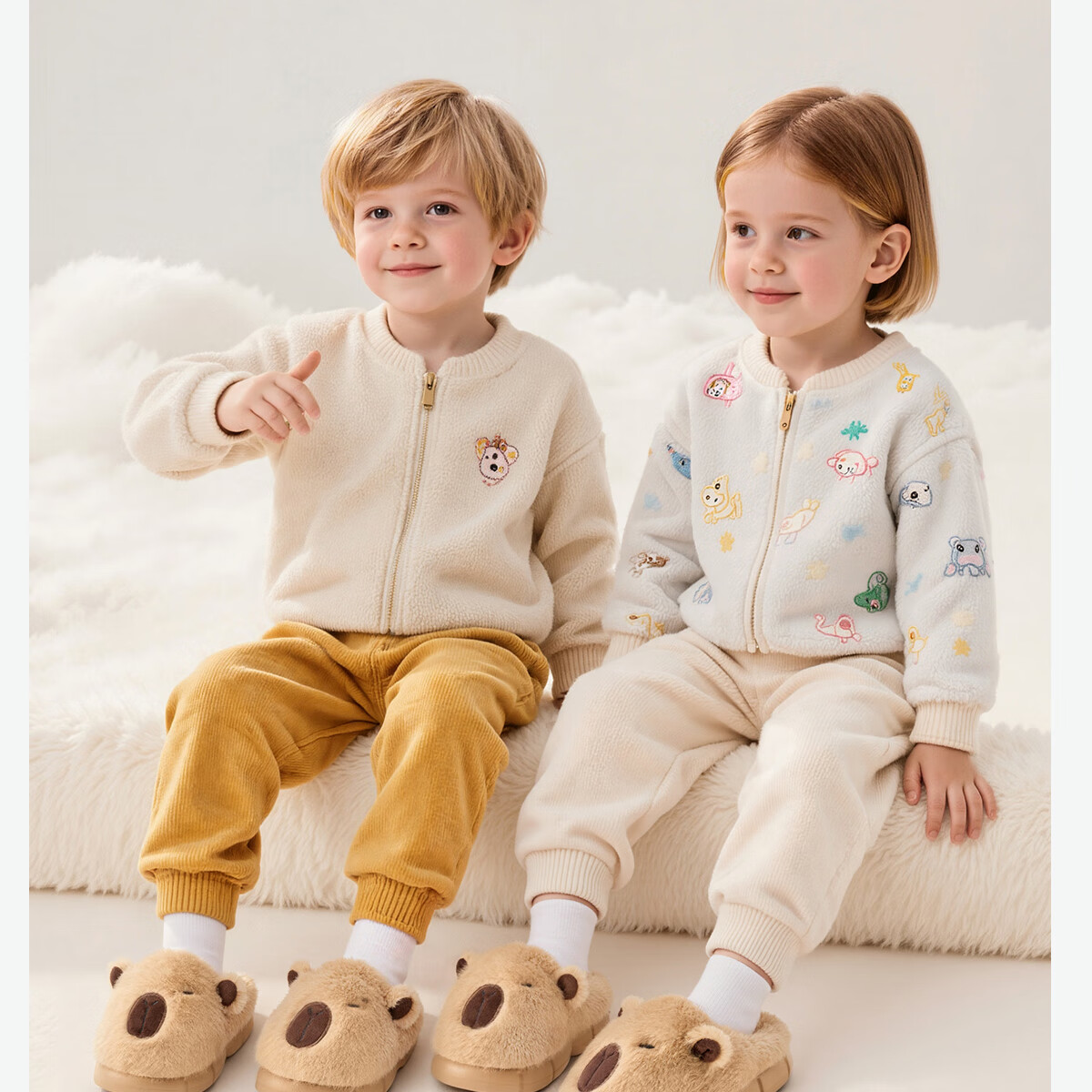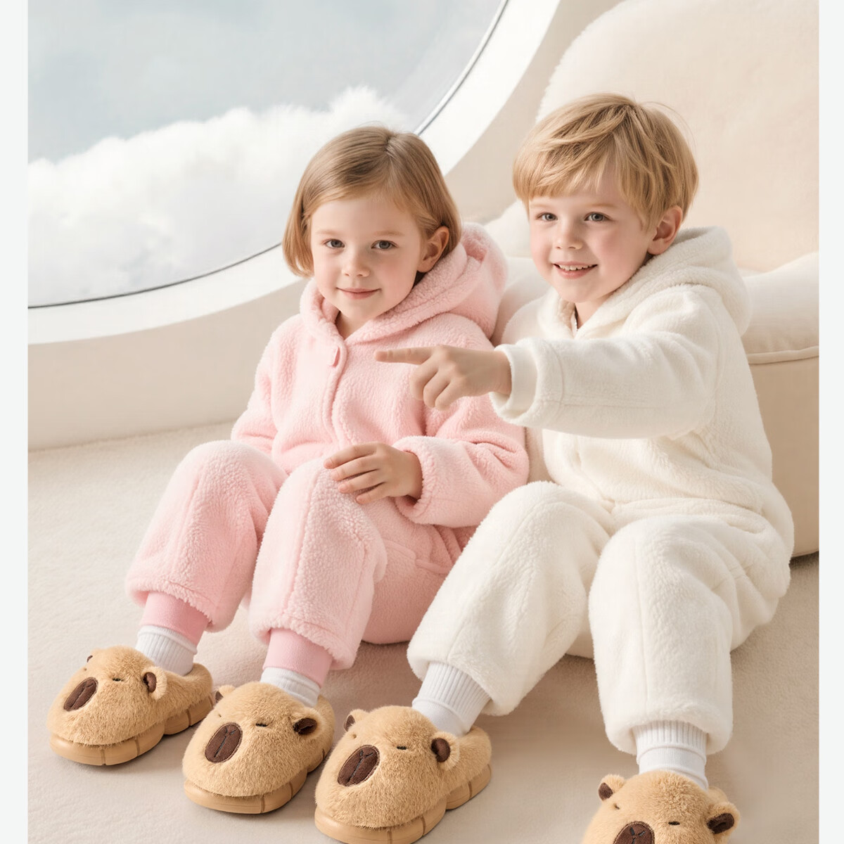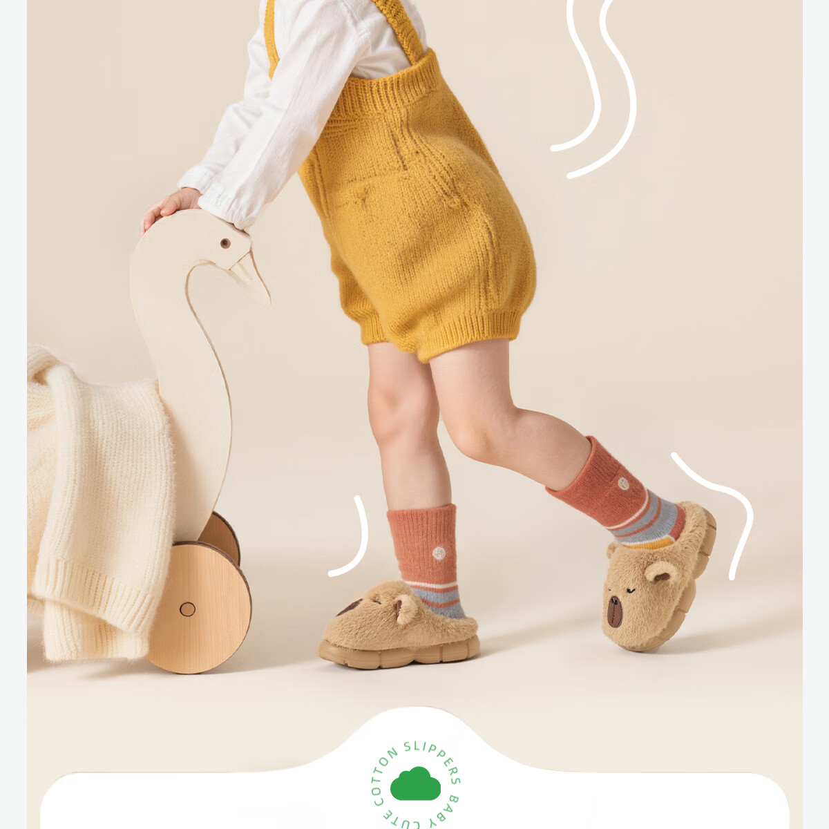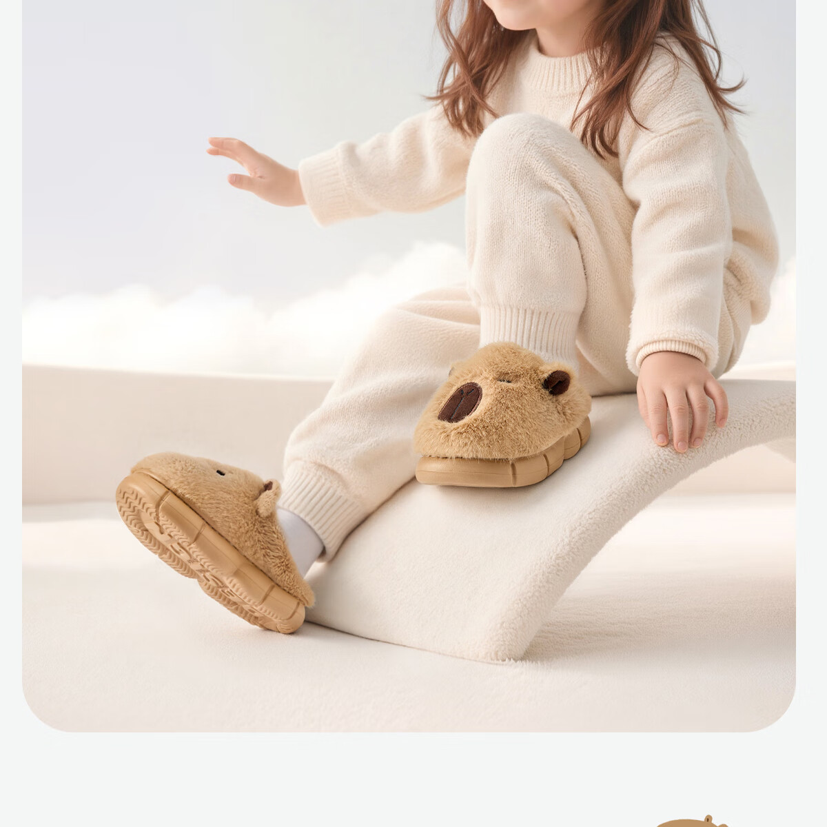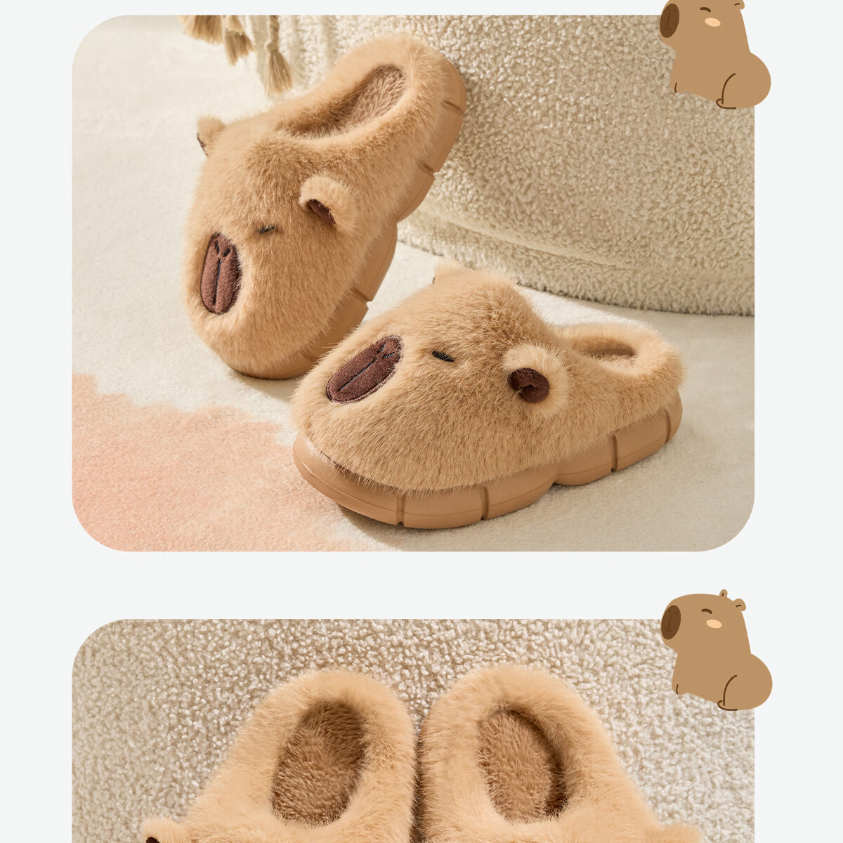Lidani (TZLDN) Capibala children's cotton slippers for girls 6-12 years old winter indoor home warm plus velvet cute slippers for boys