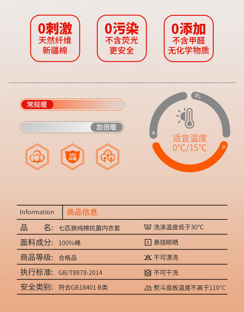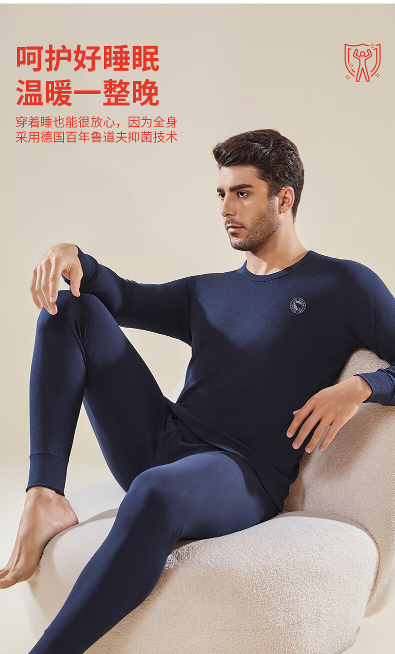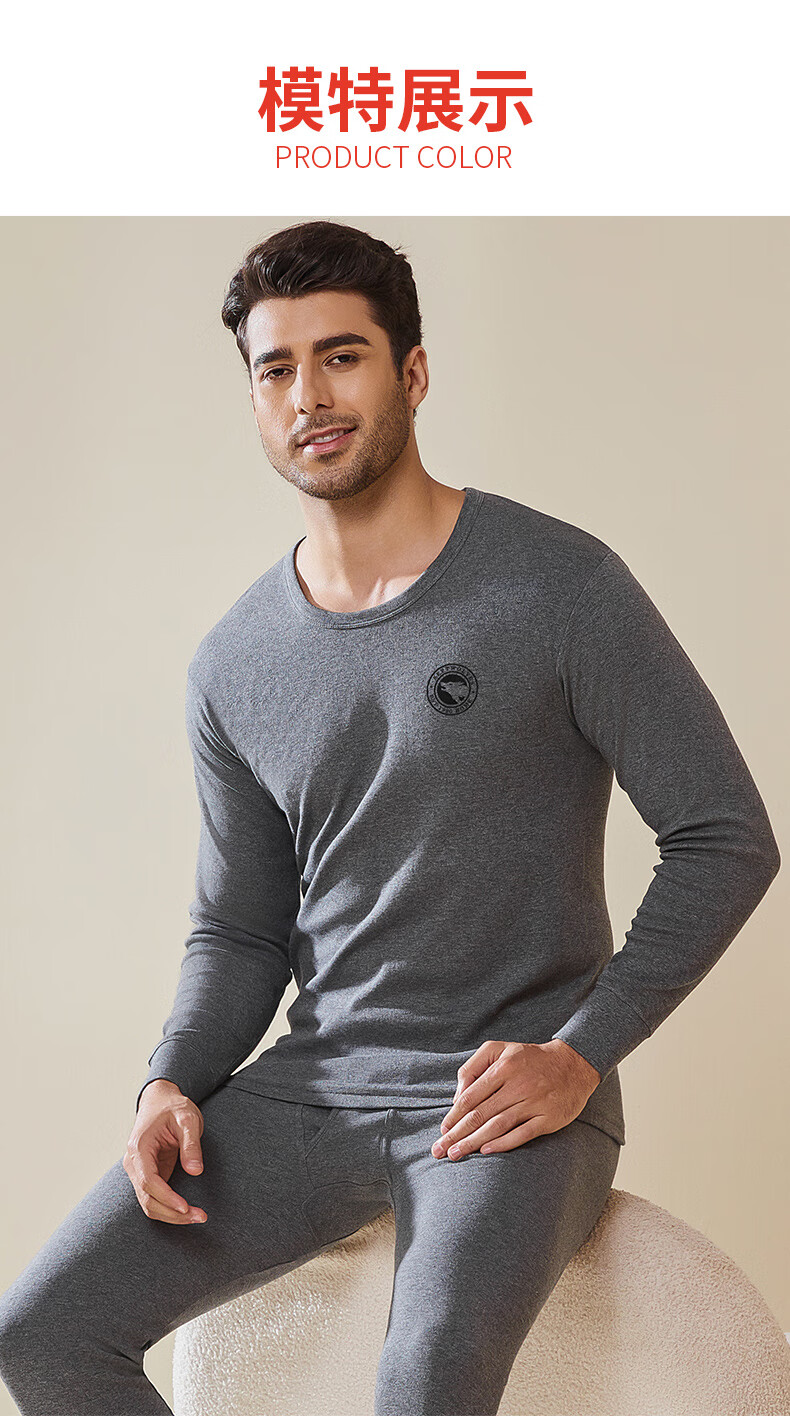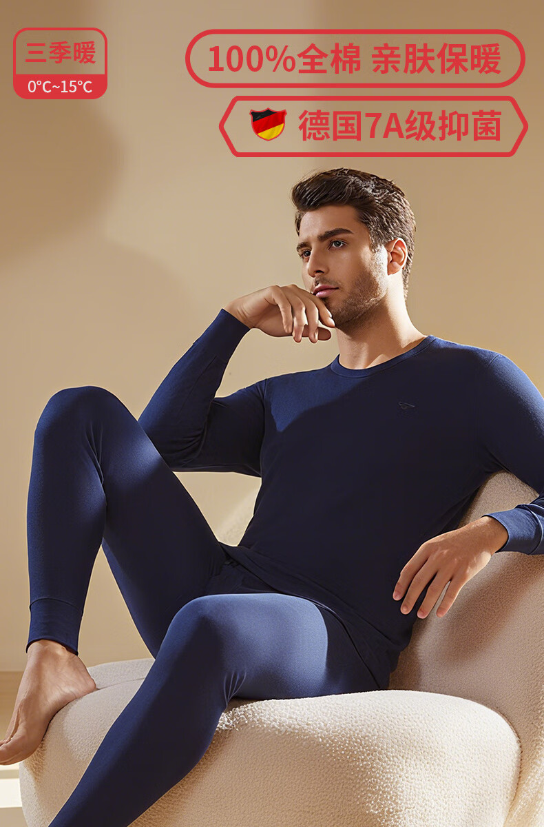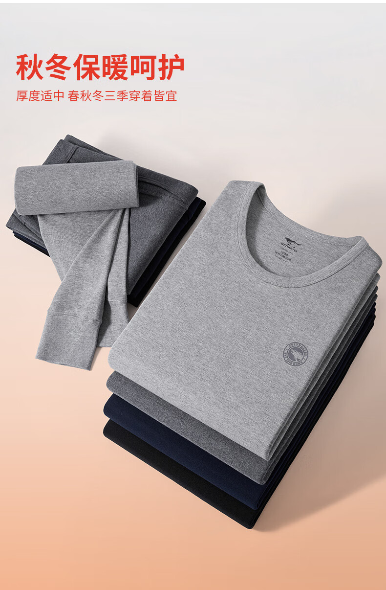 Septwolves Men's Autumn Clothes and Autumn Pants Men's Pure Cotton 100% Cotton Antibacterial Thermal Underwear Cotton Sweater Cotton Pants Warm Suit