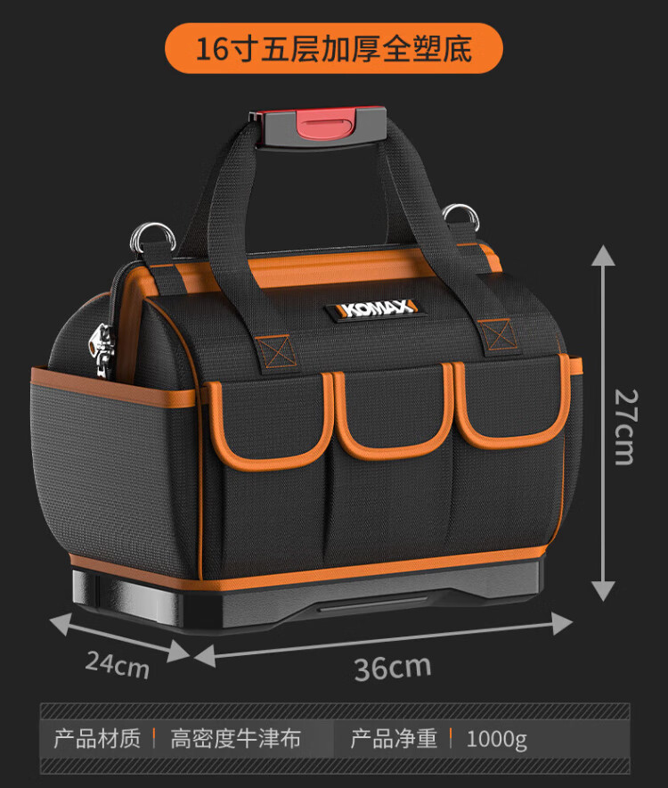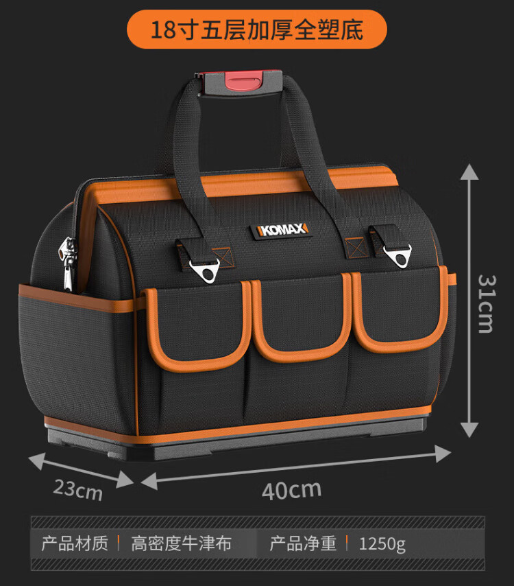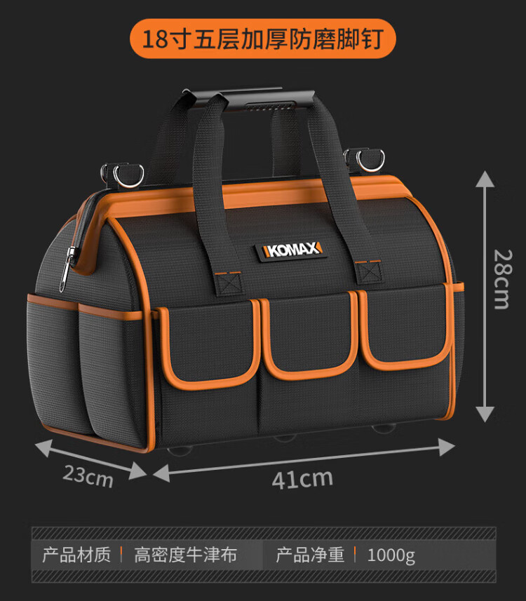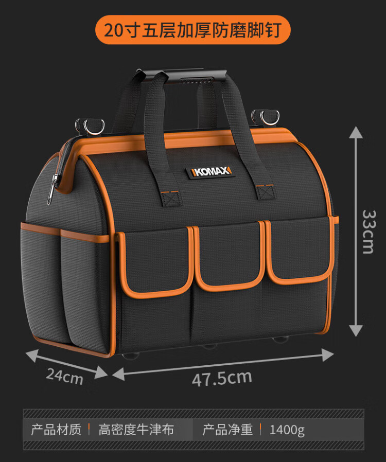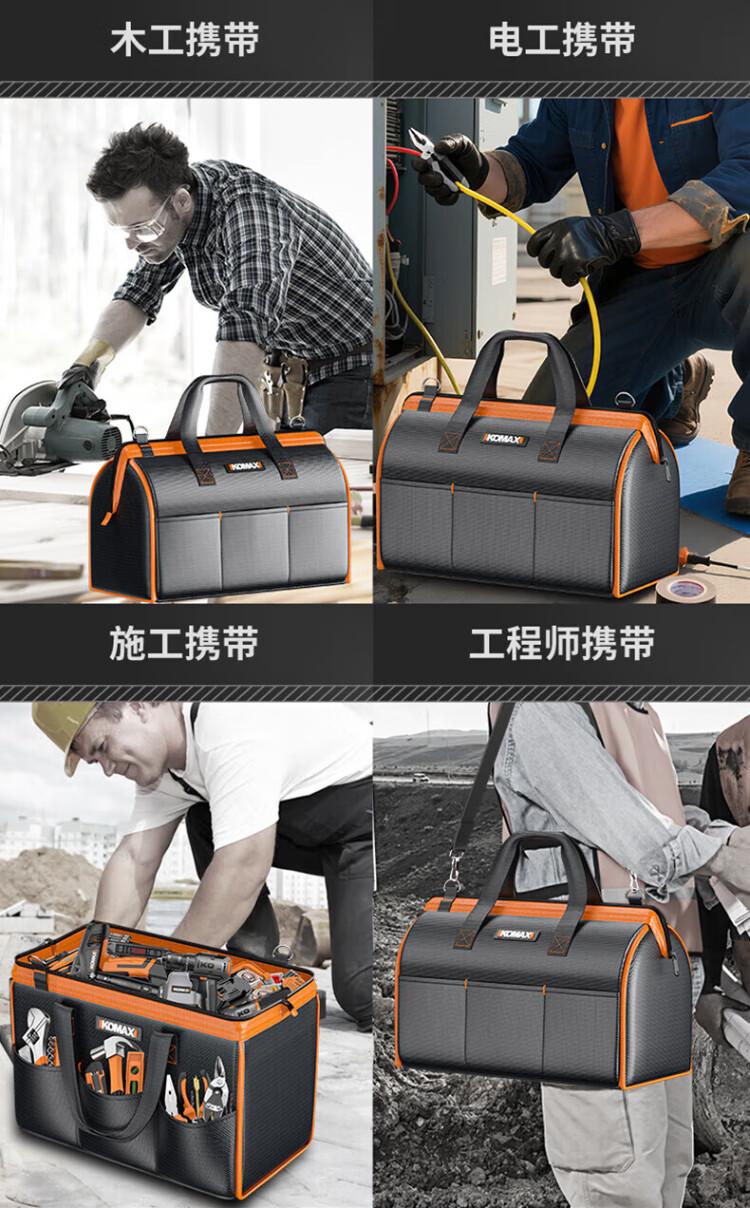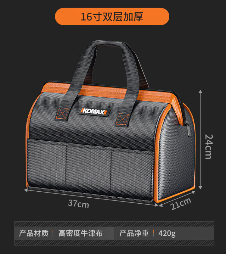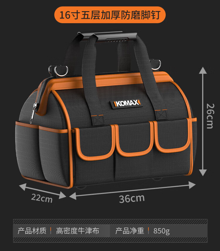 Komax tool bag, sturdy and durable portable accessory bag, canvas electrician repair handbag, large capacity storage bag 14 inches