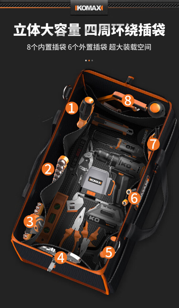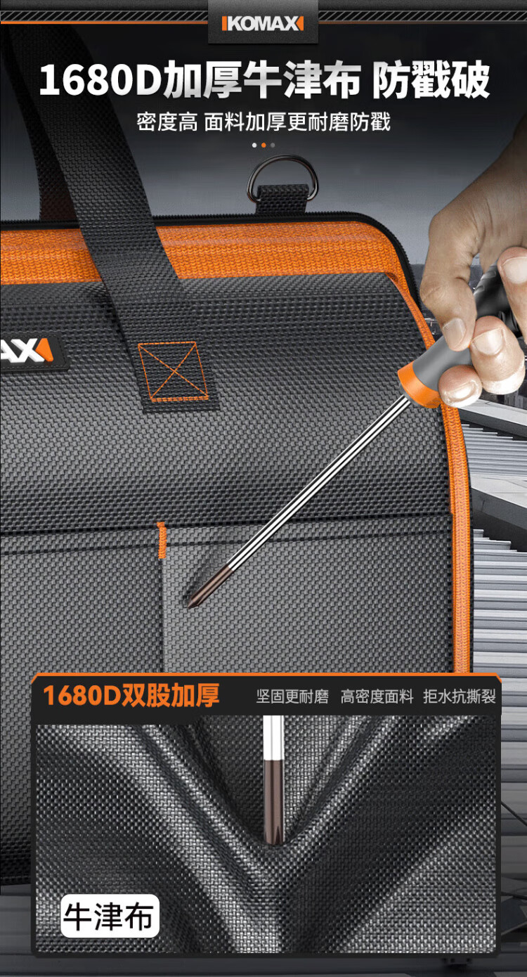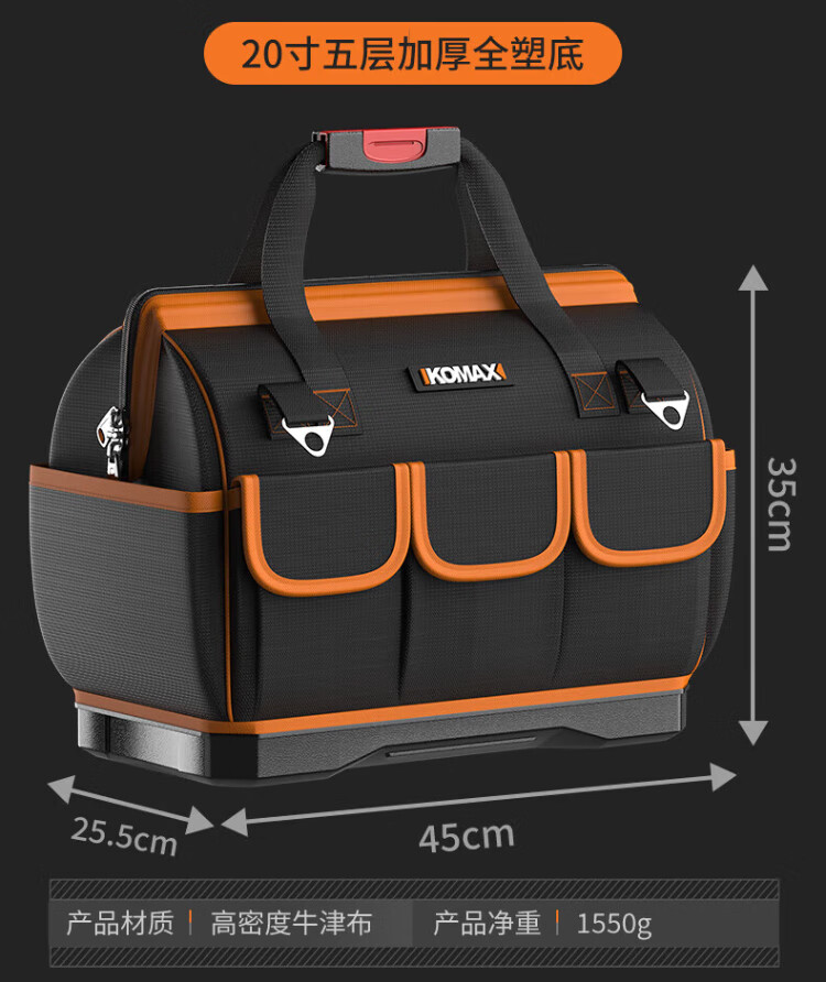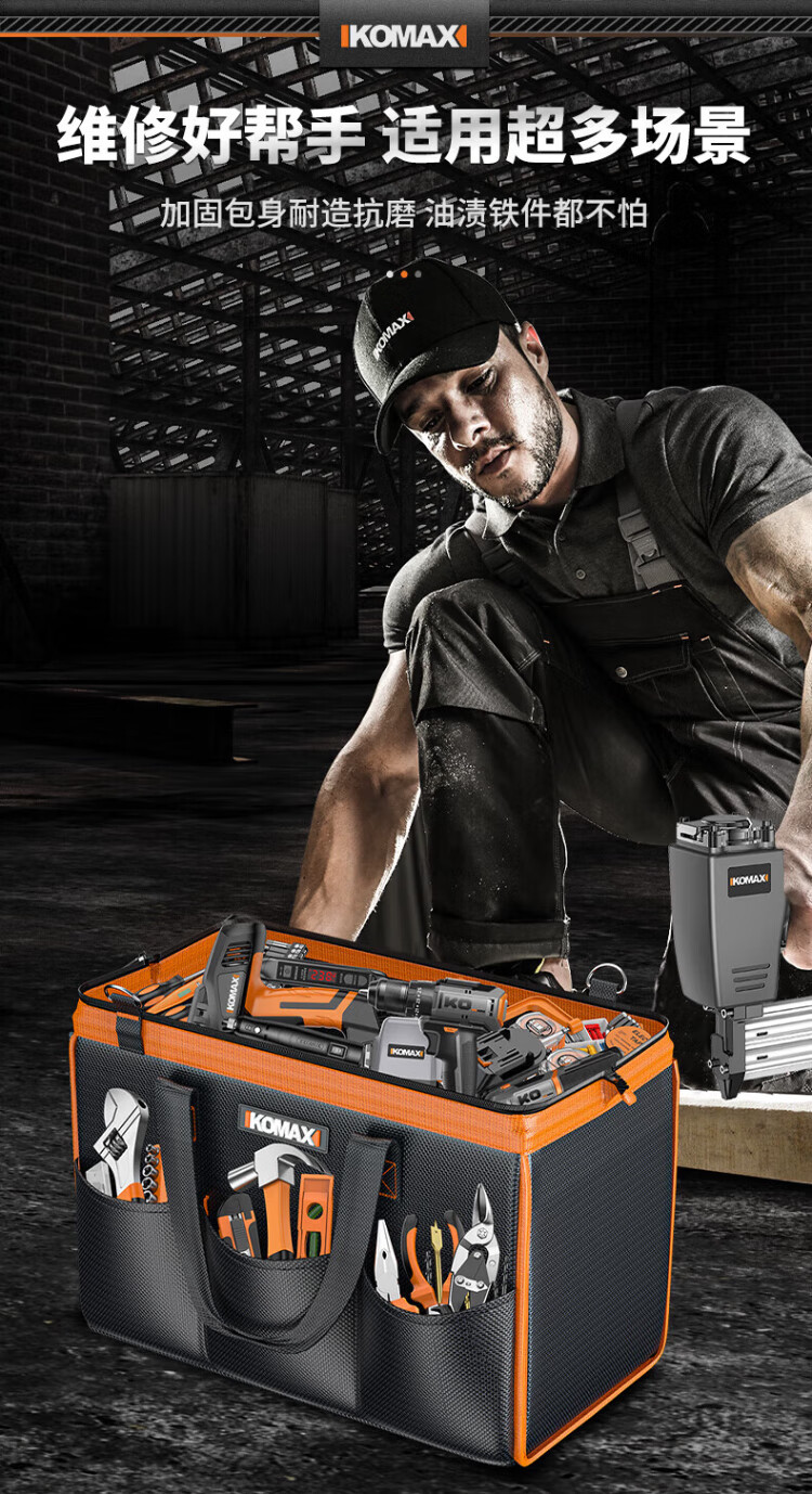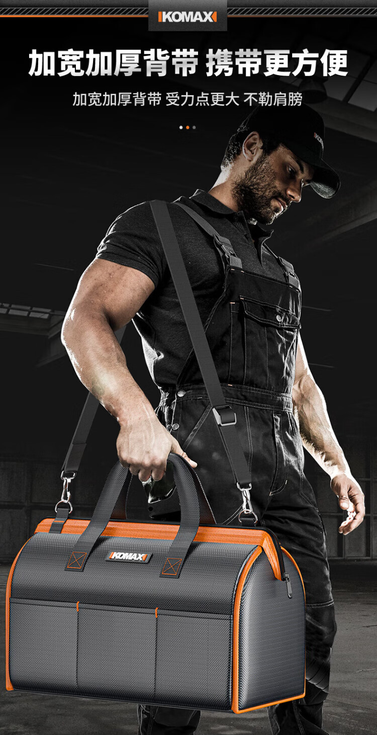 Komax tool bag, sturdy and durable portable accessory bag, canvas electrician repair handbag, large capacity storage bag 14 inches