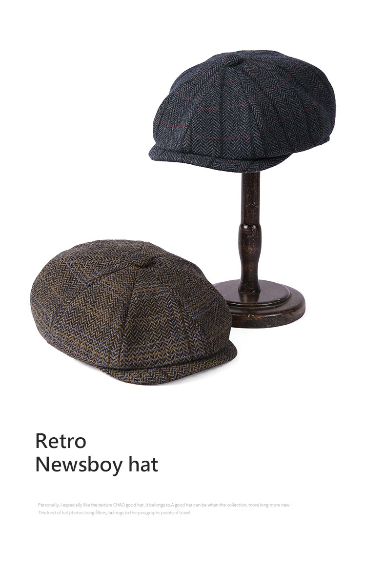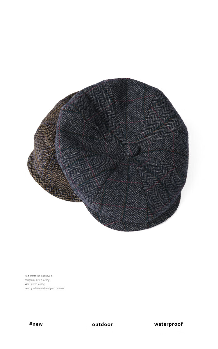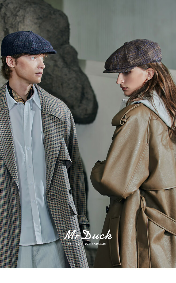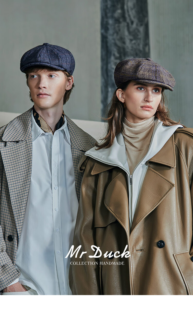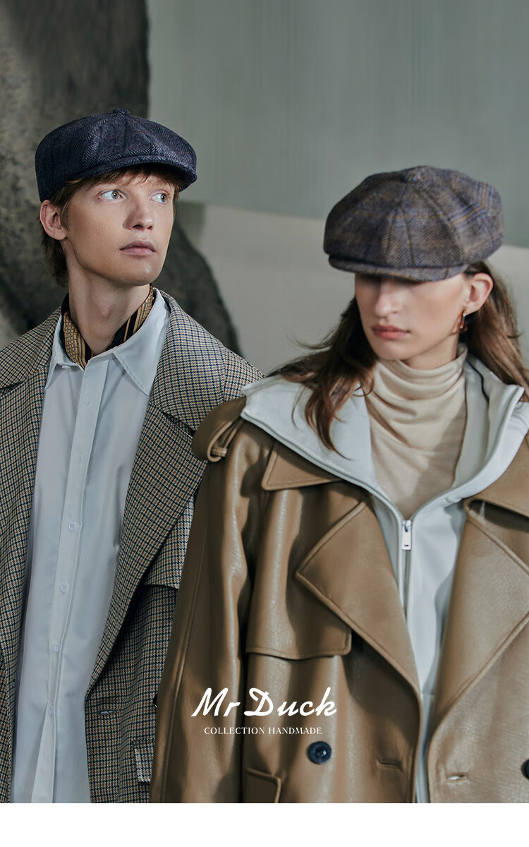 Mr DUCK designer's new style retro old money style octagonal newsboy hat for men and women, autumn and winter yuppie temperament progressive hat