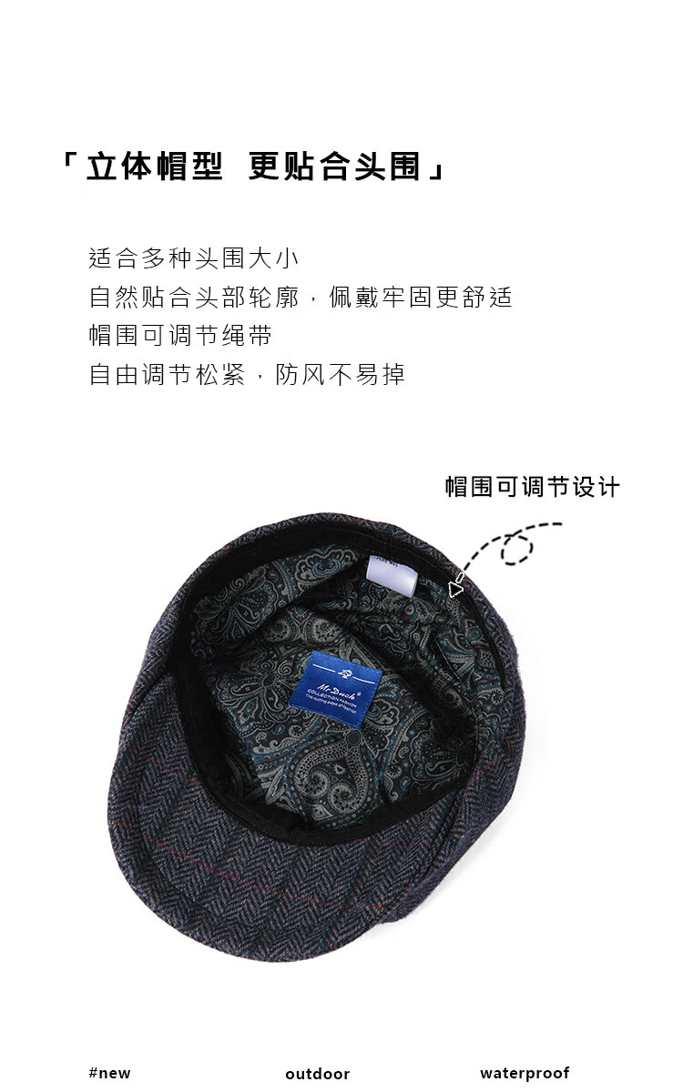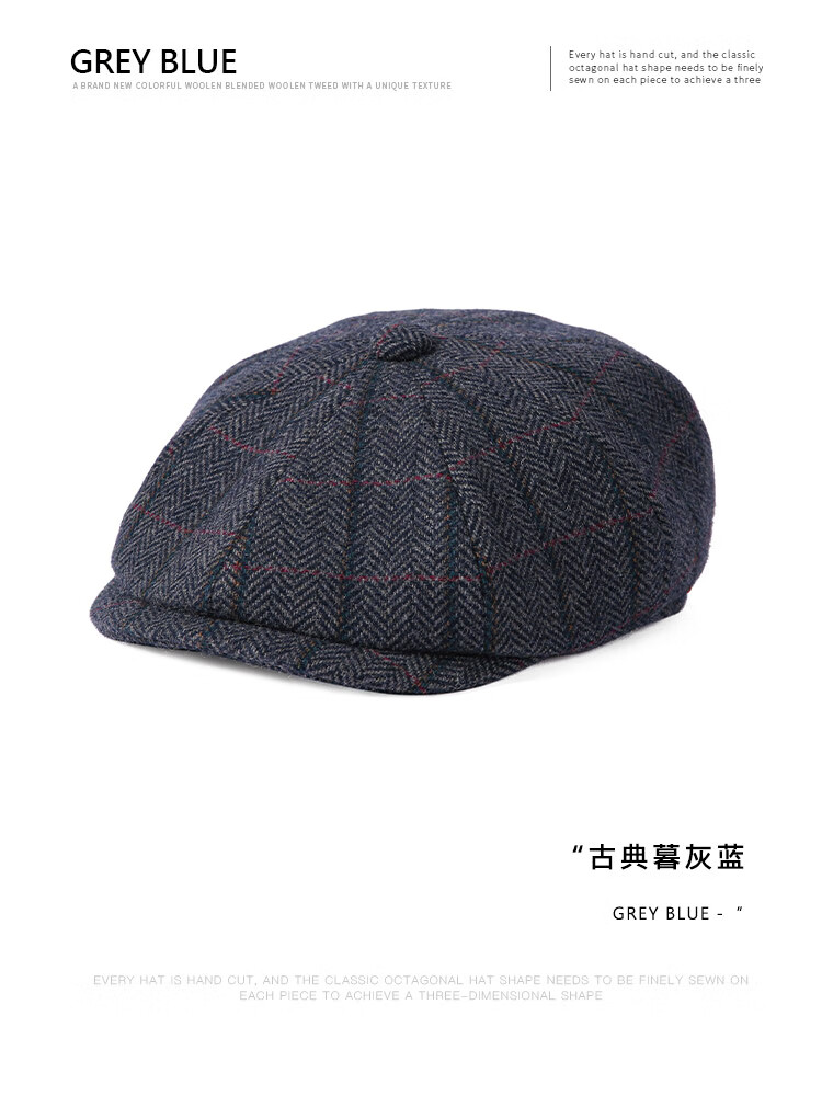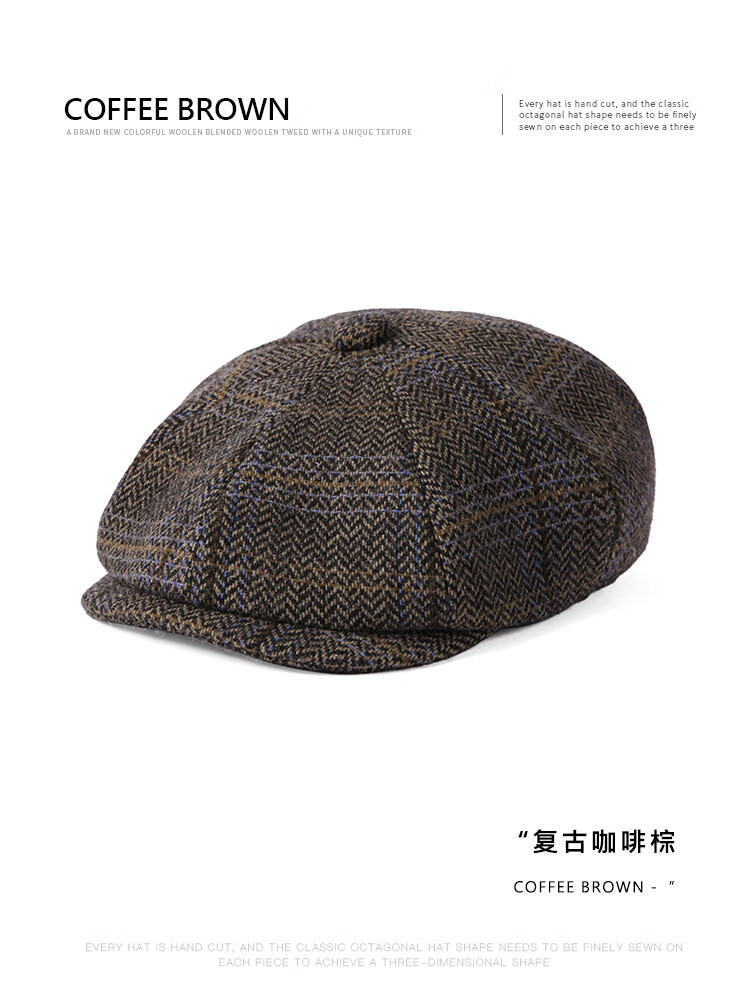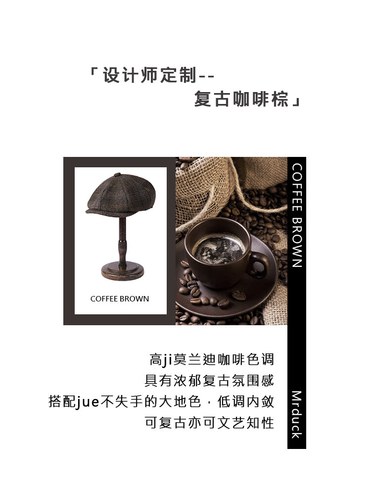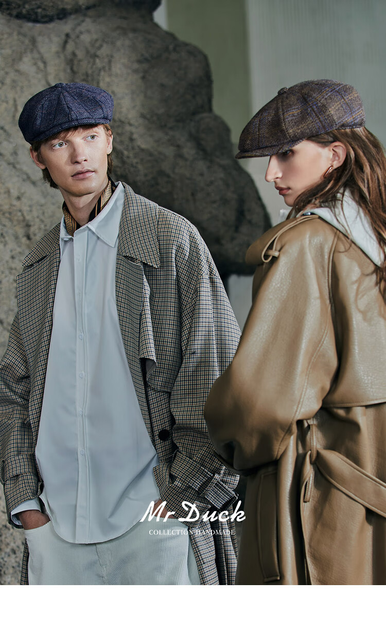 Mr DUCK designer's new style retro old money style octagonal newsboy hat for men and women, autumn and winter yuppie temperament progressive hat