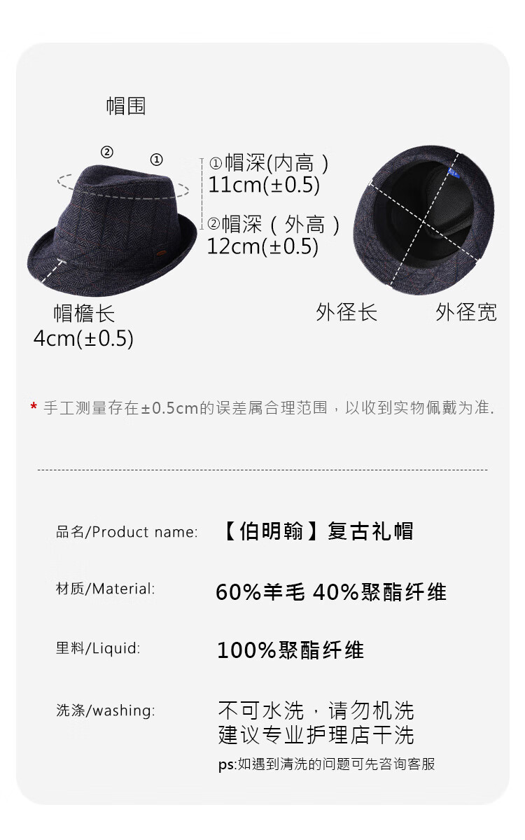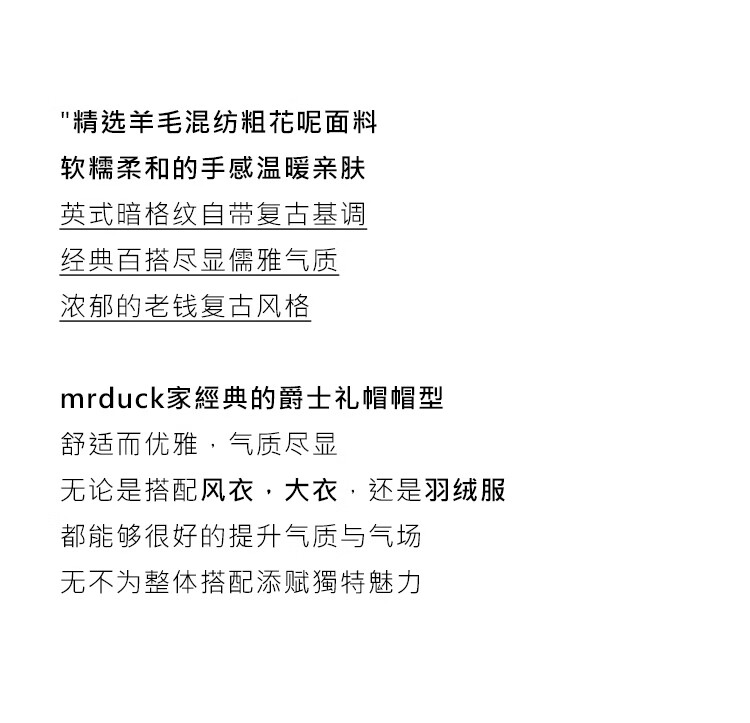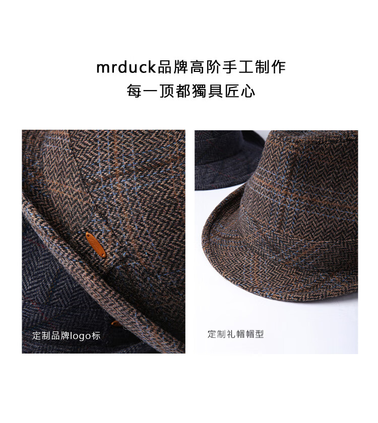 Mr DUCK Birmingham classic British retro men's hat autumn and winter warm woolen jazz hat high-end gentleman hat