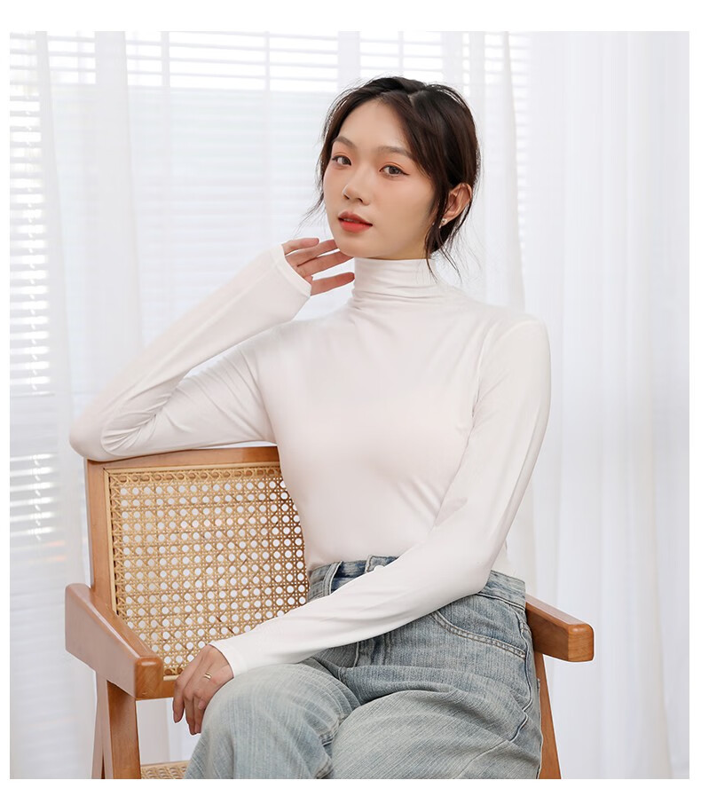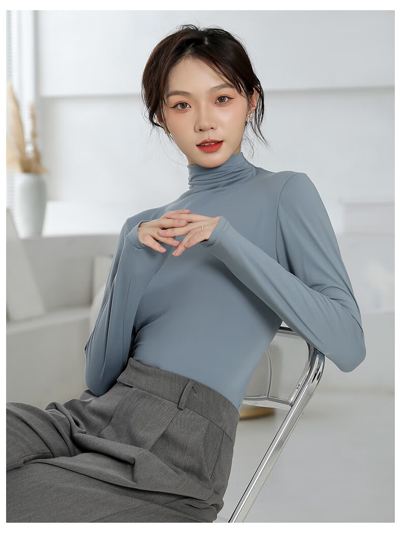 Langsha bottoming shirt for women autumn and winter half turtleneck 2023 new solid color versatile long-sleeved mid-collar top with knitted sweater inside smoke gray one size fits all 80Jin Jin equals 0.5kg -150Jin Jin equals 0.5kg