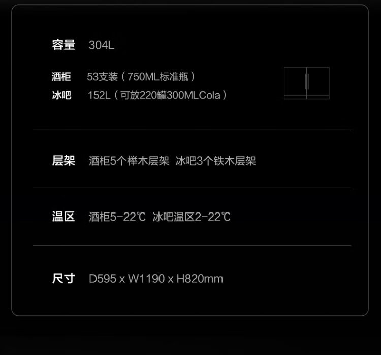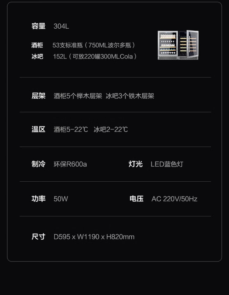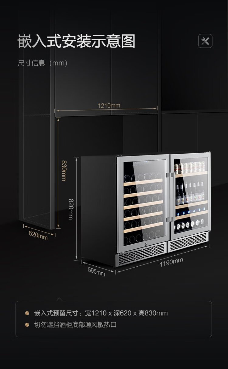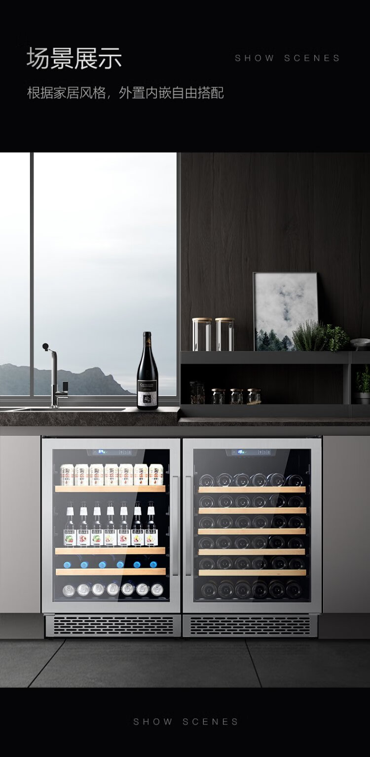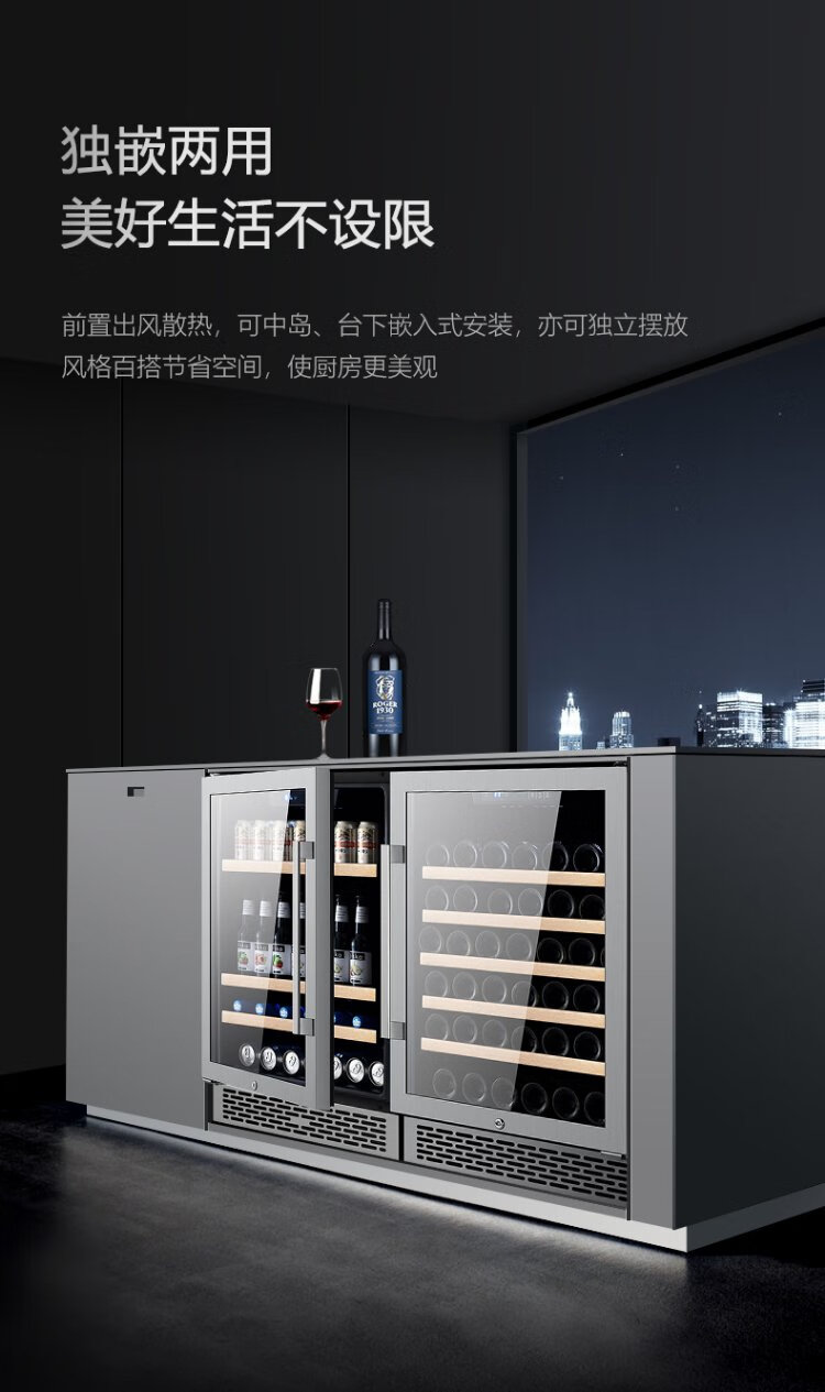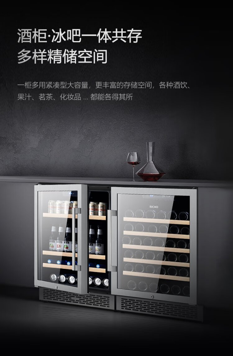 Xinchao (SICAO) red wine cabinet, embedded constant temperature wine cabinet, home dining bar, embedded wine cabinet, ice bar compressor, air-cooled fruit tea preservation refrigeration refrigerator JC-150 150A wine cabinet + 150C ice bar embedded 304L