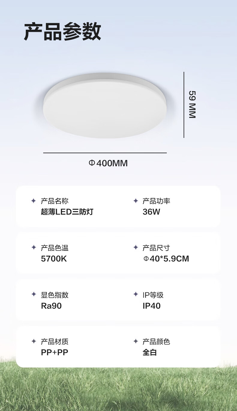 OPPLE LED three-proof ceiling lamp ultra-thin bedroom corridor balcony study lamp IP40 moisture-proof dust-proof and mosquito-proof simple energy-saving lamp 36w-white light