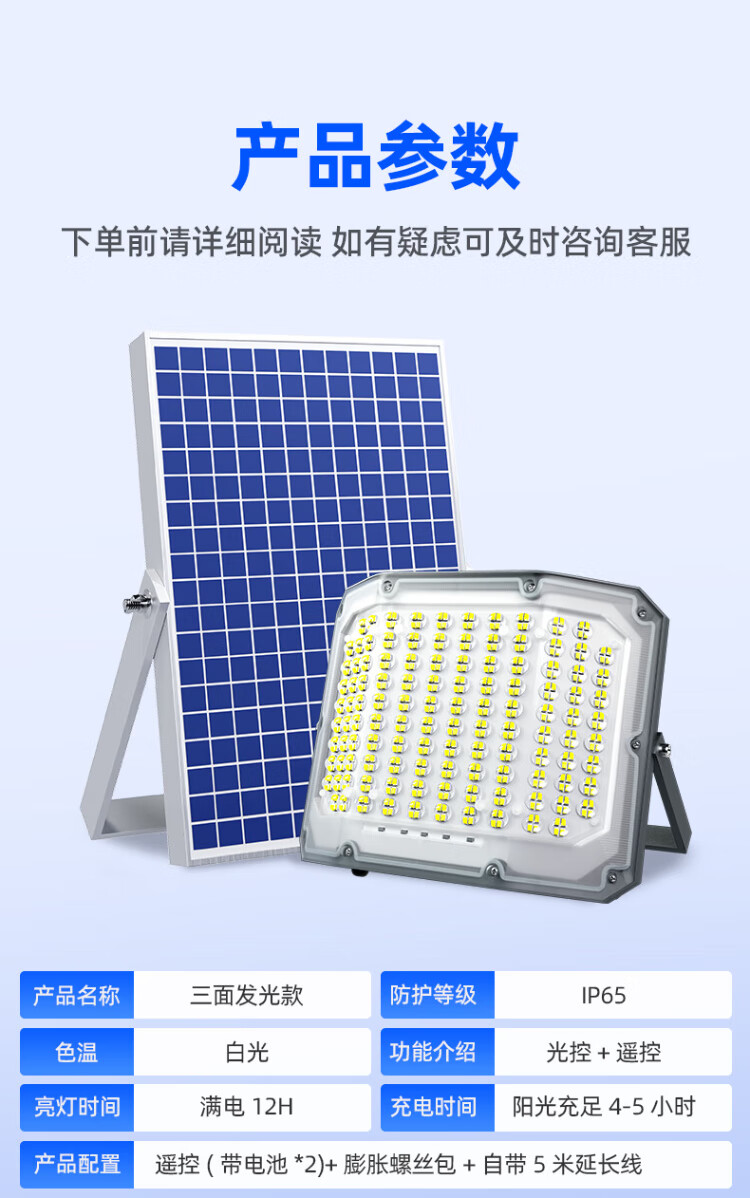 Zhijia Solar Lighting New Rural Street Light Outdoor Waterproof Floodlight LED Outdoor Lighting Three-sided Lighting Model 10000-W