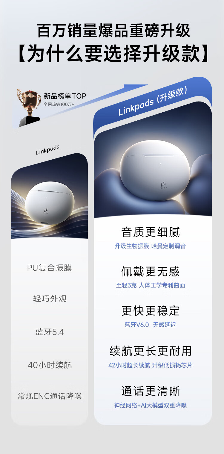 Linklike Hot Selling 200W+丨Harman Custom Tuned Bluetooth Headset Semi-In-Ear 2025 Latest Ultra-Long Battery Life Wireless Music Adaptation for Huawei and Apple