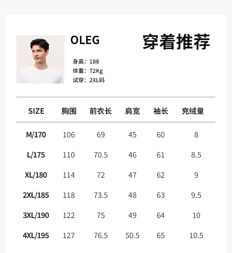 China (cm) 165 / 88-90 170 / 96-98 175 / 108-110 180 / 118-122 185 / 126-130