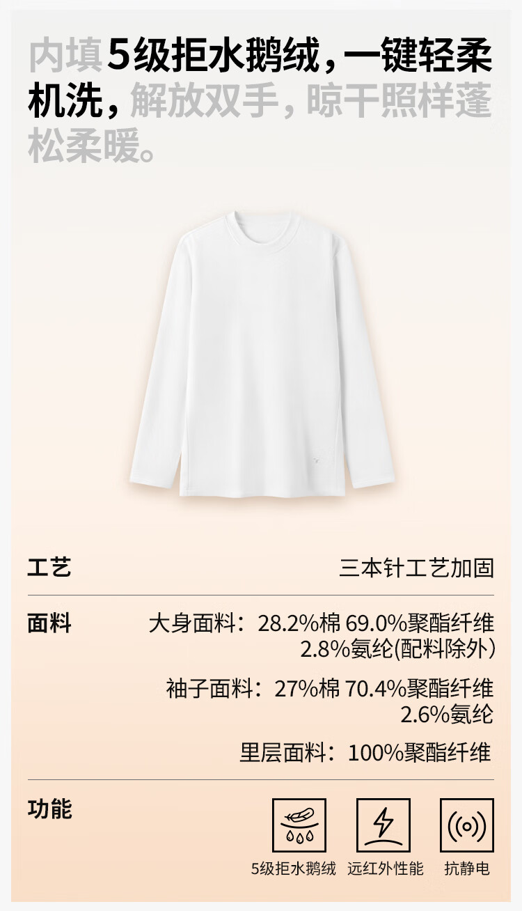 Thumb white small T-shirt, machine washable water-repellent goose down T-shirt, autumn and winter down warm T-shirt tops for men and women, men's jet black 2XL
