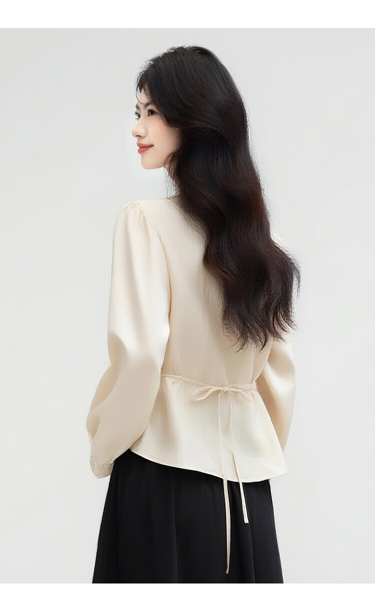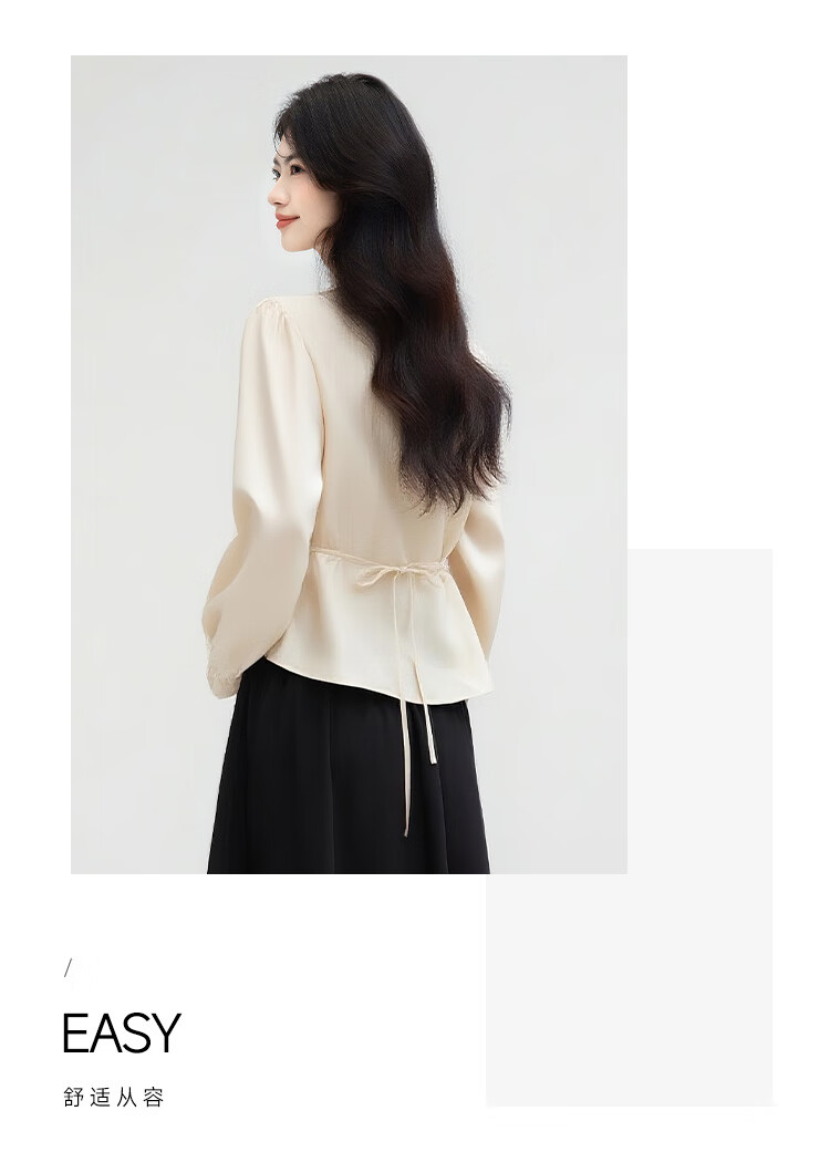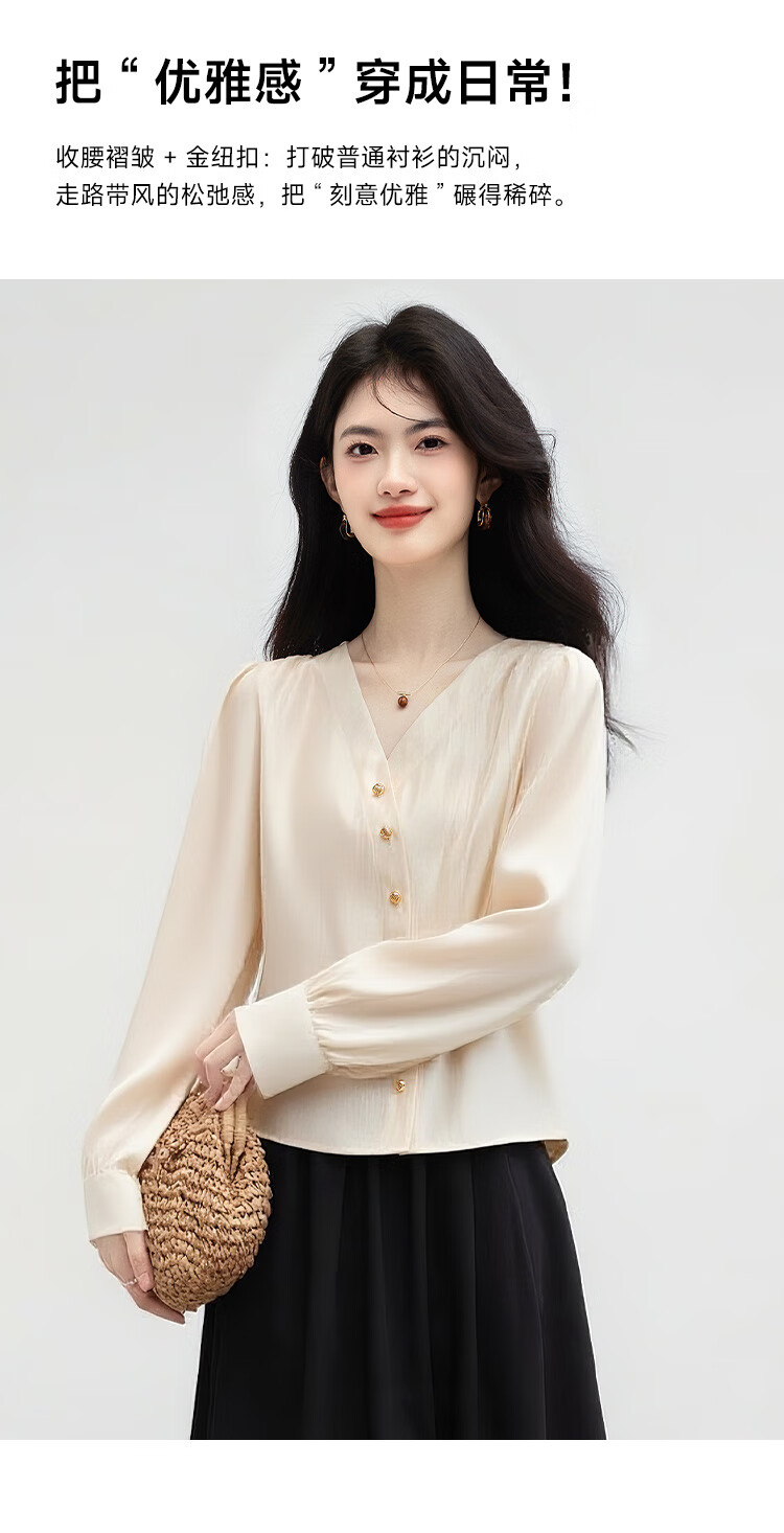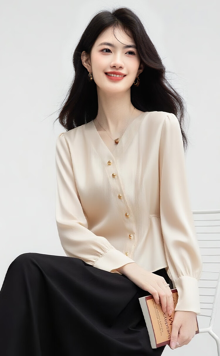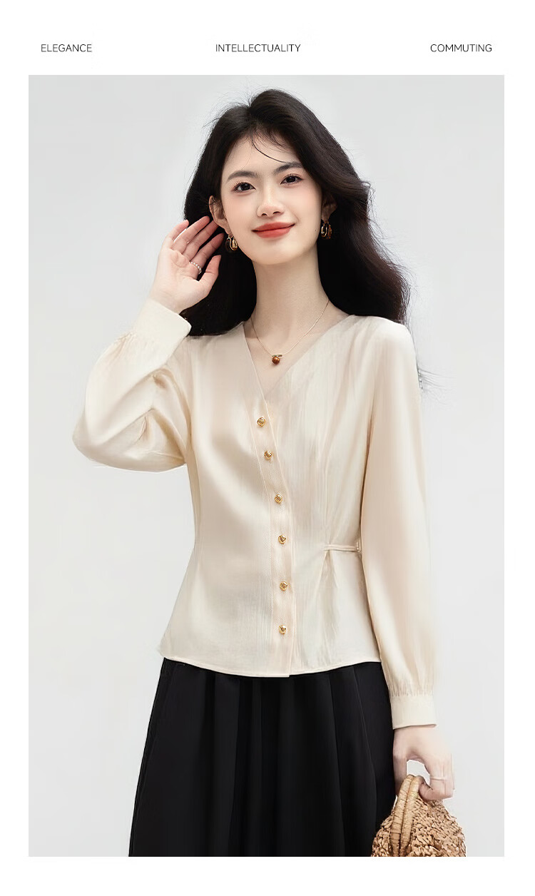 Xinfeiyu French style small fragrant style long-sleeved shirt for women 2025 autumn new V-neck metal embellished straight splicing top
