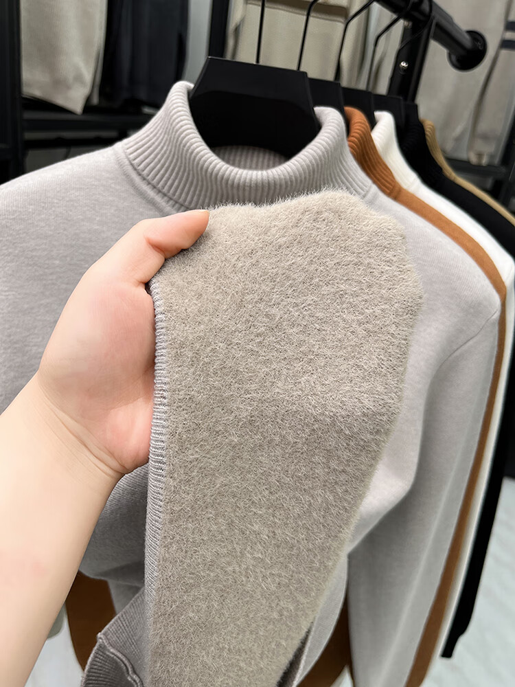 Hengyuanxiang thickened velvet one-piece velvet turtleneck sweater for men in winter warm and close-fitting inner layering comfortable bottoming sweater for men