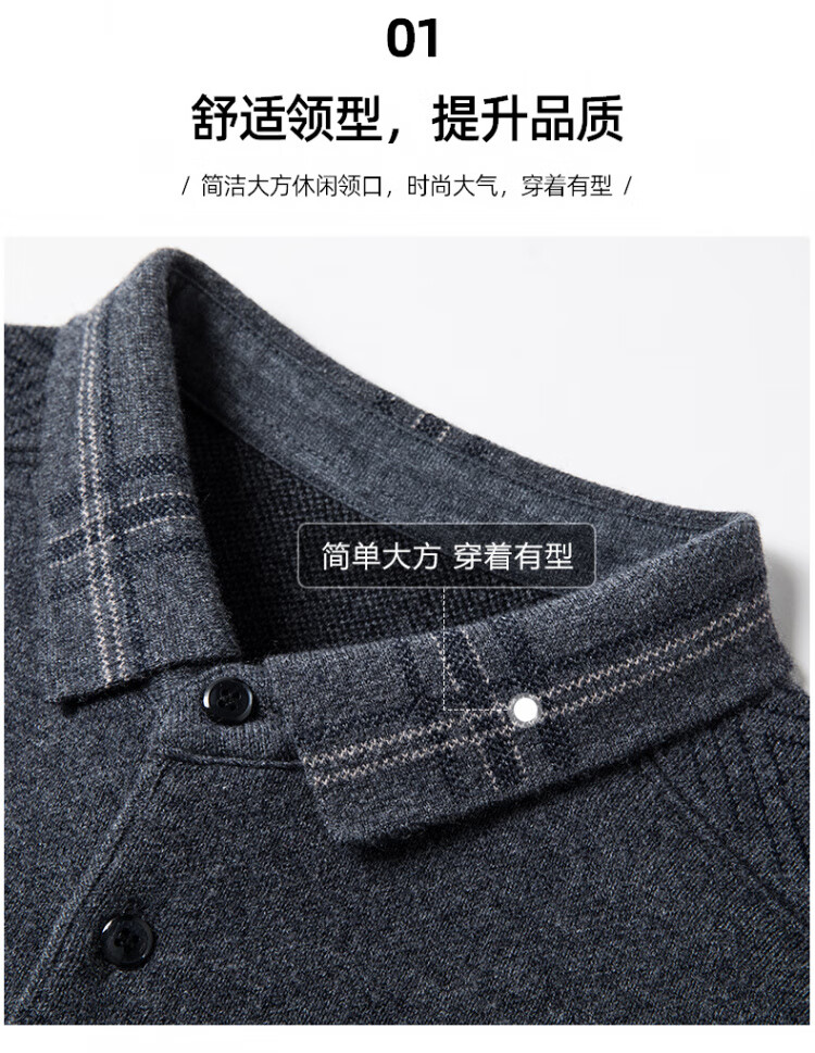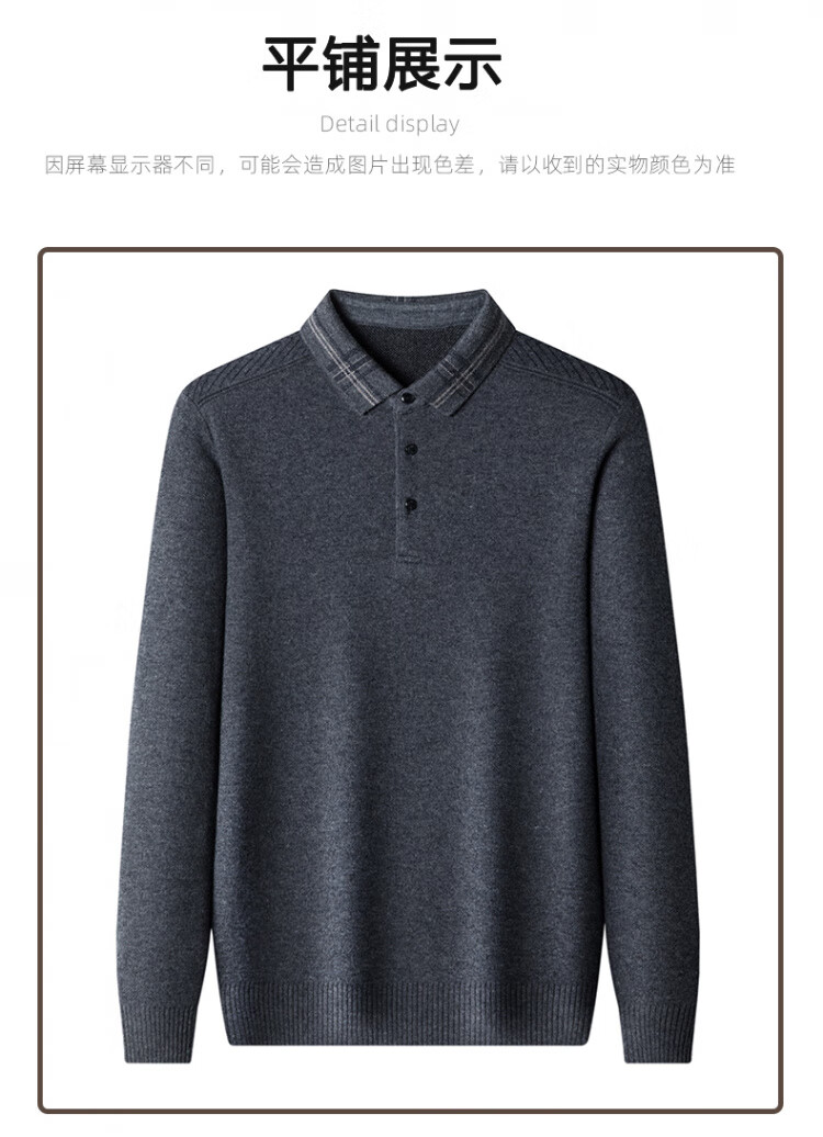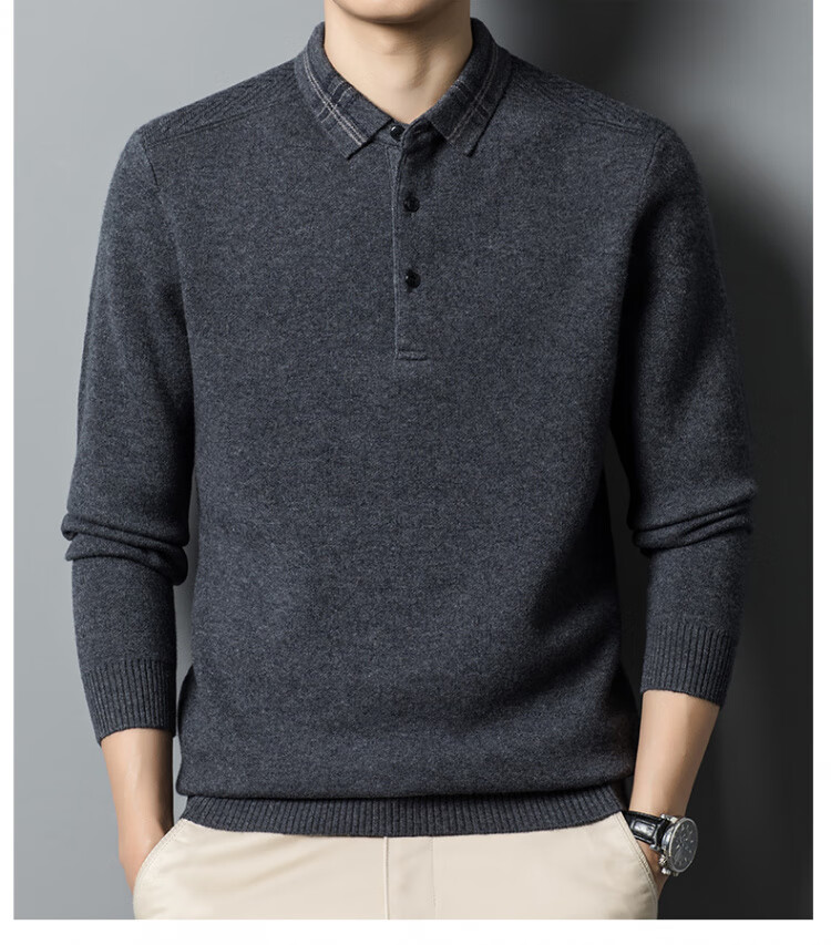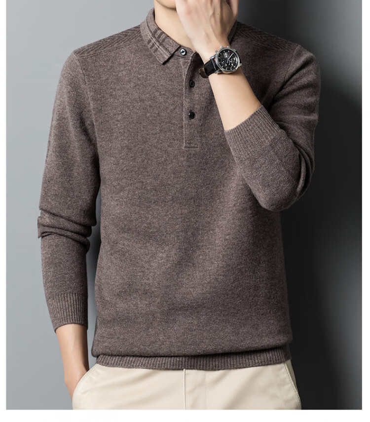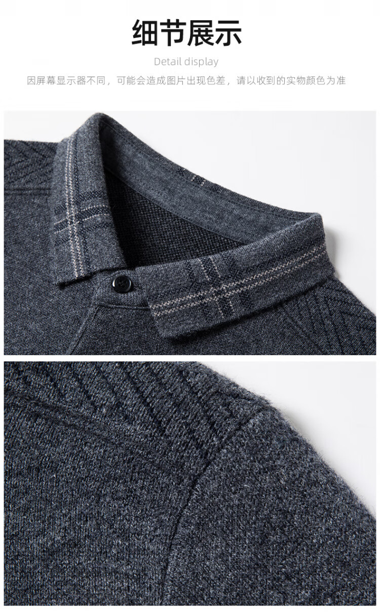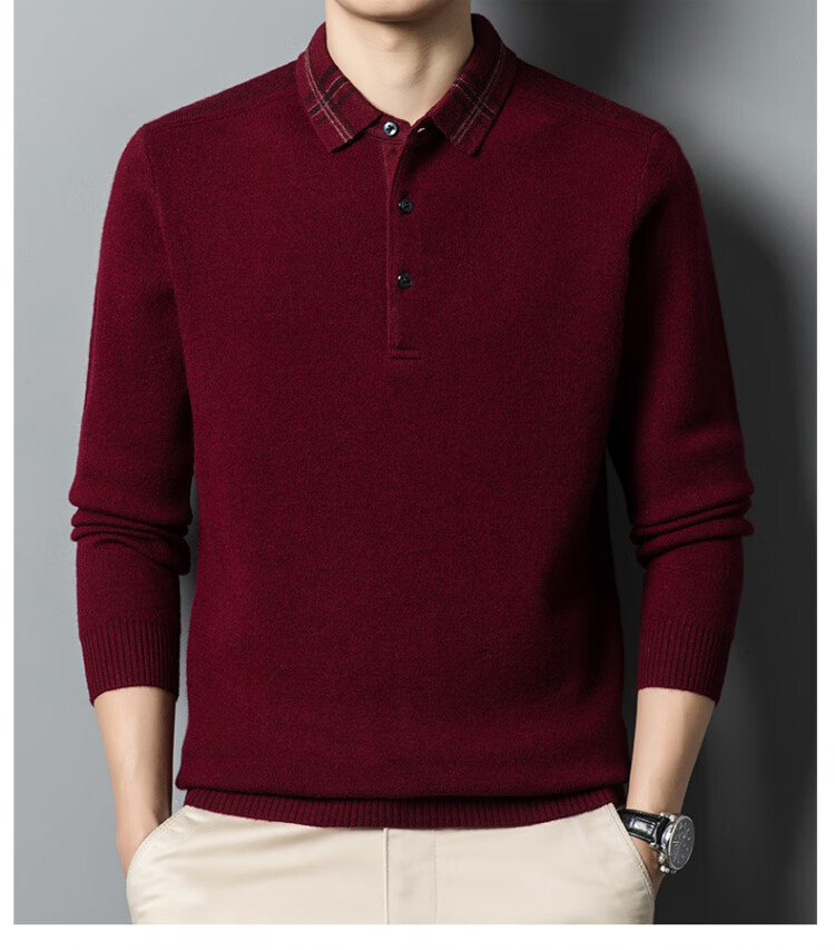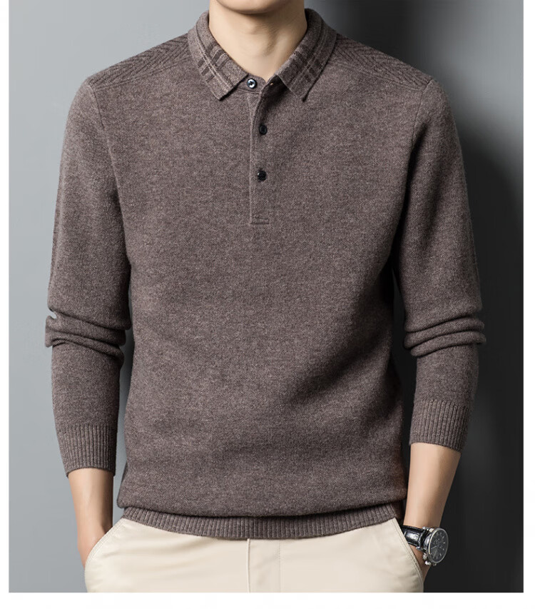 Hengyuanxiang 100% pure wool sweater men's winter lapel sweater warm and thickened middle-aged men's knitted bottoming shirt for men
