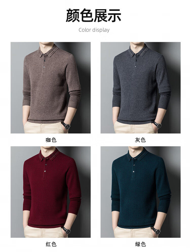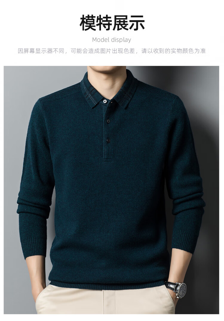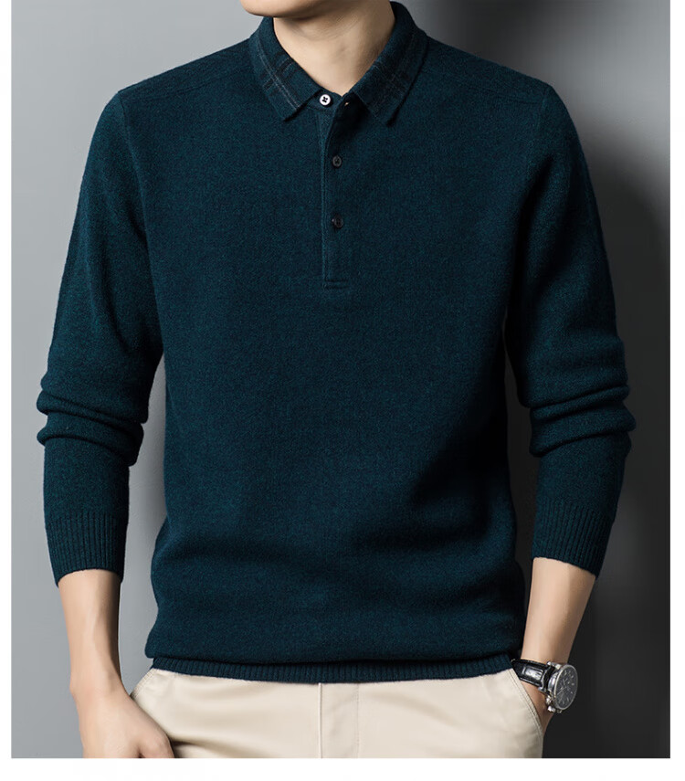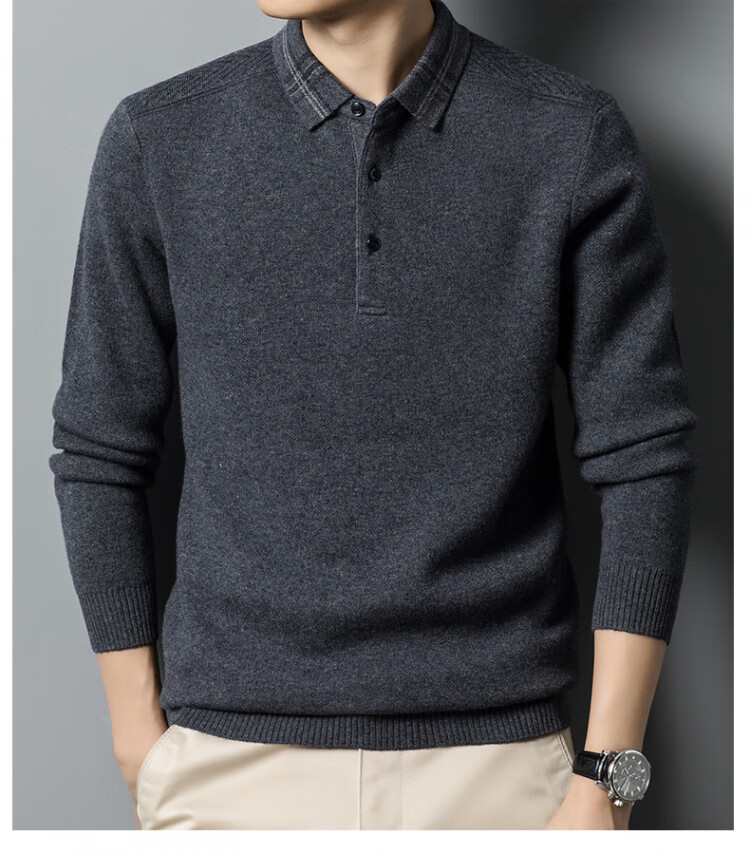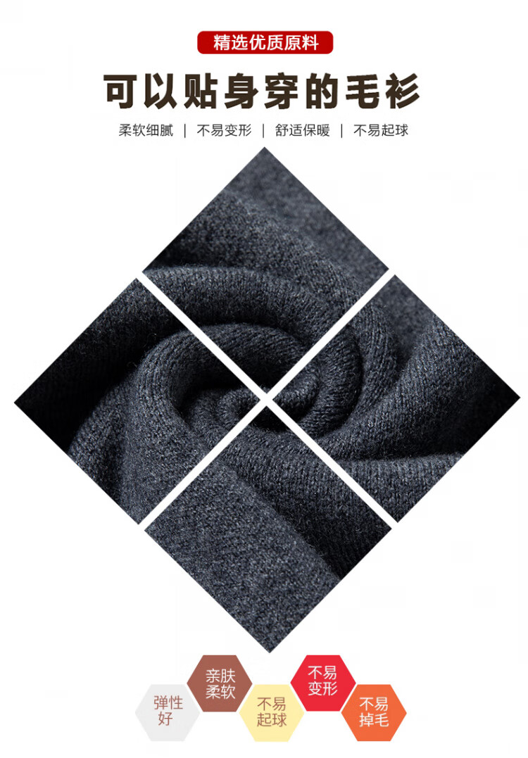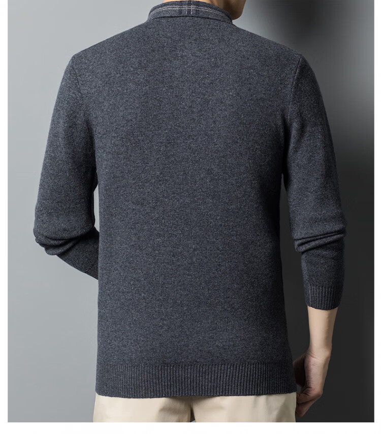 Hengyuanxiang 100% pure wool sweater men's winter lapel sweater warm and thickened middle-aged men's knitted bottoming shirt for men